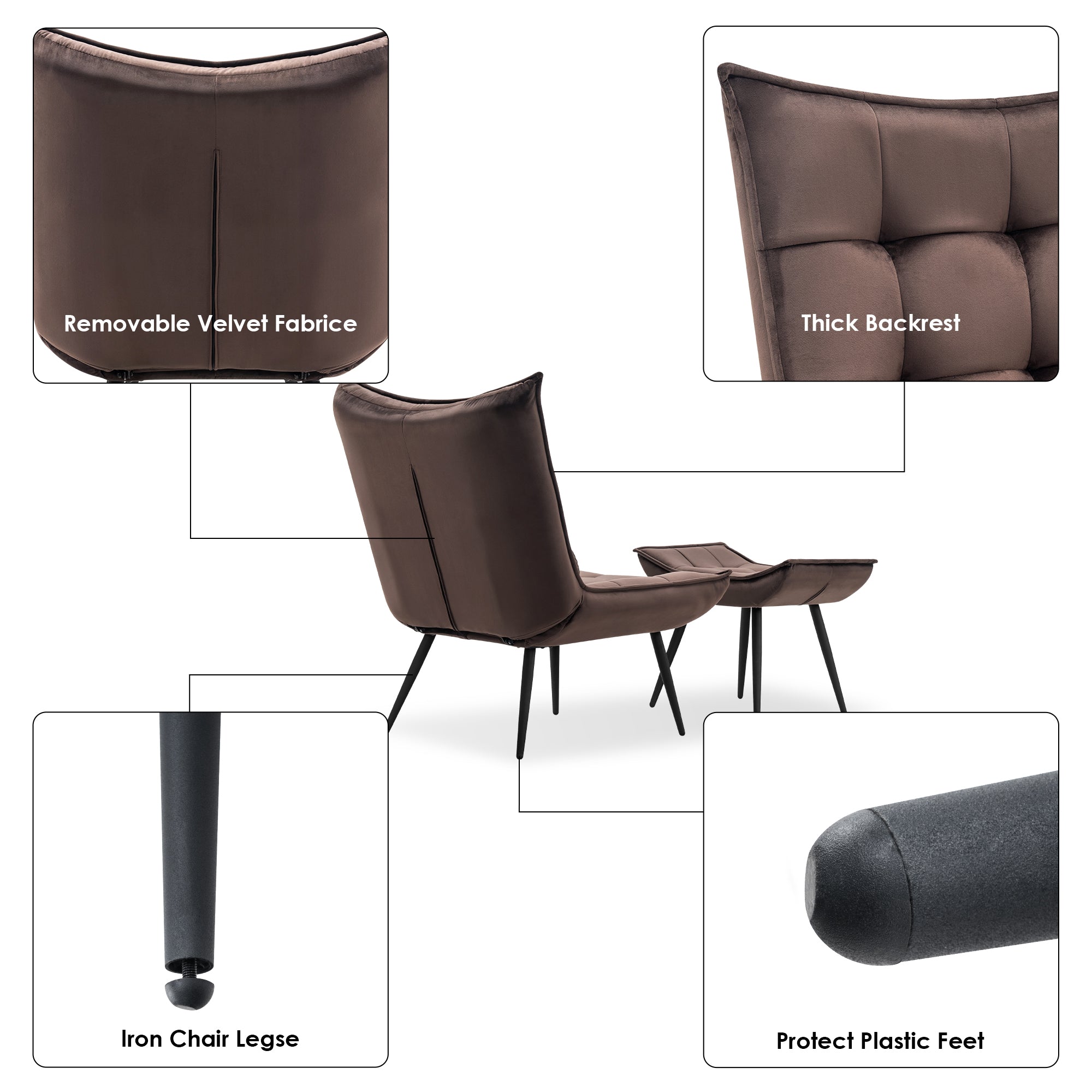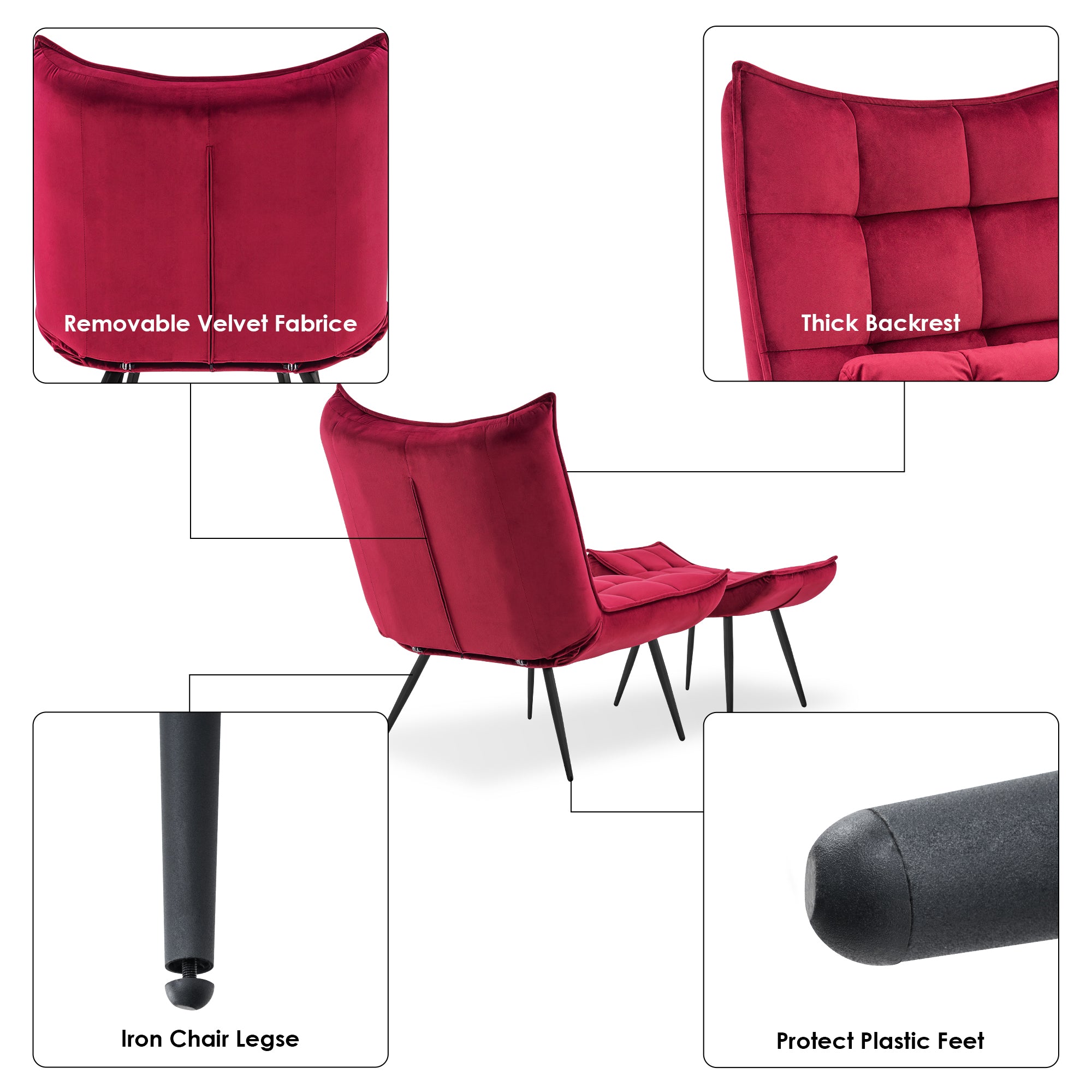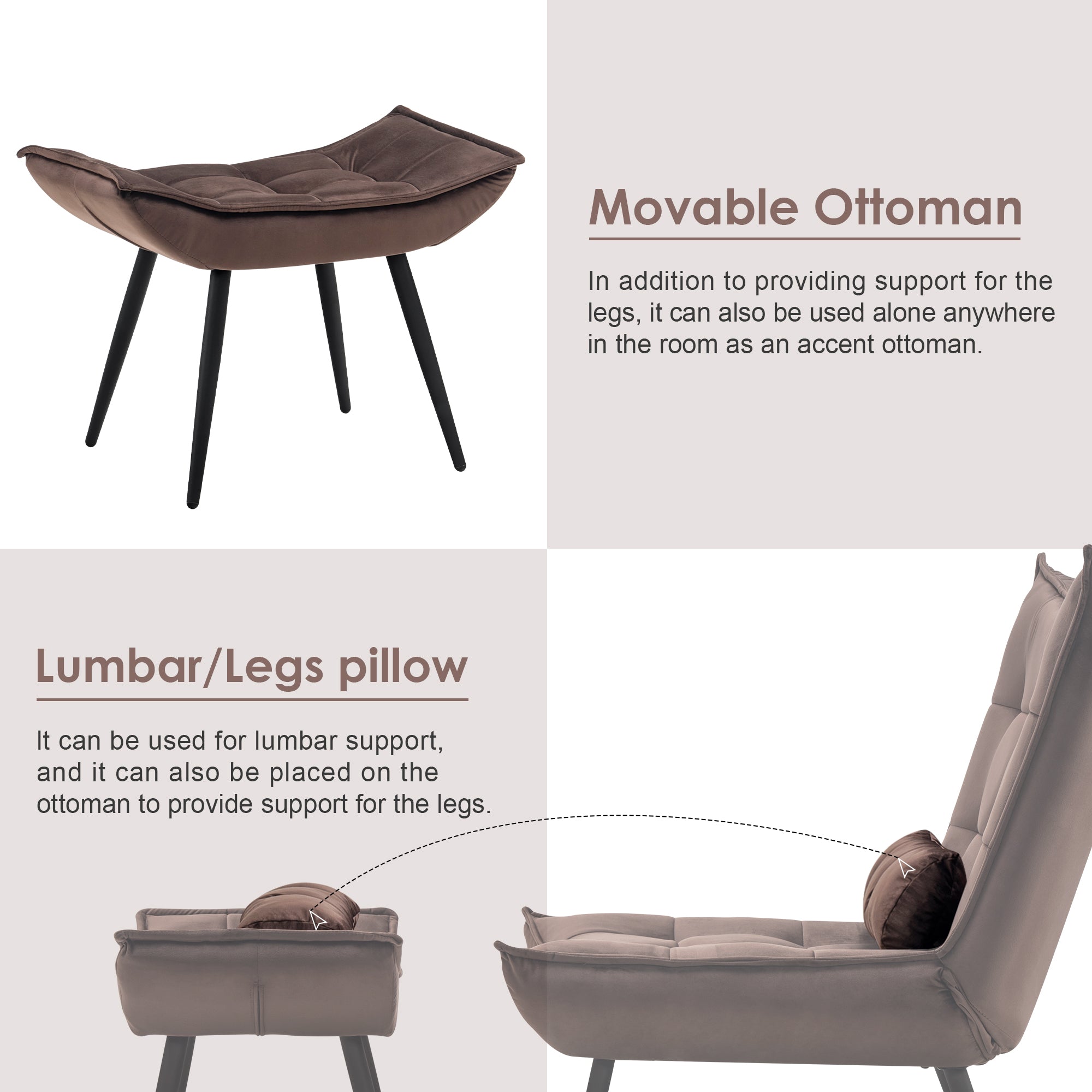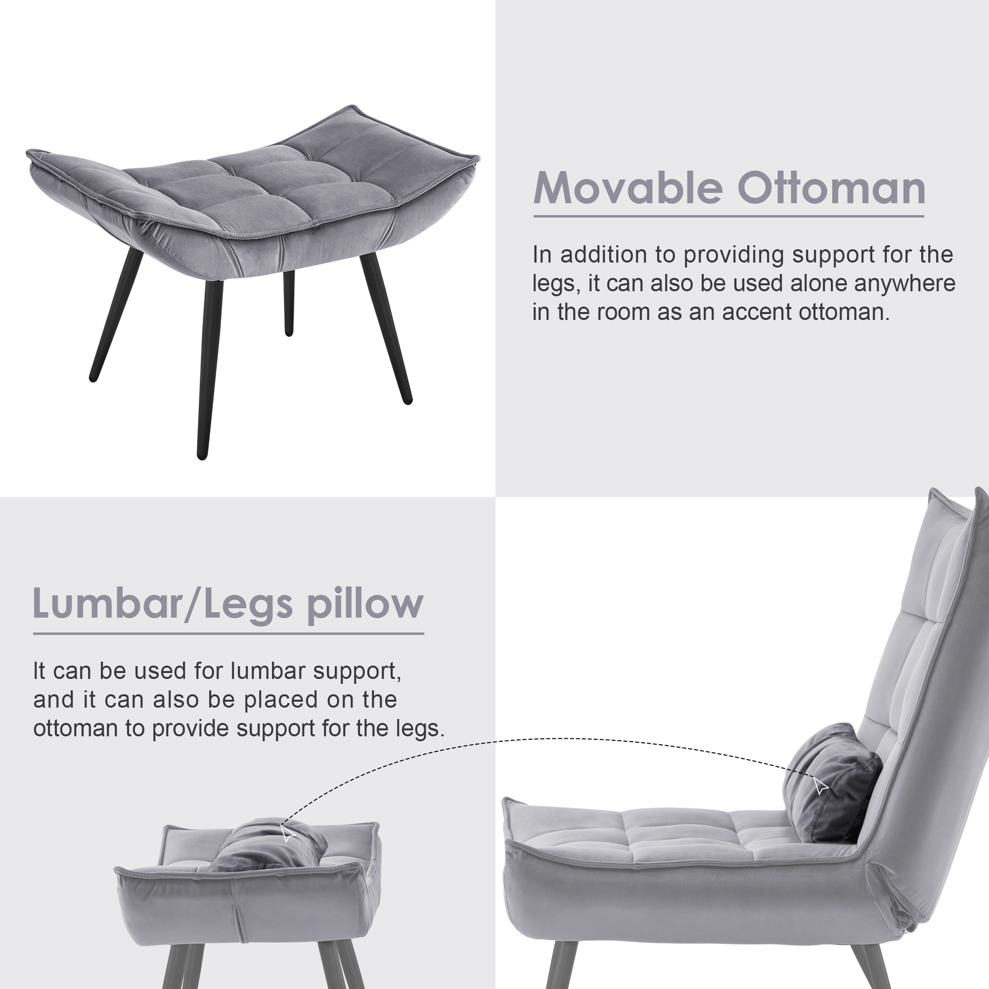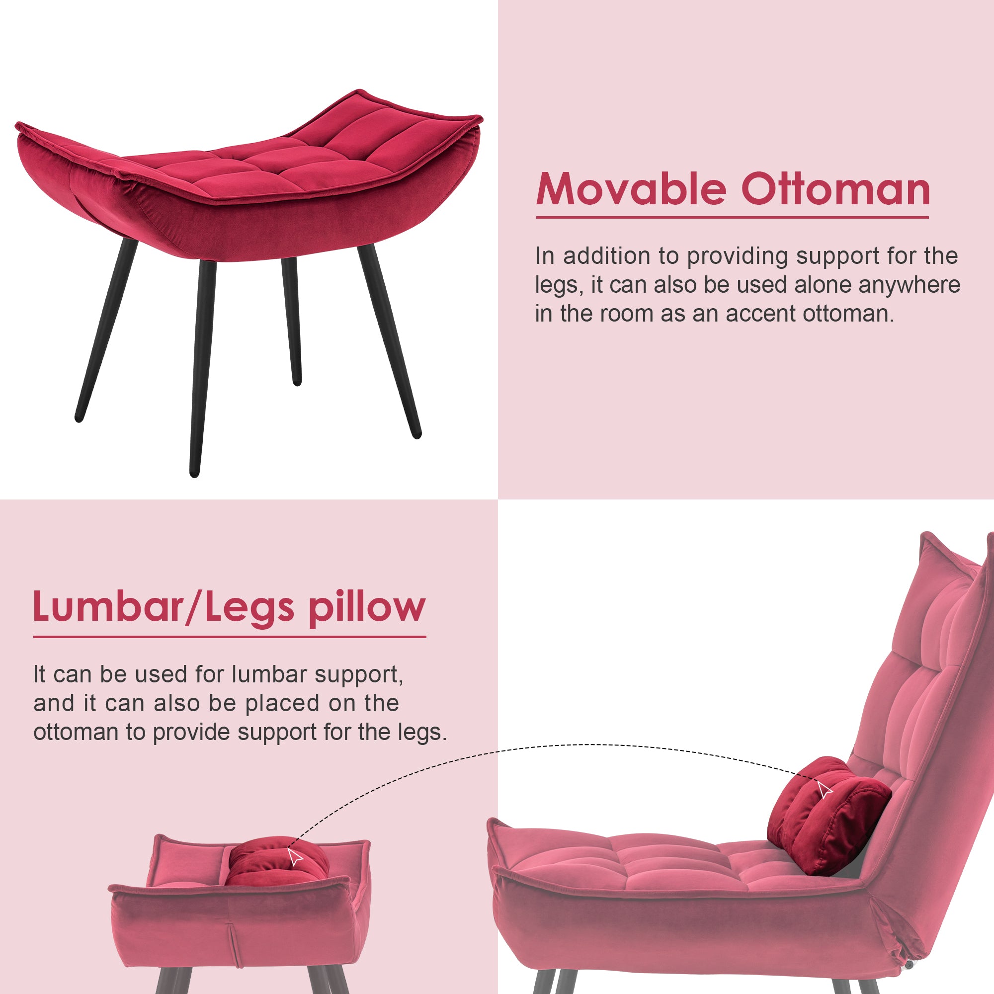 - Multi-purpose Chair with Ottoman Mcombo lounge chair can be used as vanity chair, dressing chair, accent chair, side chair, club chair, reading chair etc. The velvet chair is perfect for decorating your living room, bedroom, dining room, office and guest room. The movable curved surface Ottoman provides double comfort and can hold your legs steadily. And it can be placed on a chair to save space when not in use.