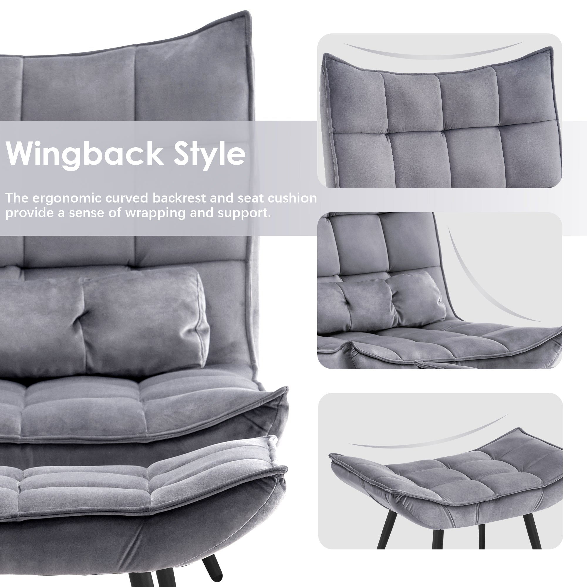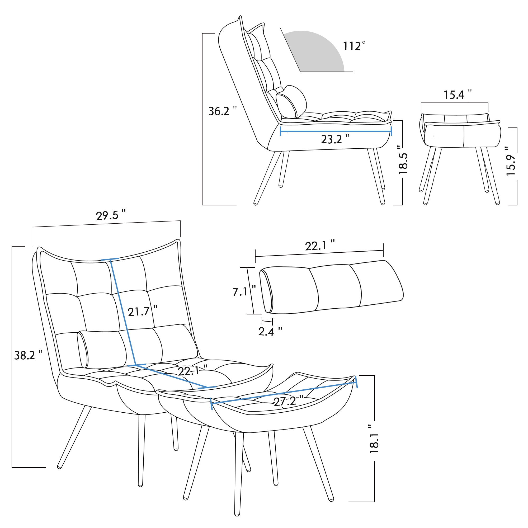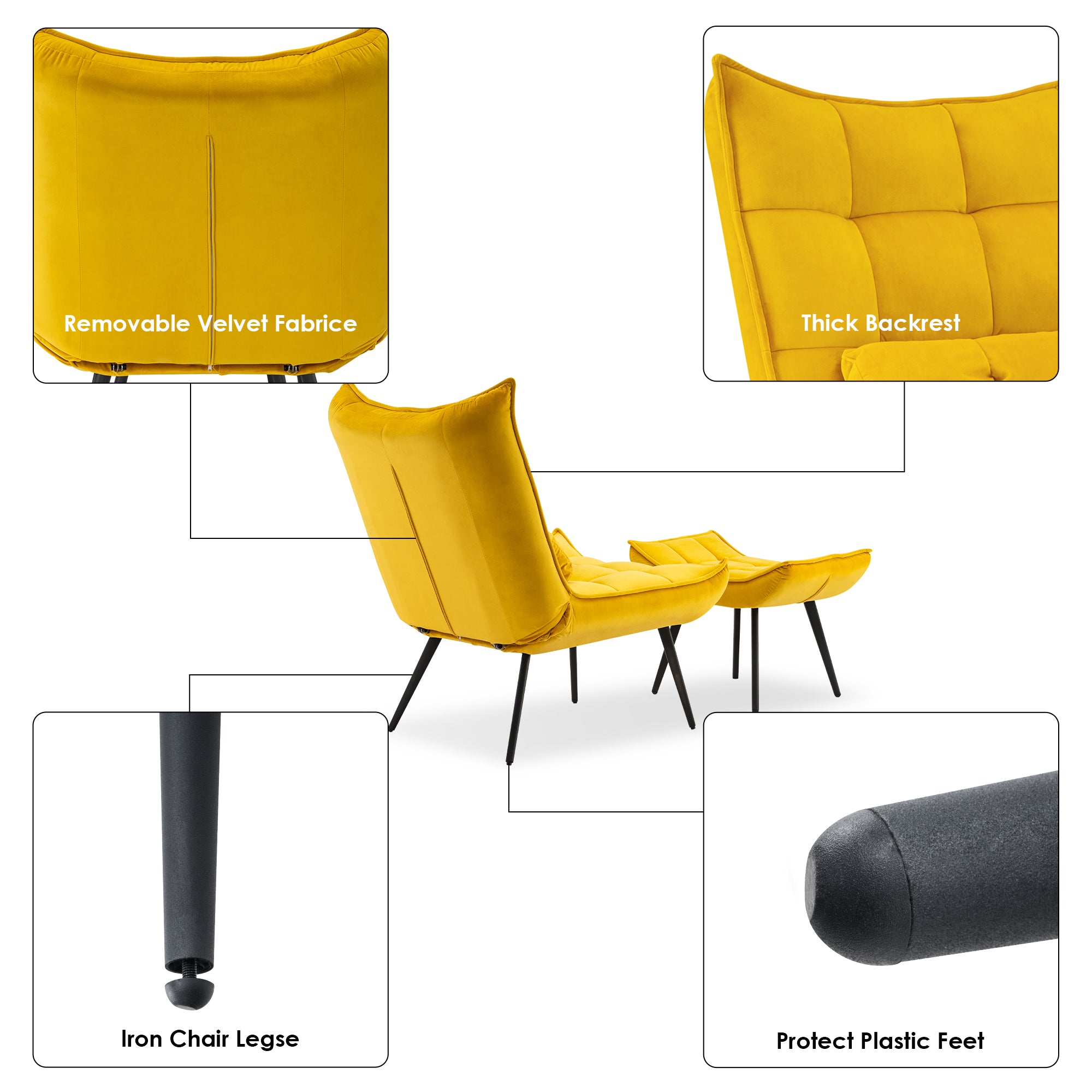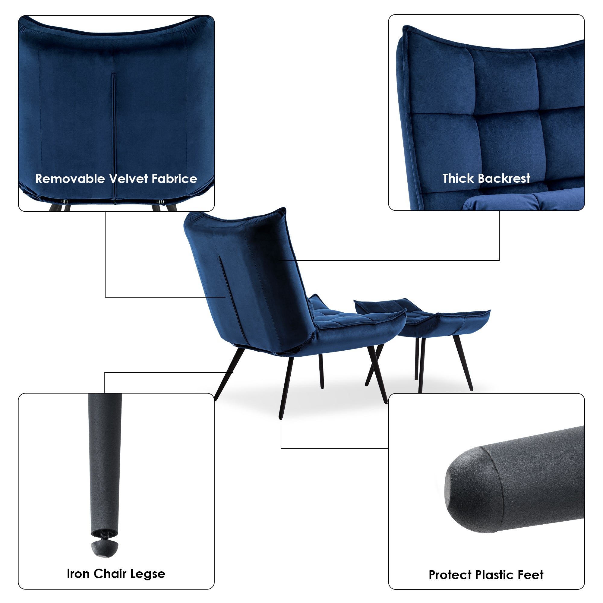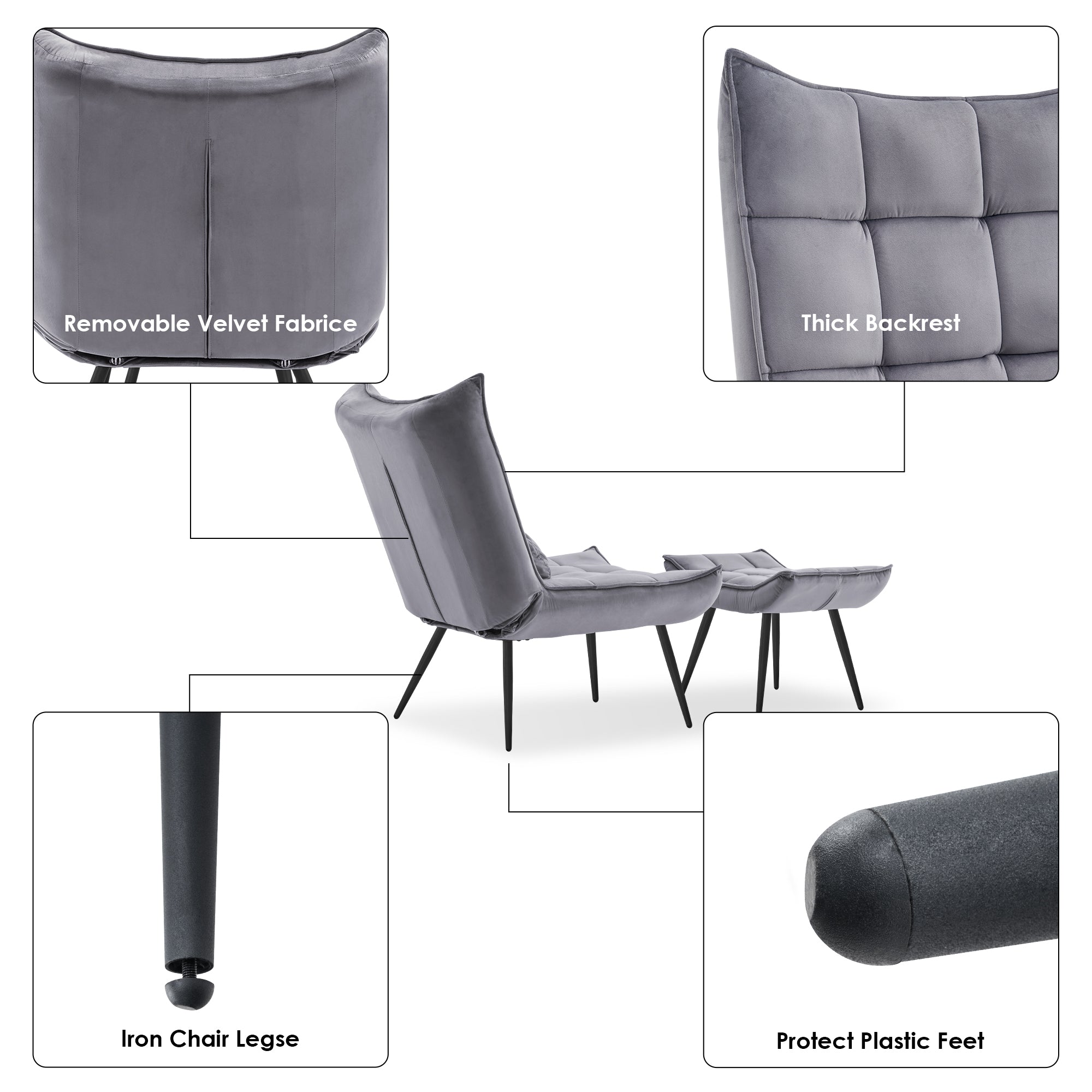 - Multi-purpose Chair with Ottoman Mcombo lounge chair can be used as vanity chair, dressing chair, accent chair, side chair, club chair, reading chair etc. The velvet chair is perfect for decorating your living room, bedroom, dining room, office and guest room. The movable curved surface Ottoman provides double comfort and can hold your legs steadily. And it can be placed on a chair to save space when not in use.