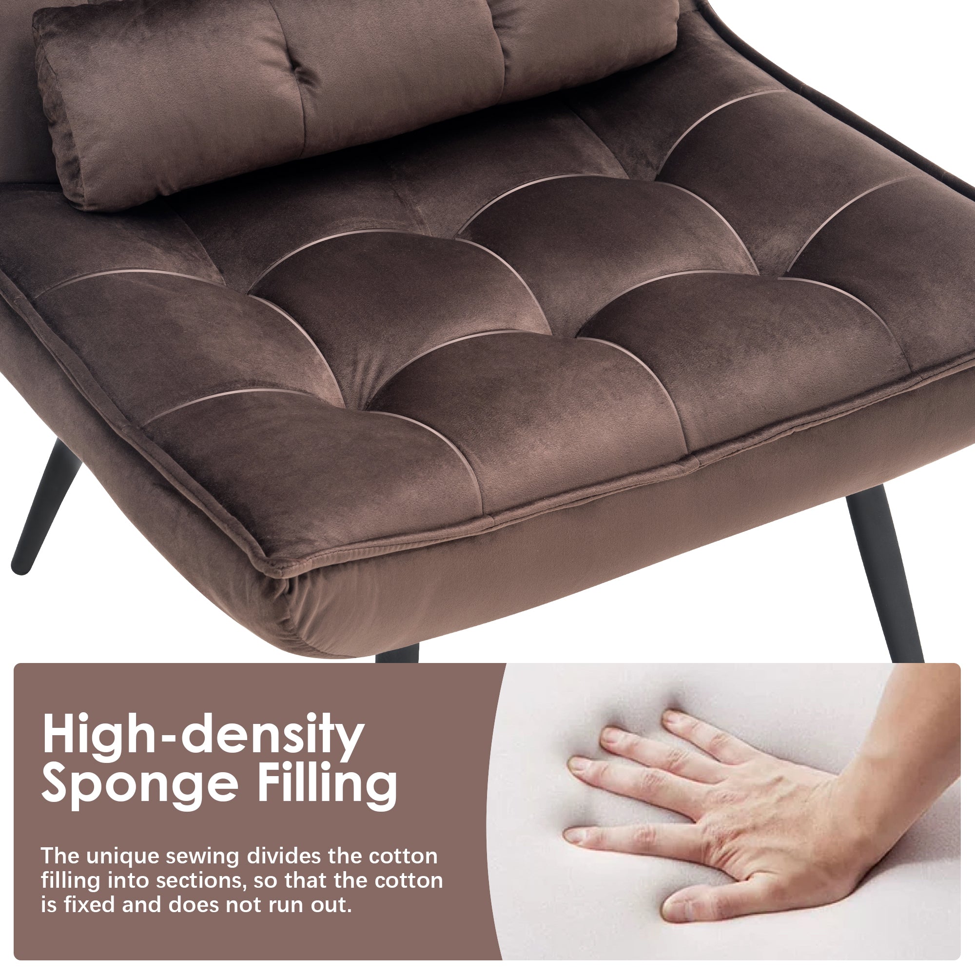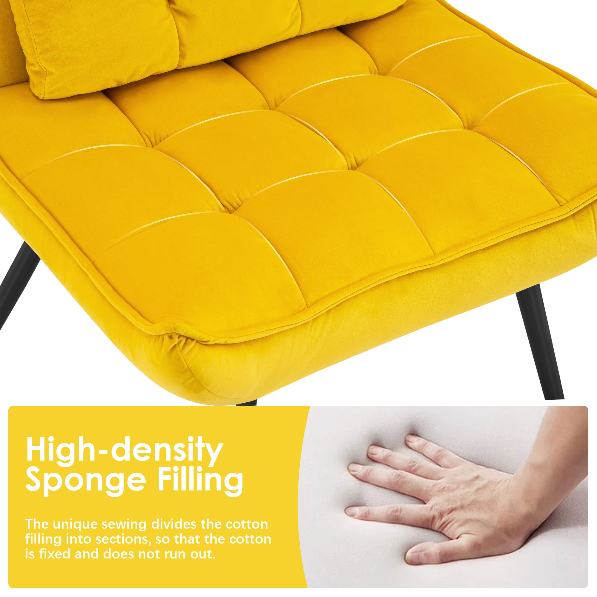 - Soft Velvet Fabric and Lumbar Pillow The living room chair adopts a soft velvet finish. The velvet fabric has a delicate touch and does not shed hair or balls, and does not cause any irritation to the skin. Velvet is durable and not easy to fade. The extra lumbar pillow can also provide soft support for your waist and make your waist fully relax.
