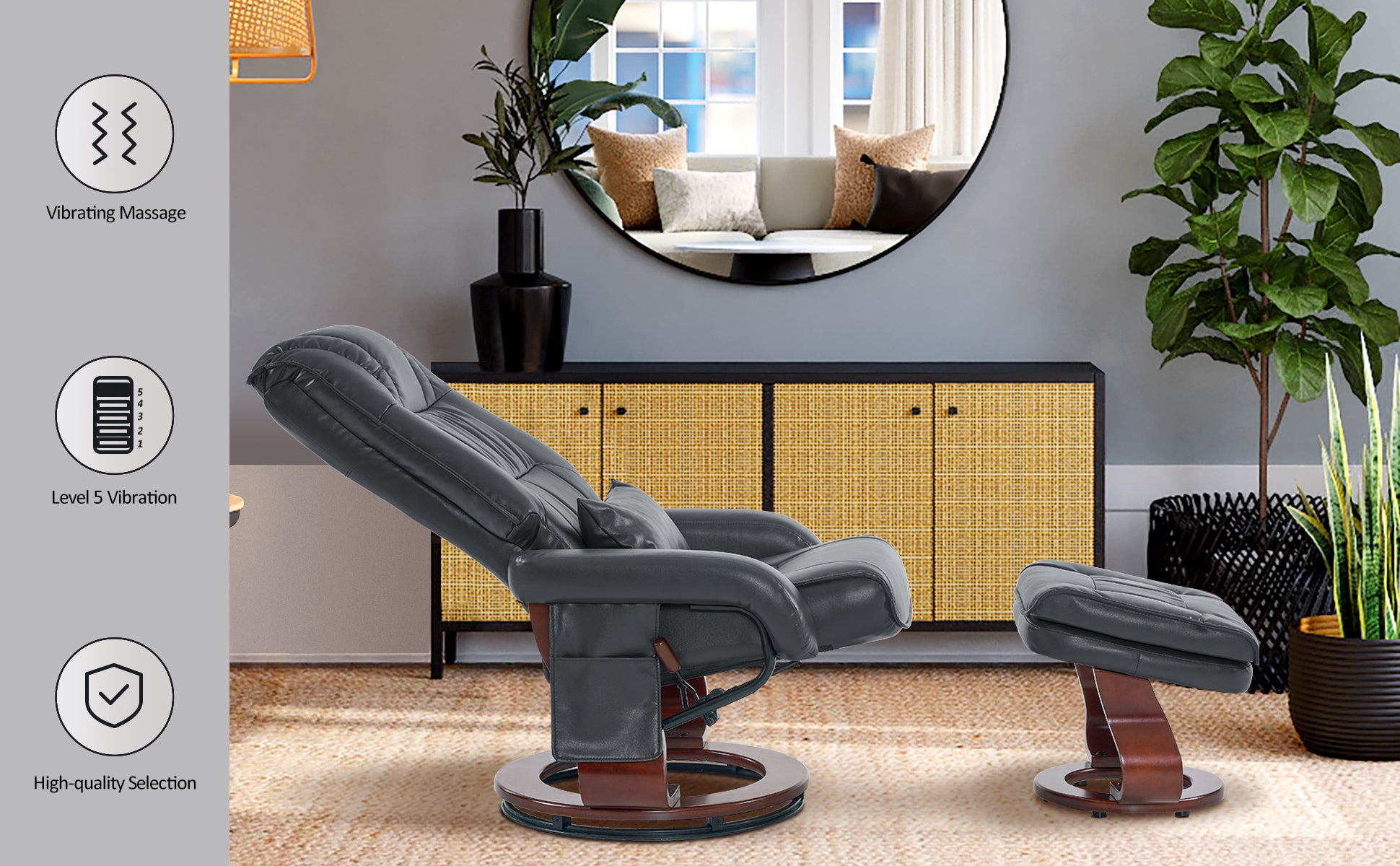 Swivel Recliners with Ottoman, with Massage, Faux Leather 4877