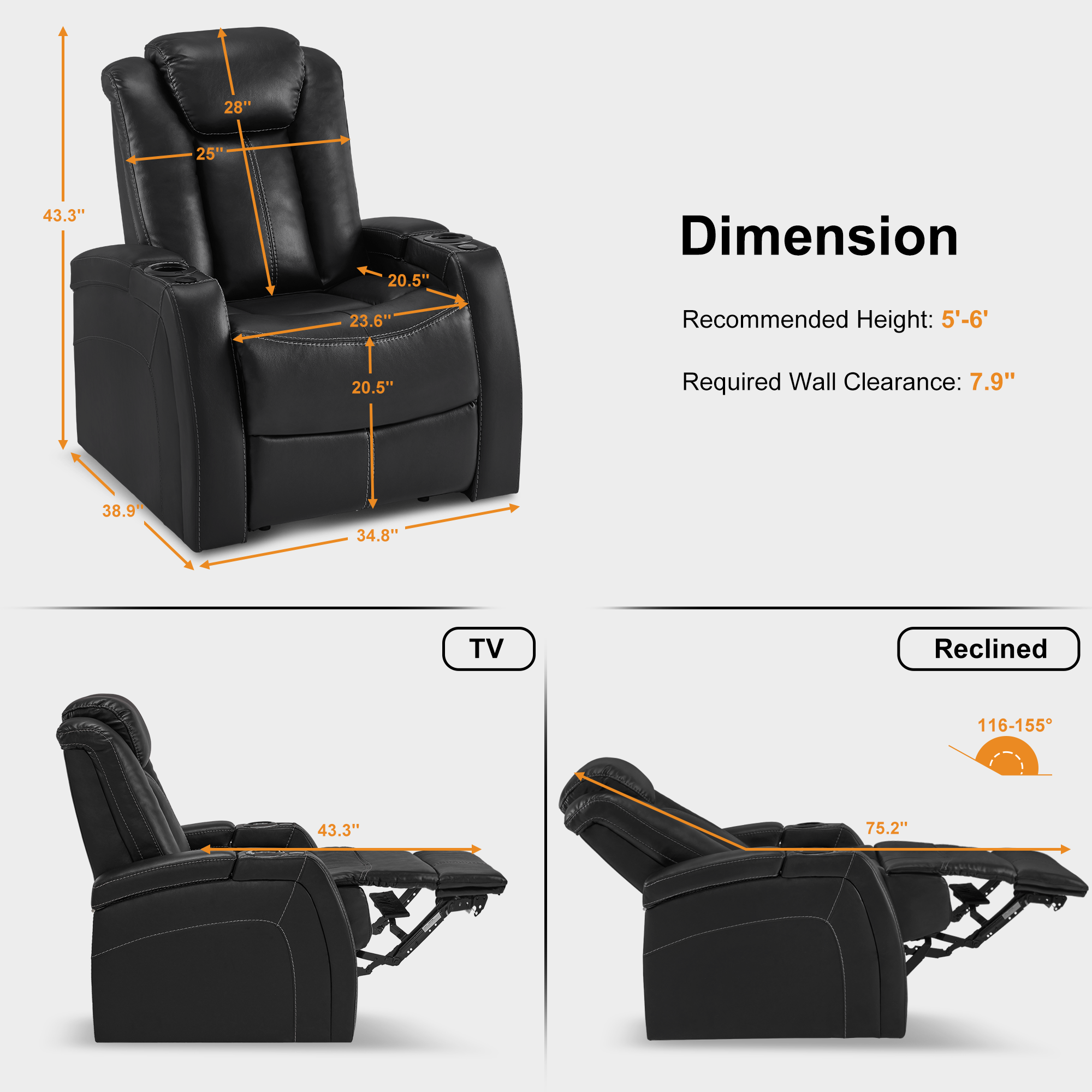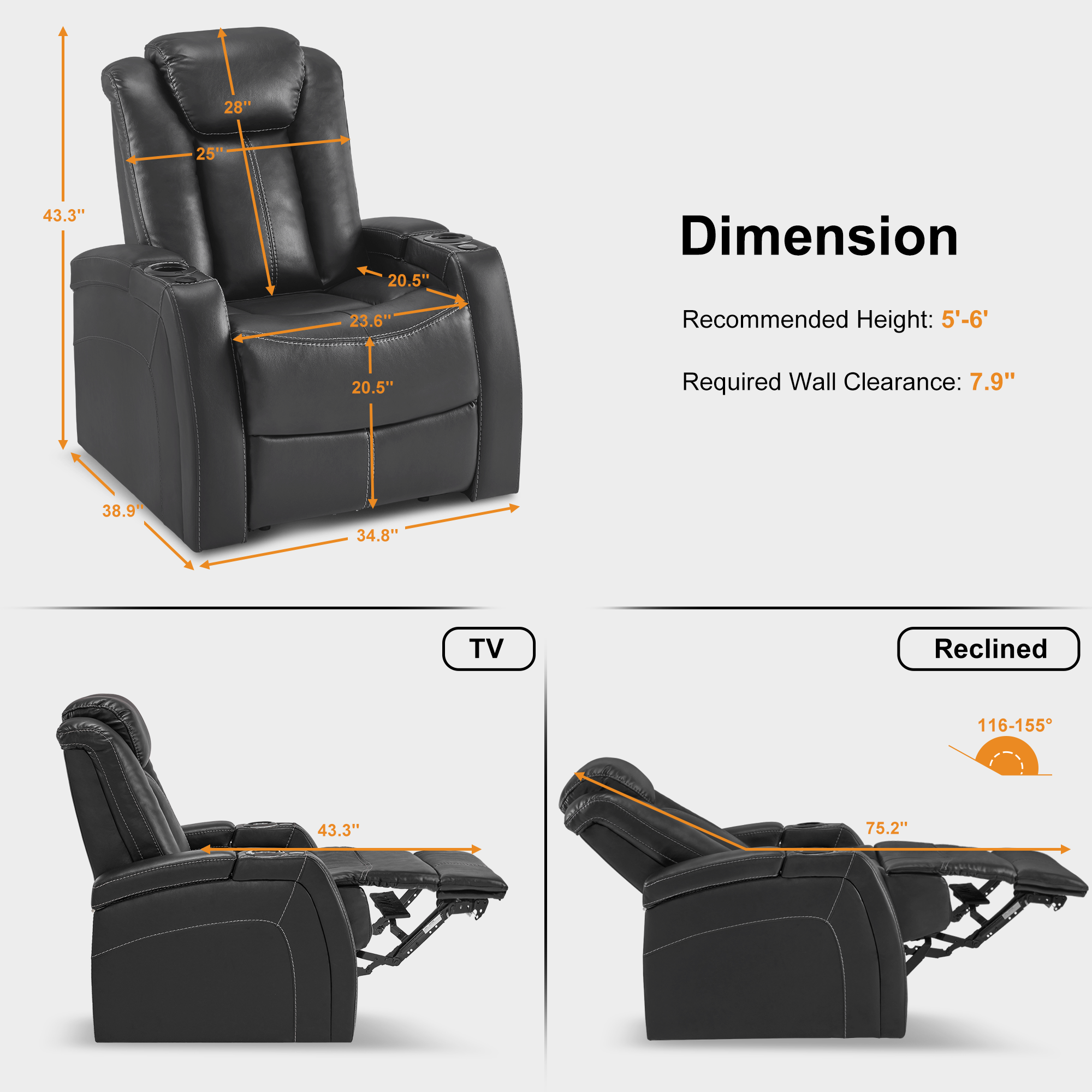 Power Recliner Chair, Home Theater Seating, Faux Leather HTS422