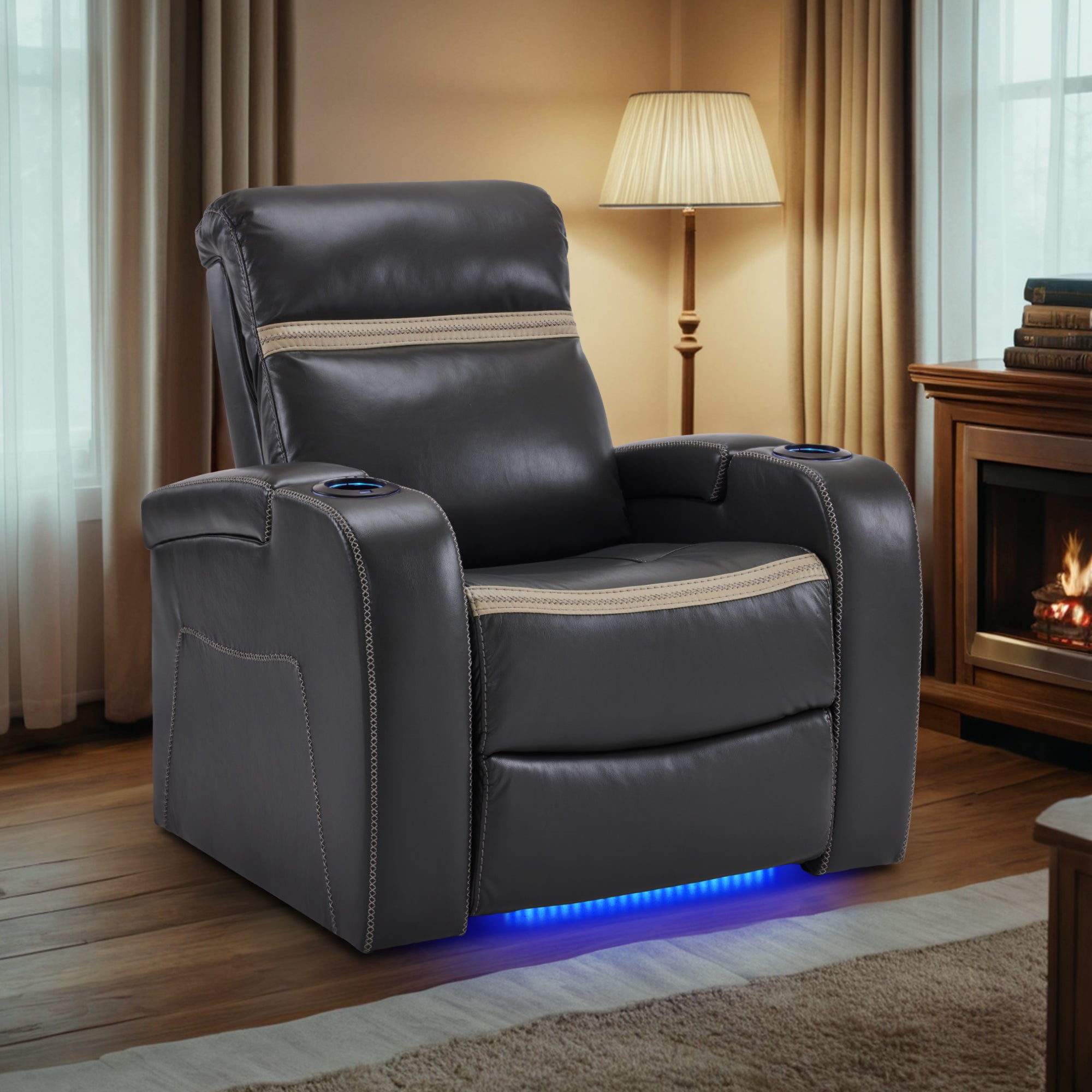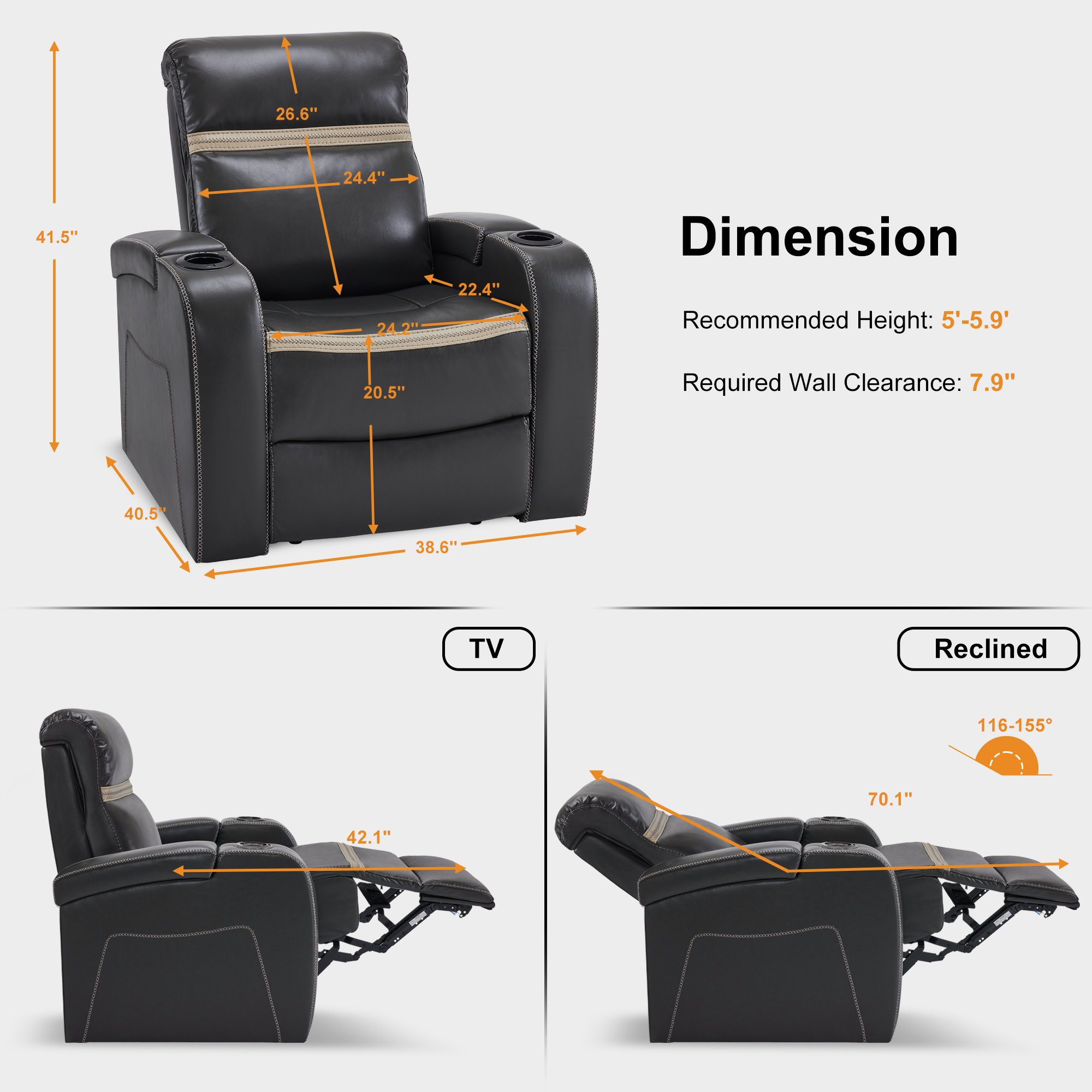 Power Recliner Chair, Home Theater Seating, Faux Leather HTS400
