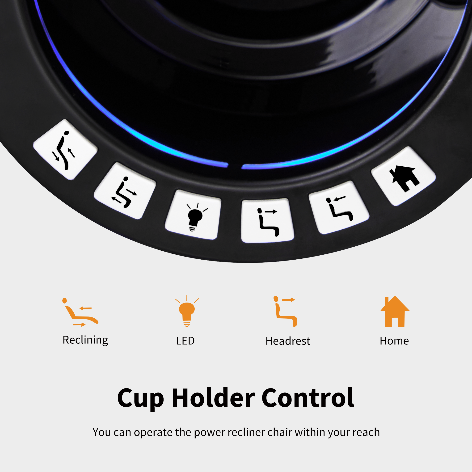 All control buttons are designed on the right cup holder. You can operate the electric recliner sofa within your reach