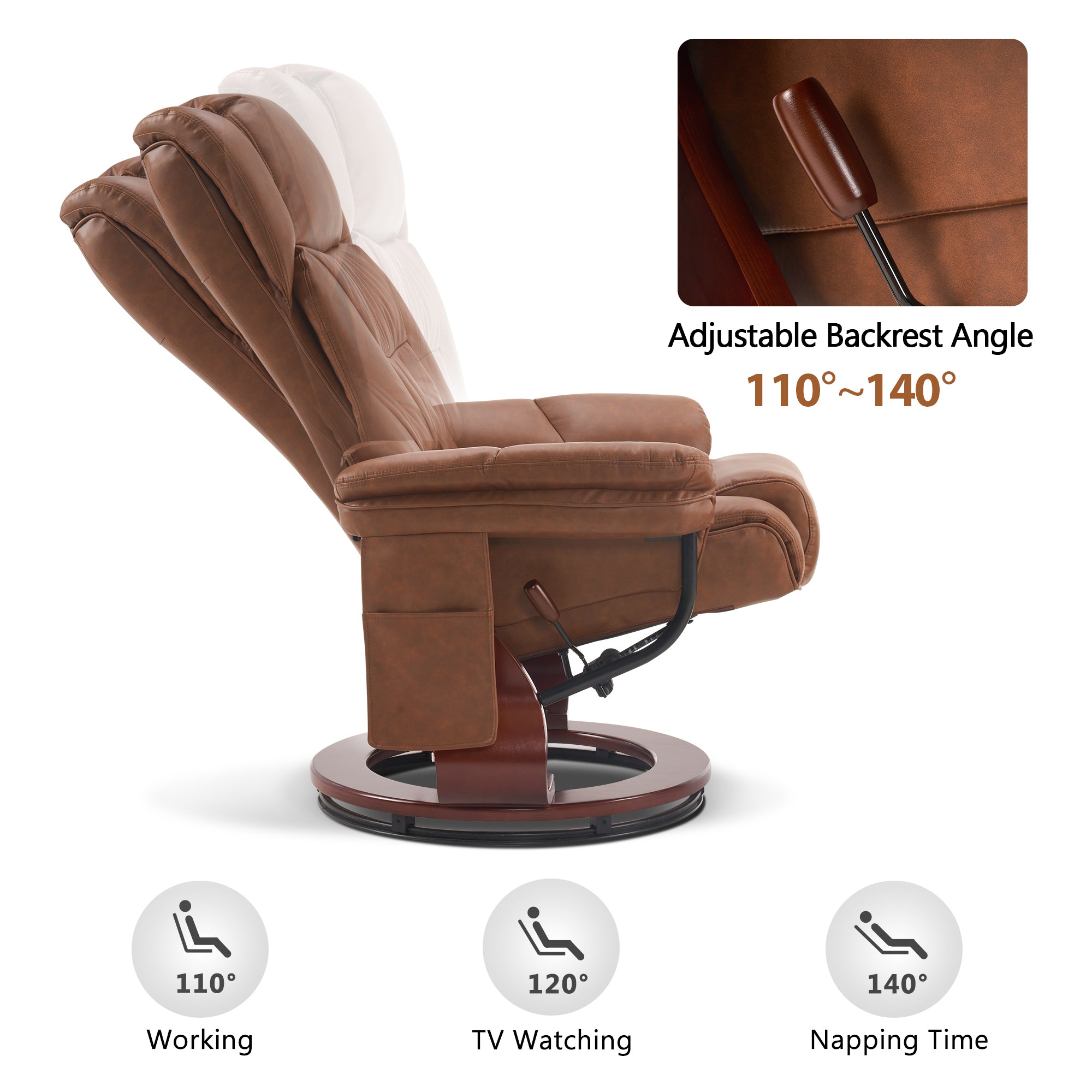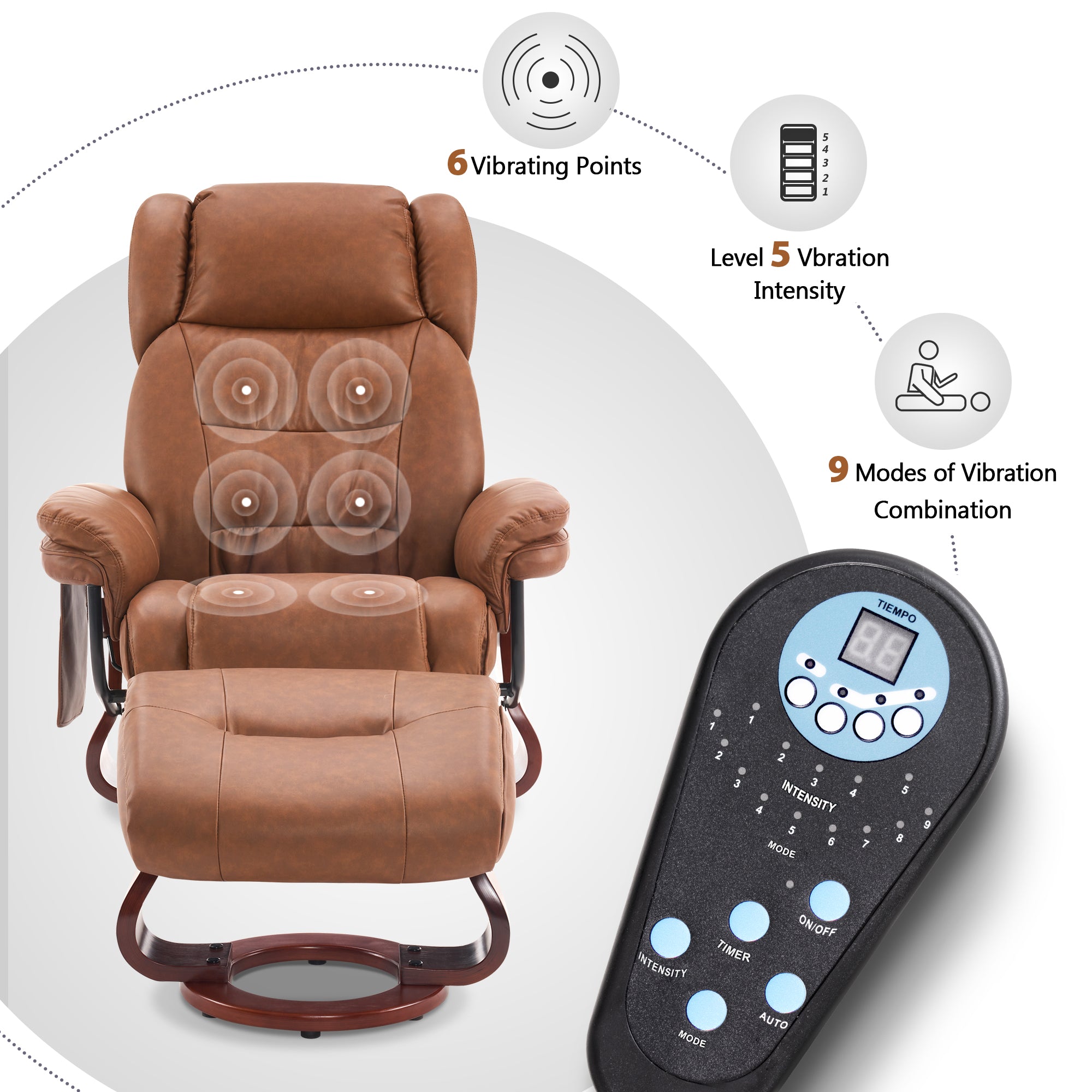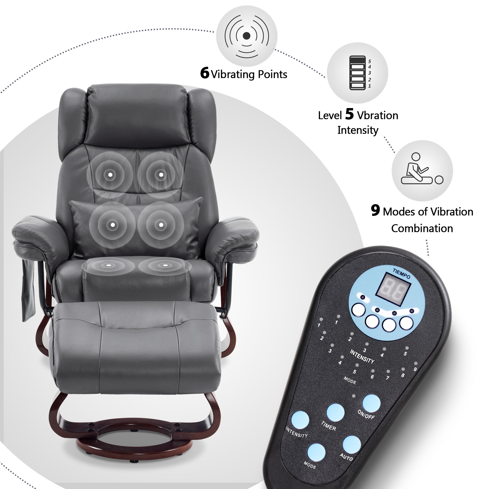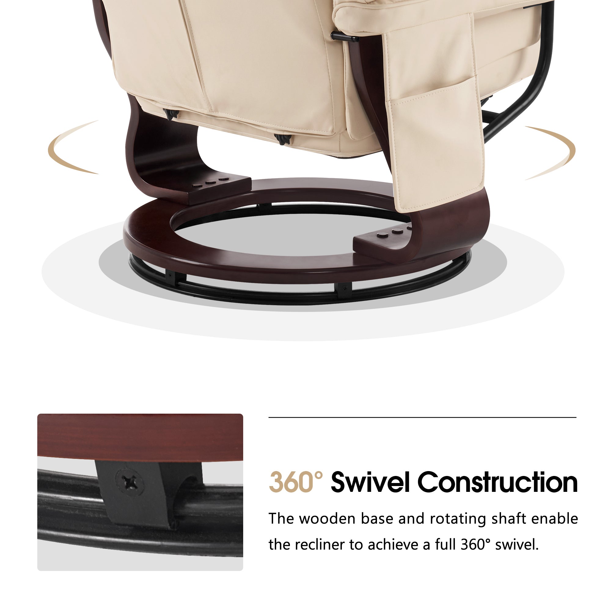 Swivel Recliners with Ottoman, with Massage, Faux Leather 4734