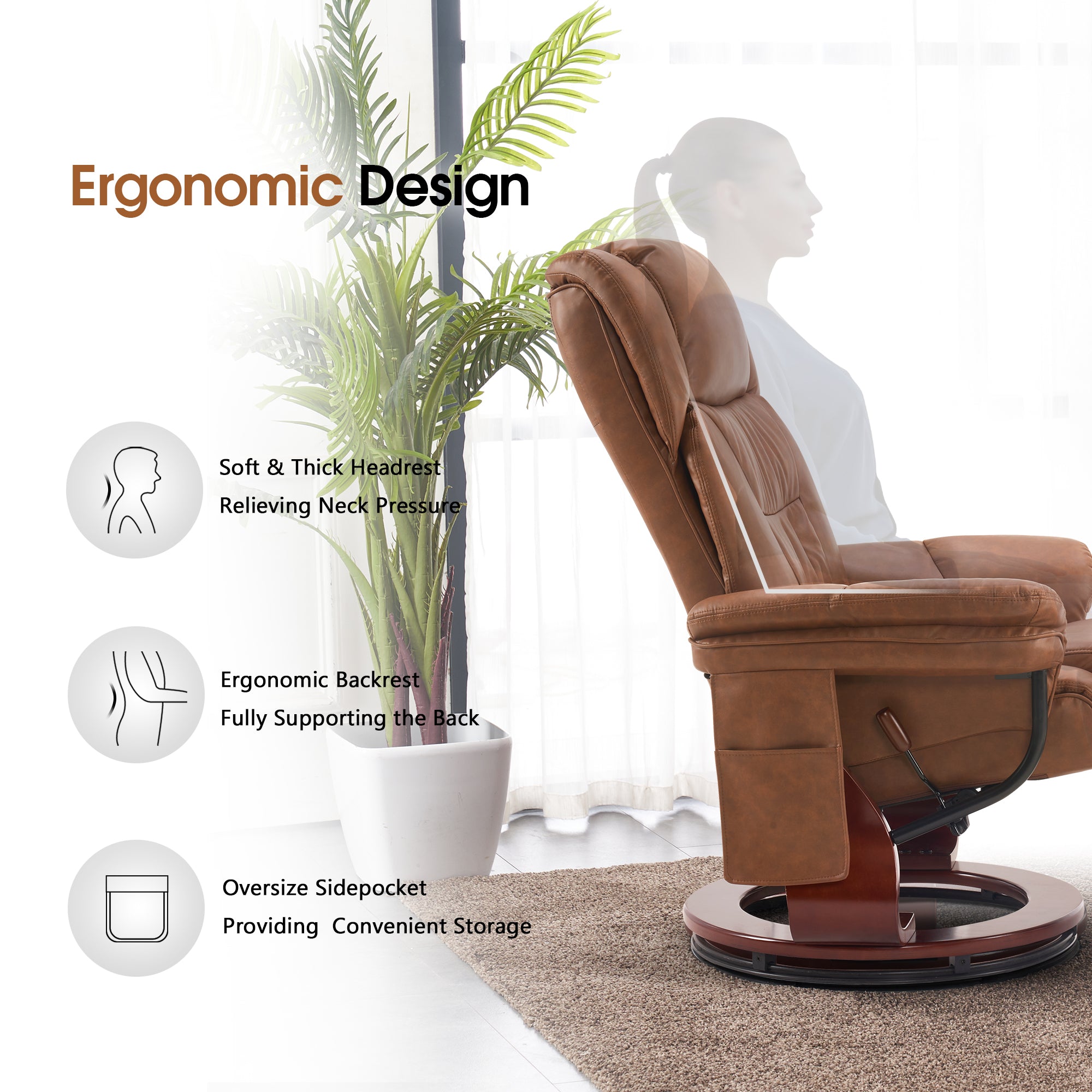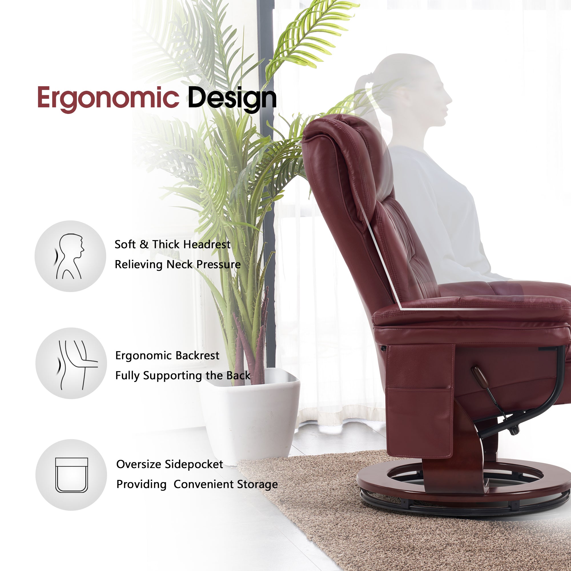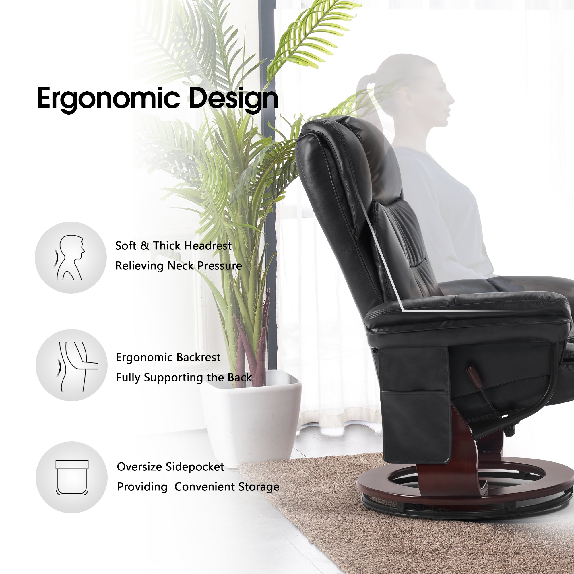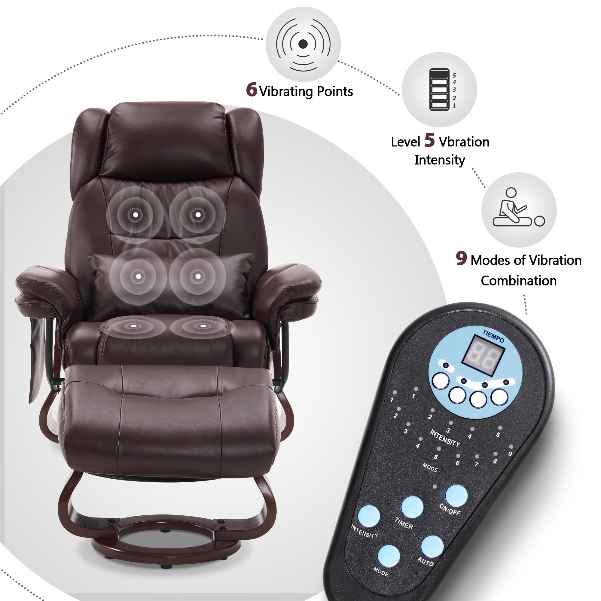 Swivel Recliners with Ottoman, with Massage, Faux Leather 4734