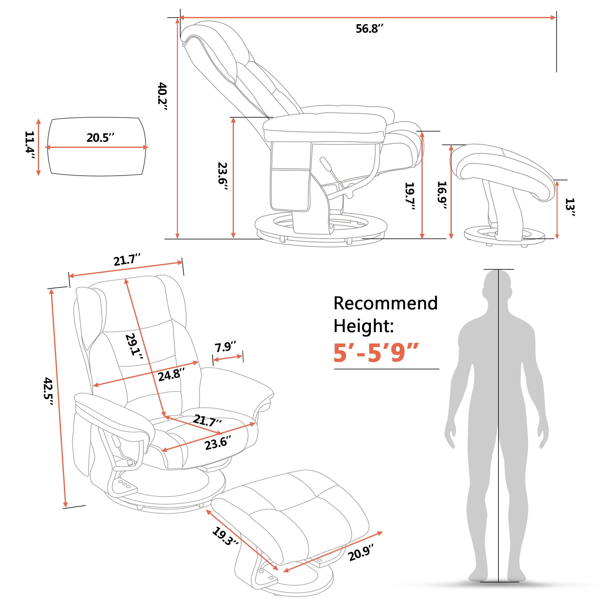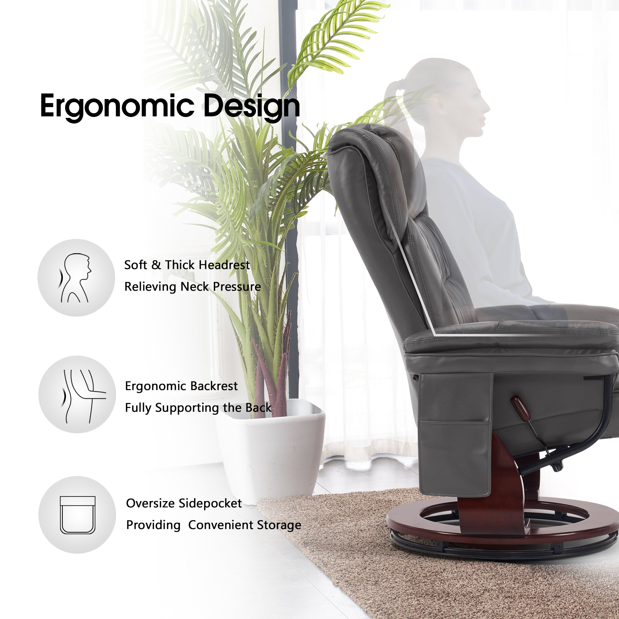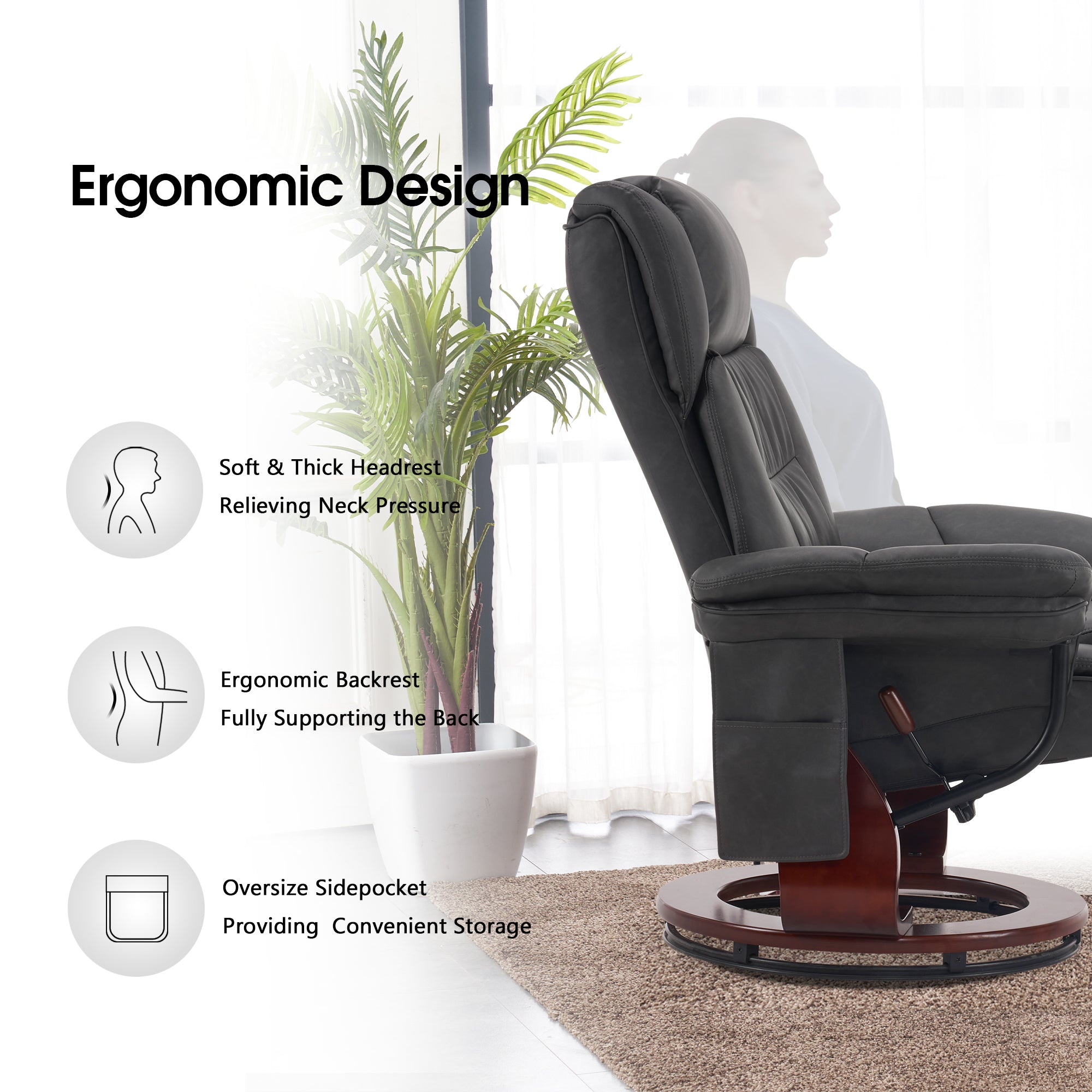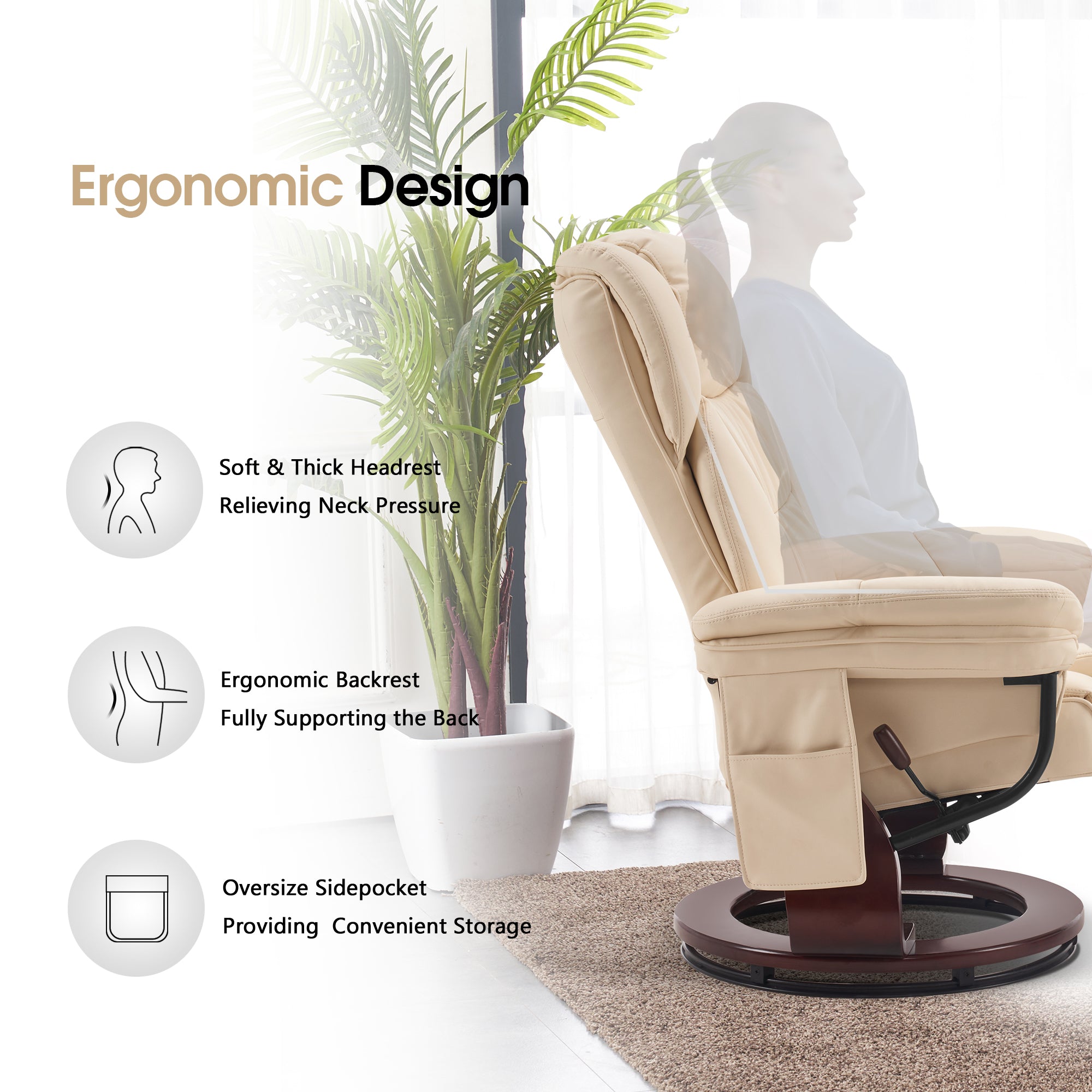 Swivel Recliners with Ottoman, with Massage, Faux Leather 4734