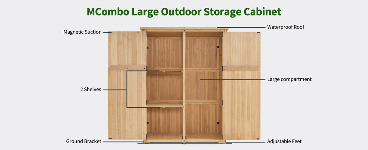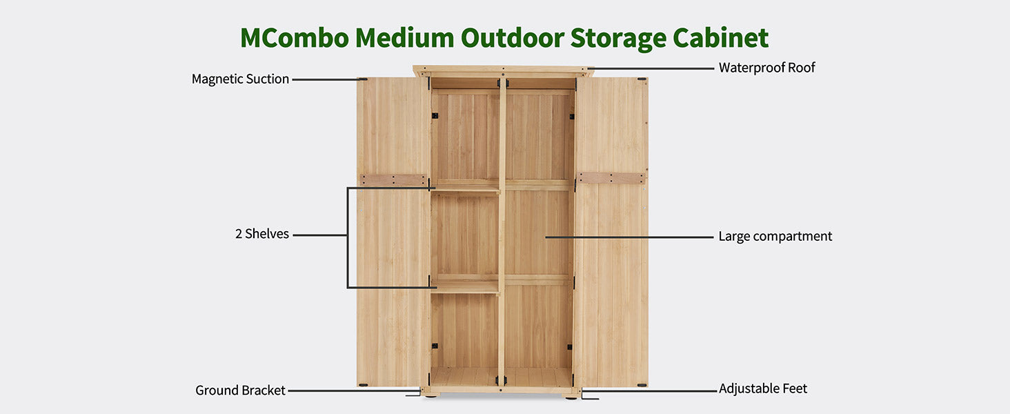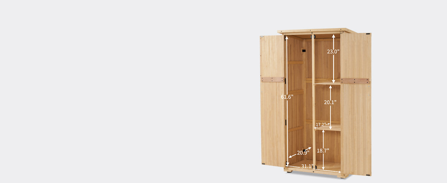 Wood Storage Cabinet: The outdoor storage closet allows you to place it in more places, such as outdoor, indoor, garden, yard, porch and even more. (Dimension: 32.4" x 18.9" x 66.3")