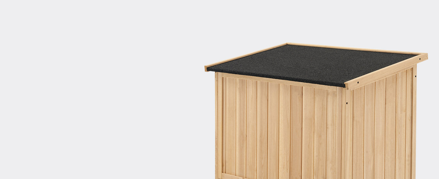 Waterproof Roof: The sloping roof is covered with asphalt, it's not only waterproof but also void water accumulation, making the outdoor storage upright longer service life outdoors.