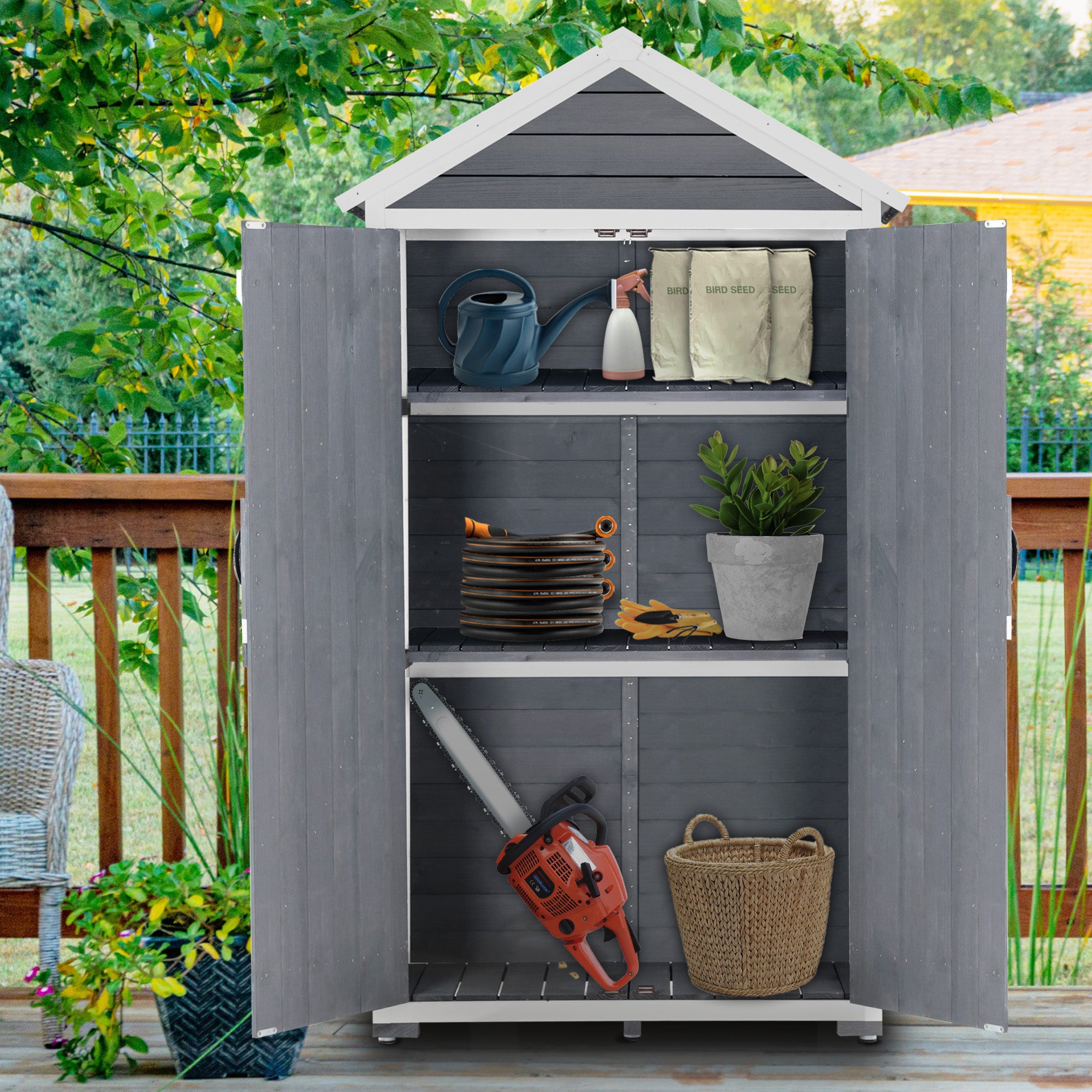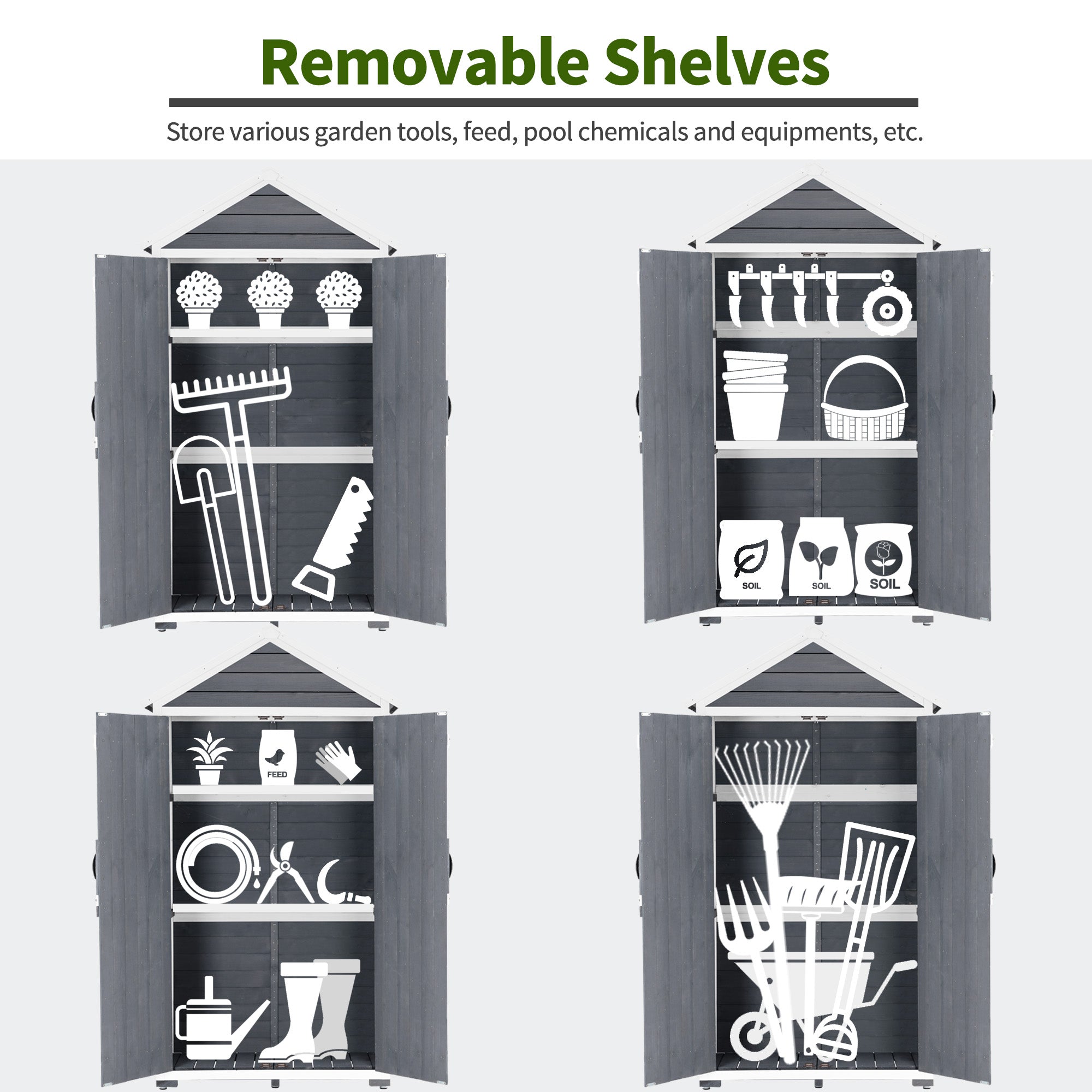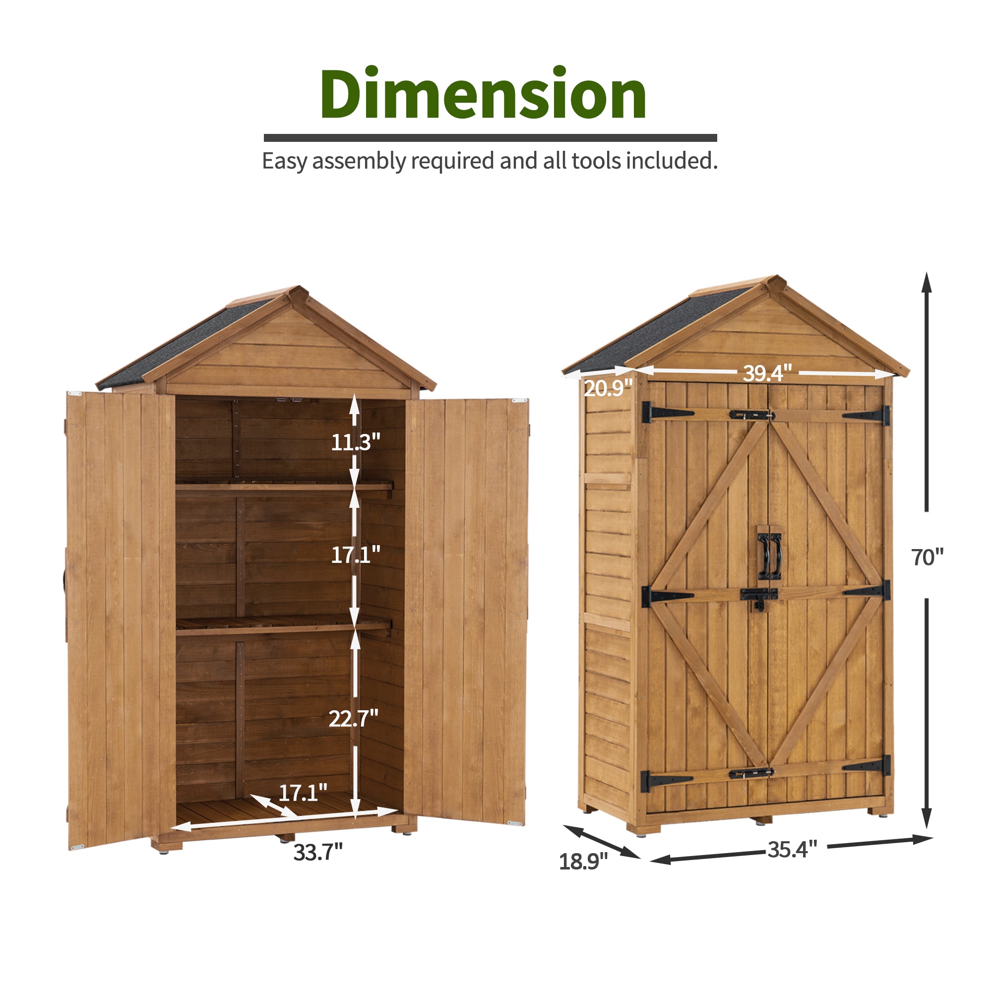 - Large Wood Shed: Hide the messy garden tools and do not take up too much space. You can place the outdoor storage shed in the garden, patio, deck, porch, garage, etc.(Dimension: 35.4"x18.9"x70")
