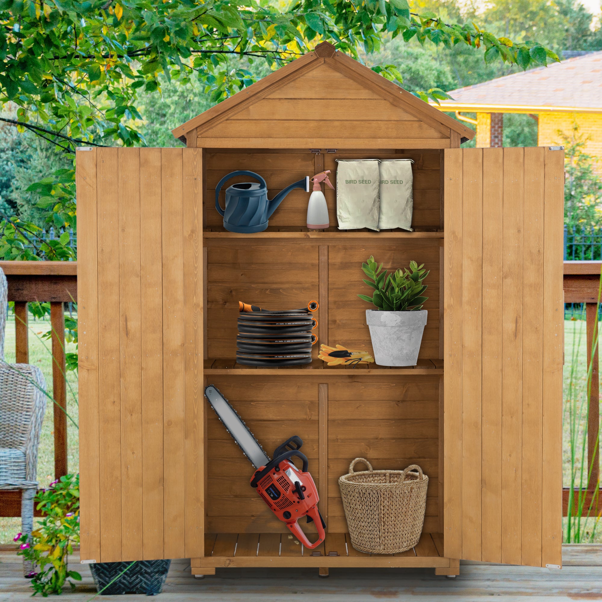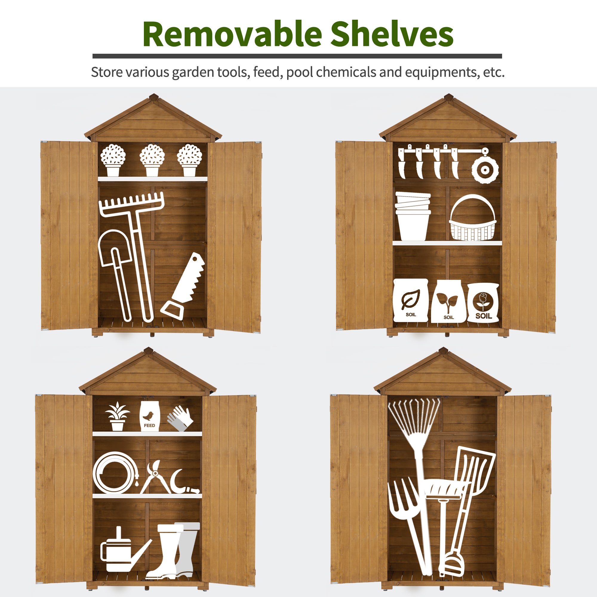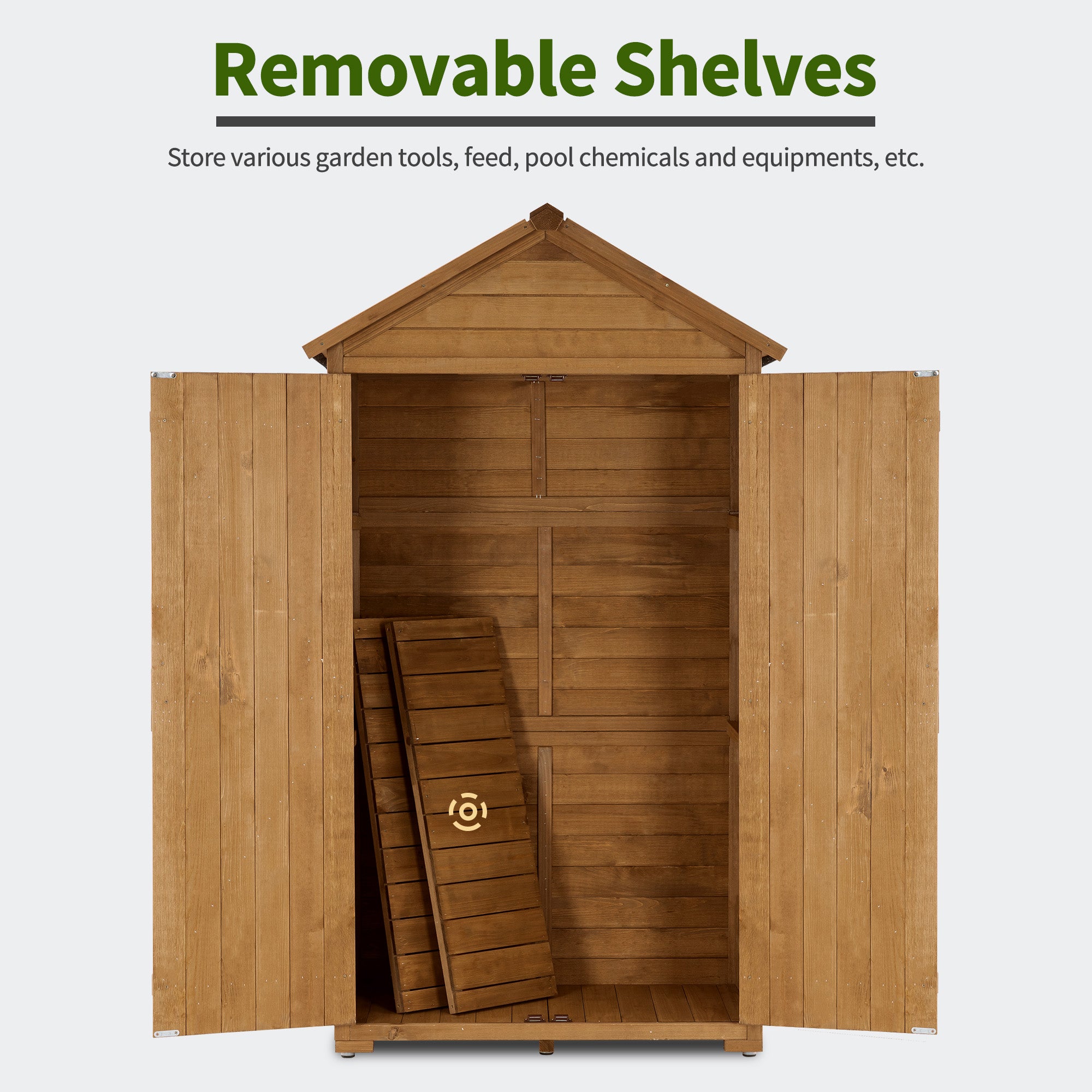 Fir Wood Material: The outdoor storage shed is made of high-quality fir wood, and the exterior has been polished to express a rustic style. Besides, the outdoor garden shed is easy with other décor and natural settings.
