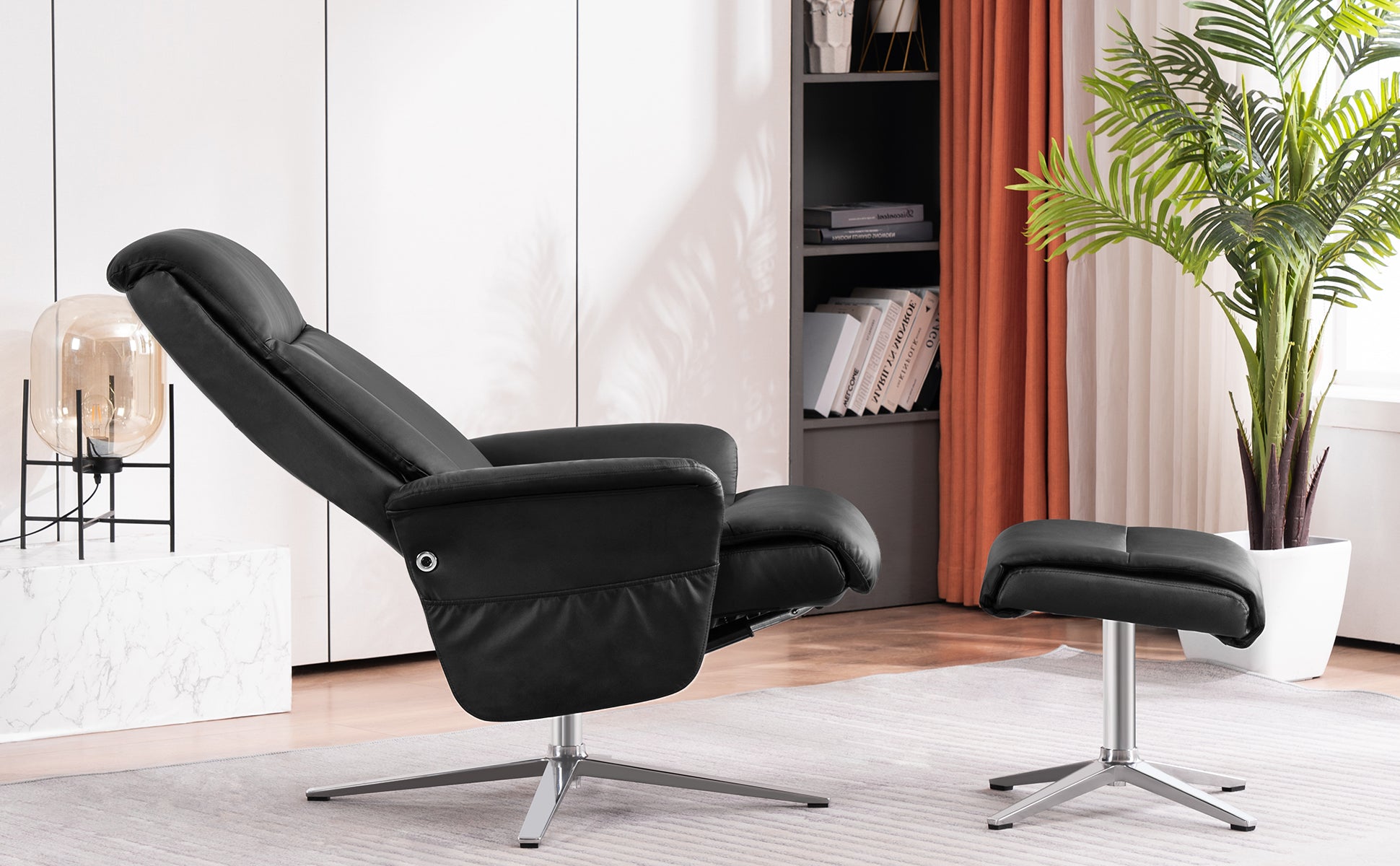 Swivel Recliner with Ottoman, Faux Leather 4603