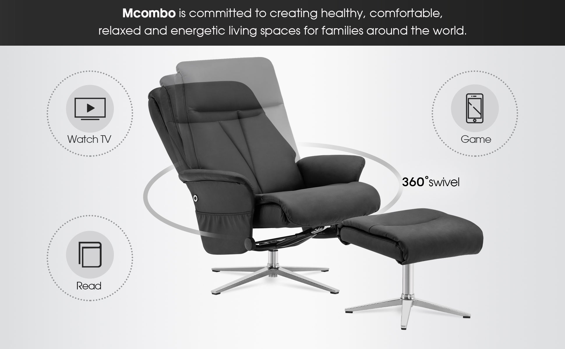 MCombo modern leisure chair series is designed and developed according to the five major needs of the human body-using computers, watching TV, listening to music, reading, and resting.