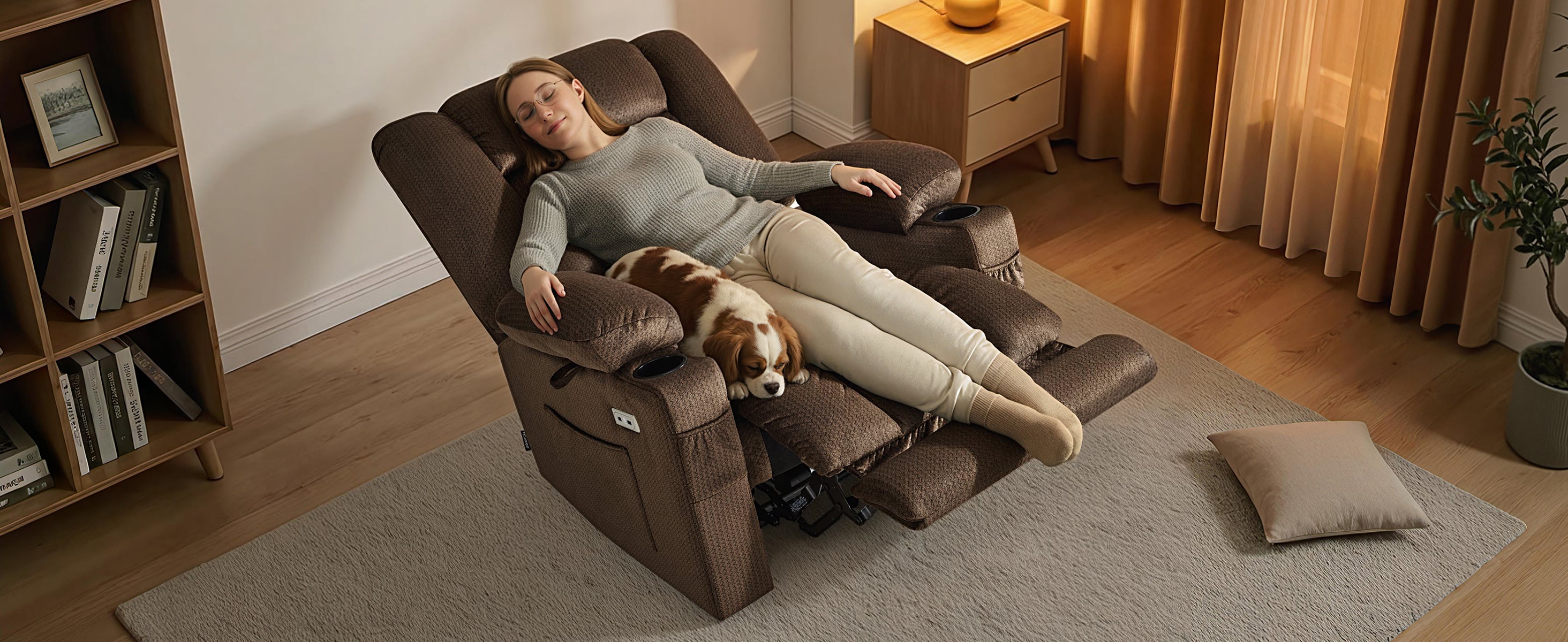 Oversized Triple Motor Power Rocker Recliner for Adults, USB & Type-C, Faux Leather 6277