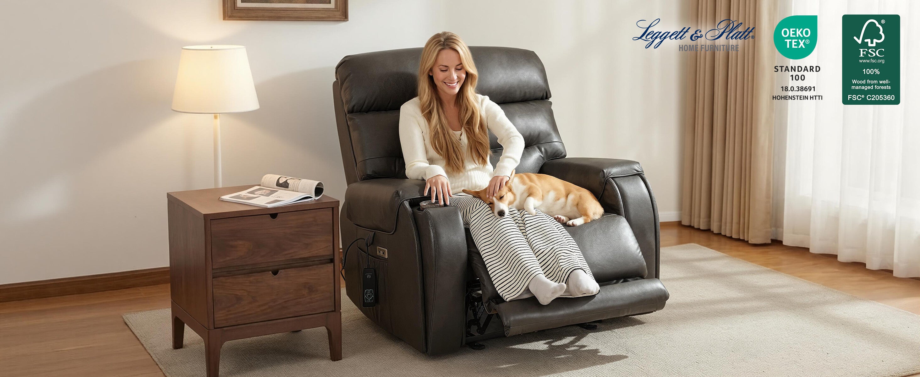 Gently adjust the powered headrest to find your ideal angle for watching TV, reading, or relaxing—providing targeted neck and head support.