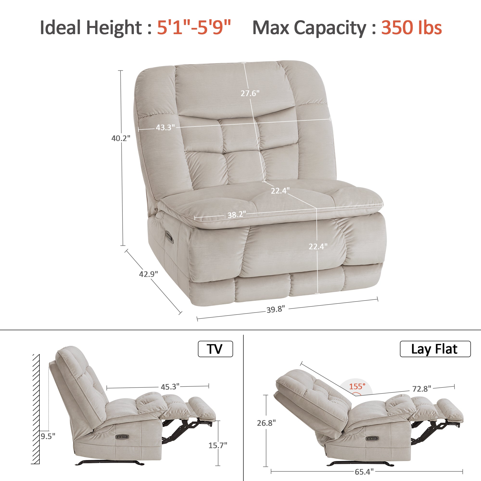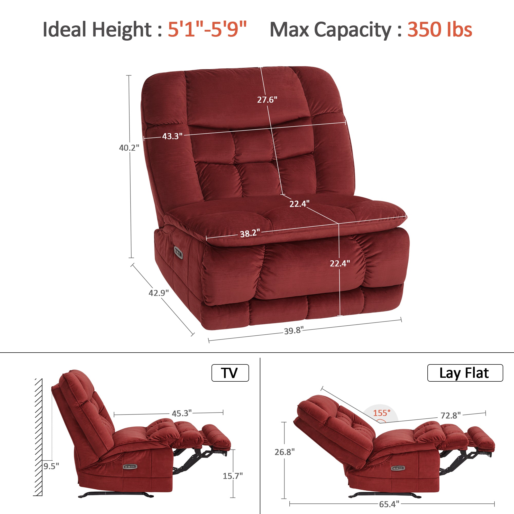 Oversized Dual Motor Armless Power Recliner Rocker Chair, Fabric PR607
