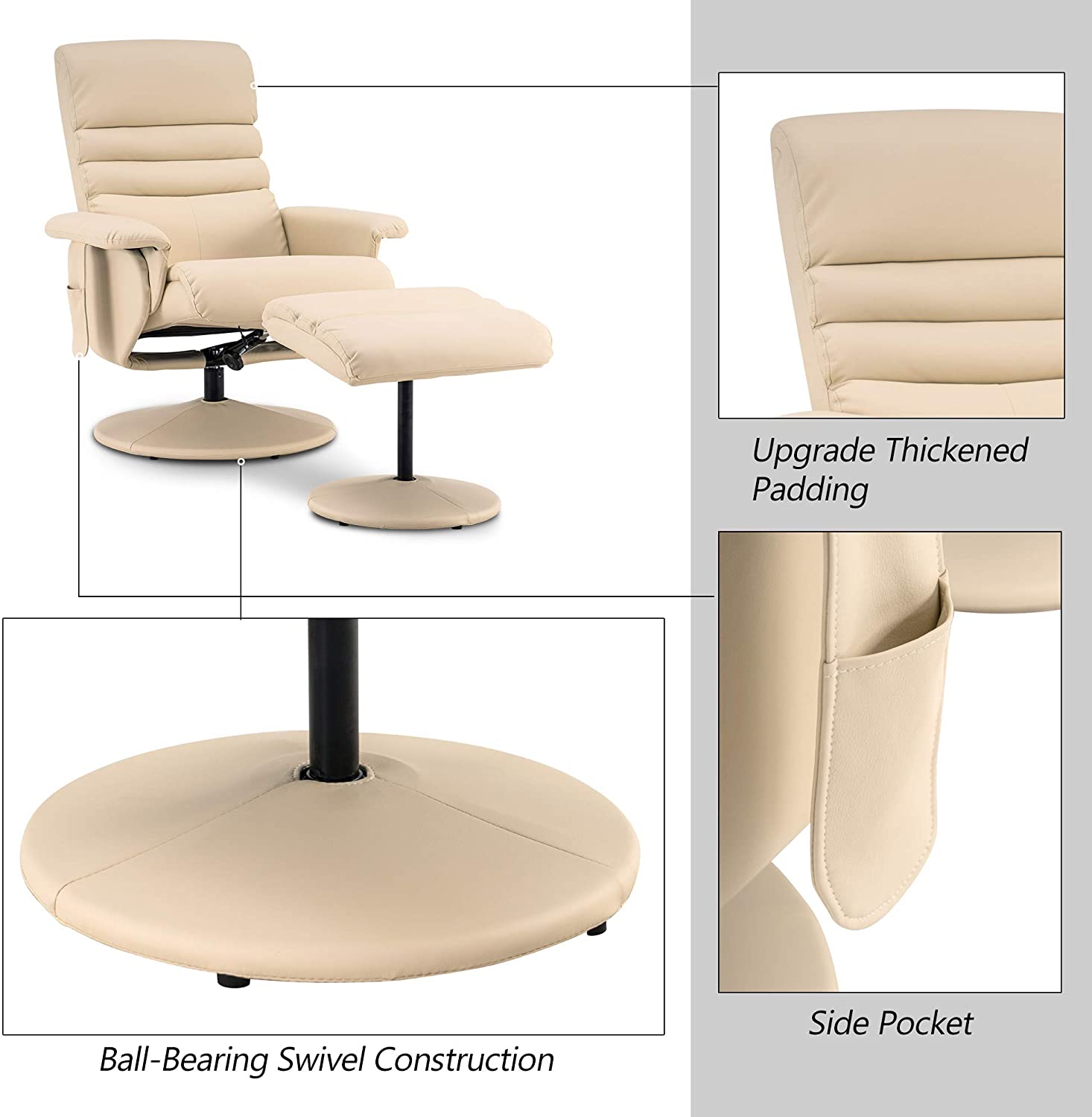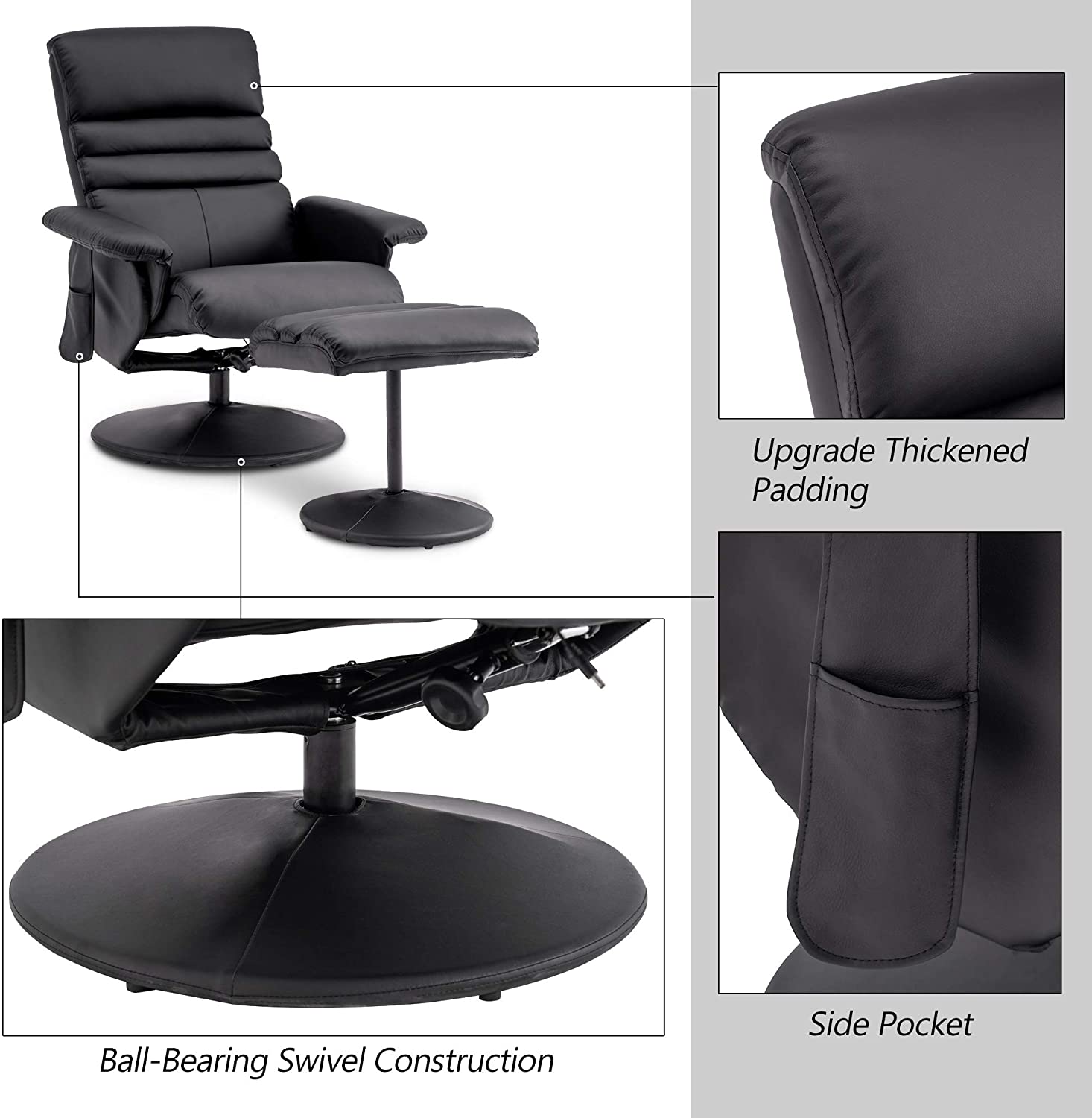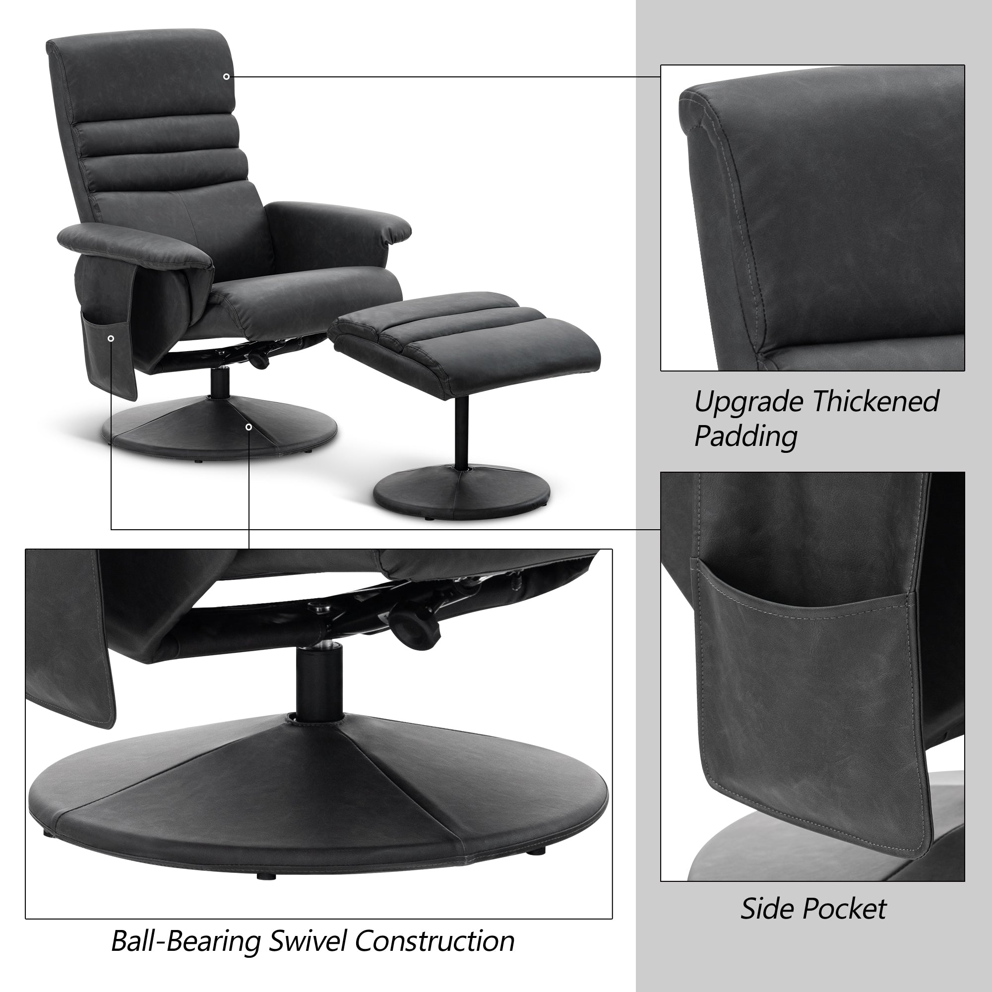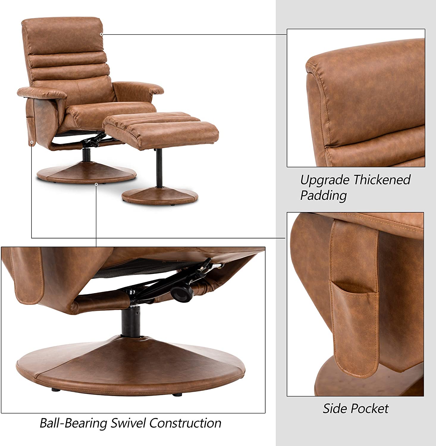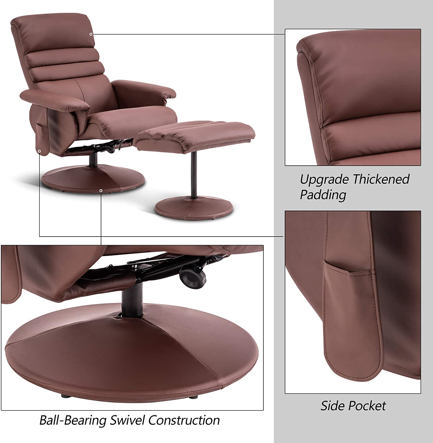 Swivel Recliner with Ottoman, Faux Leather 7902