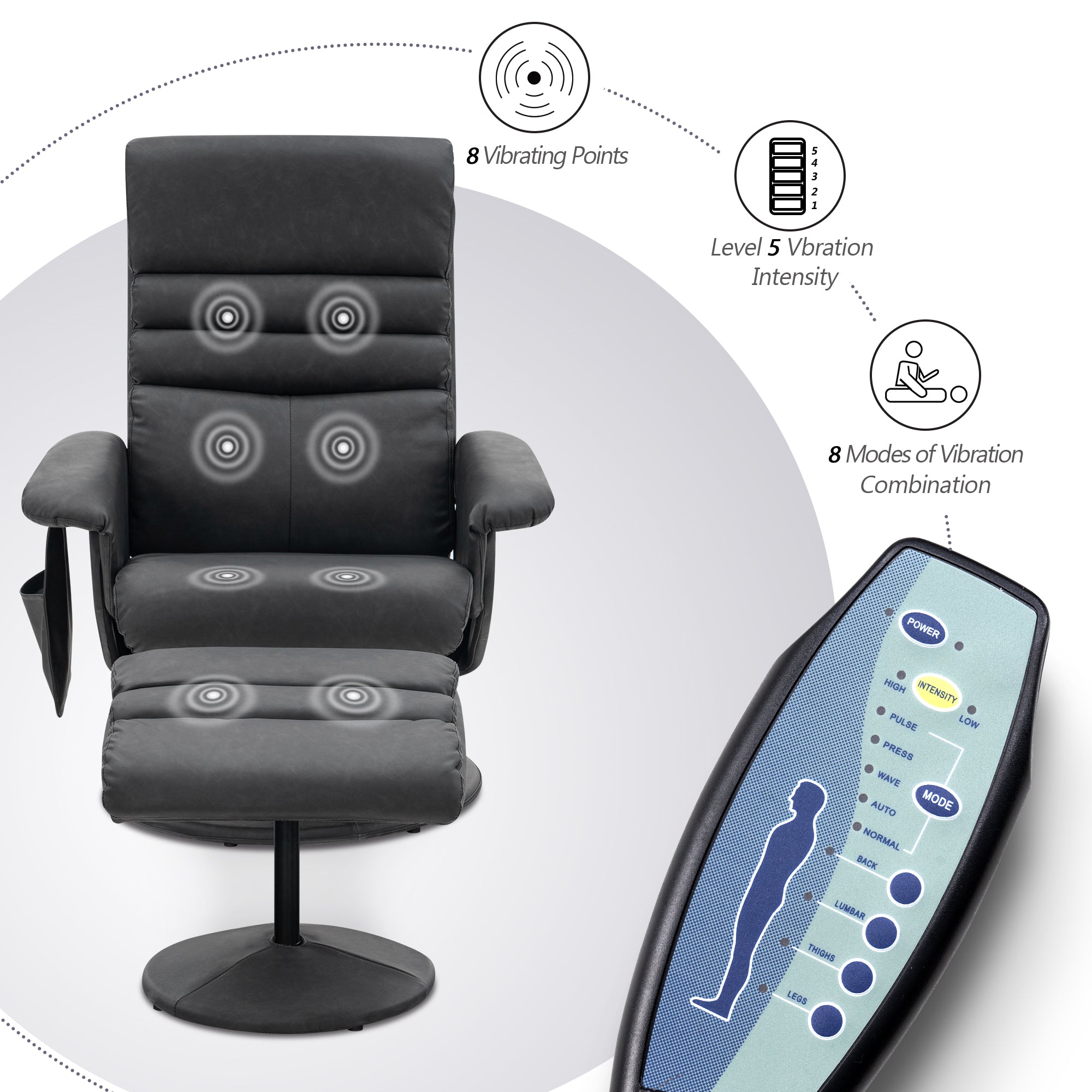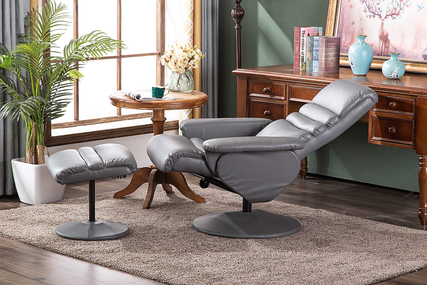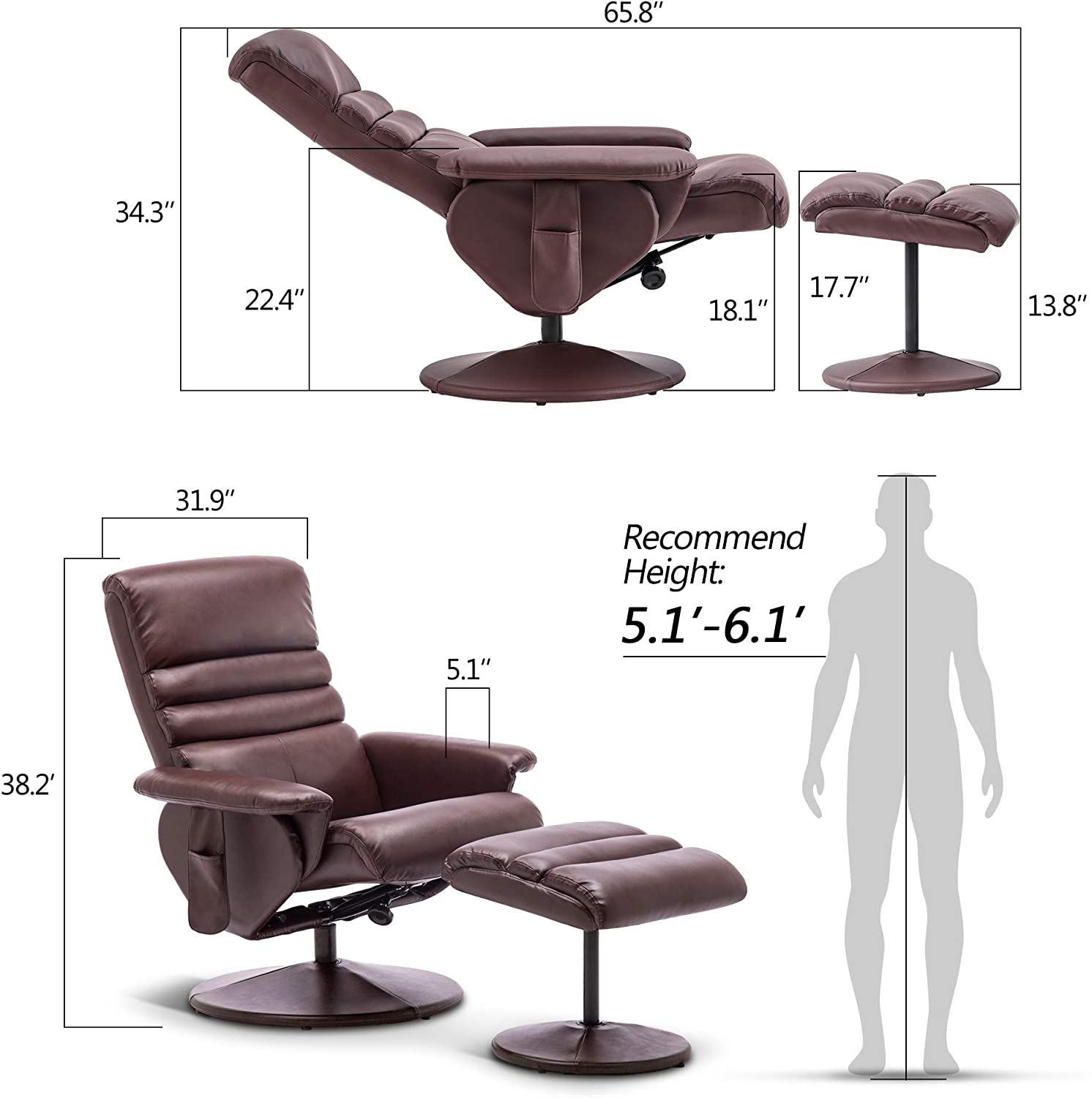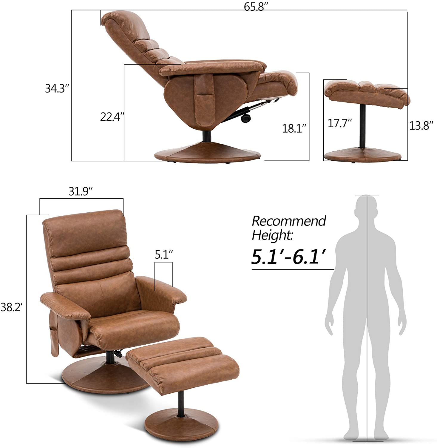 Swivel Recliner with Ottoman, Faux Leather 7902