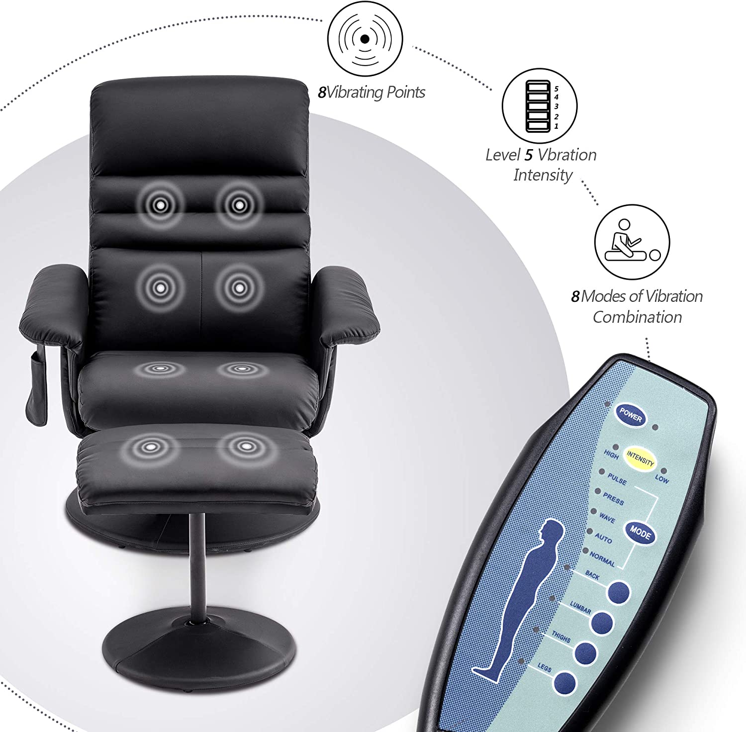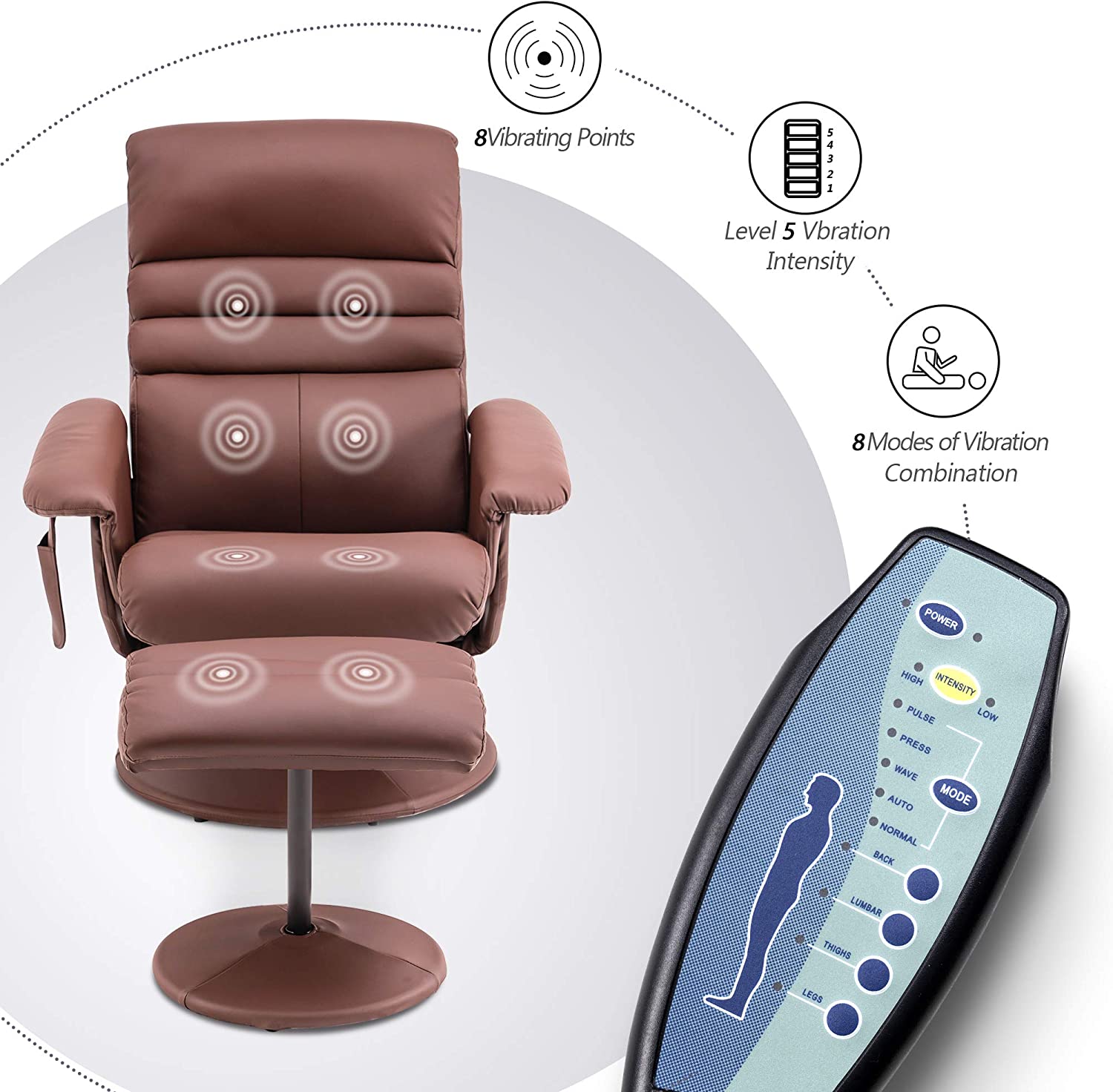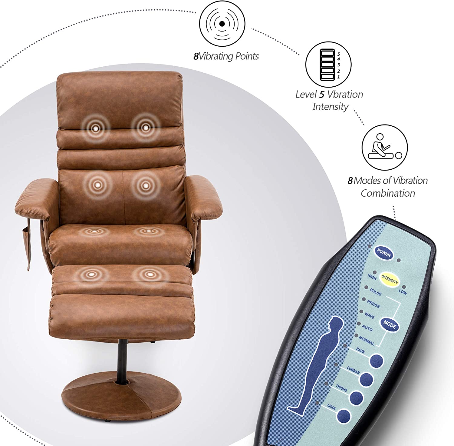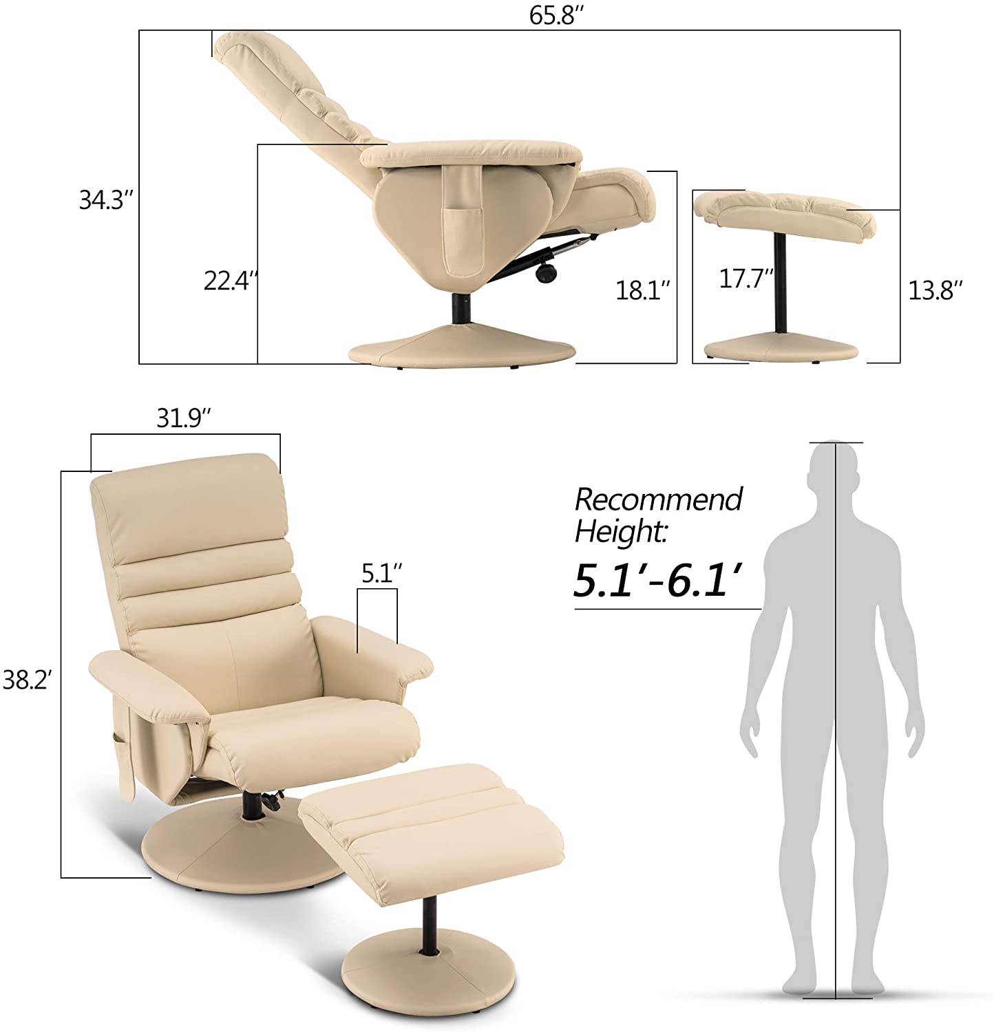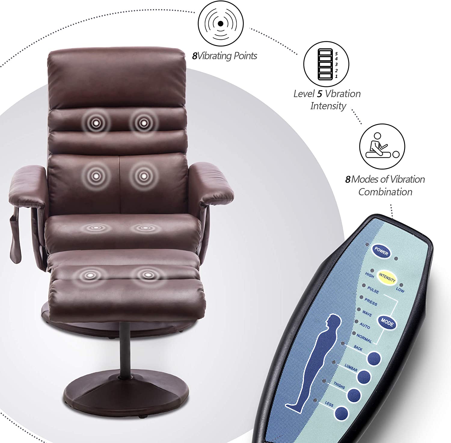 Swivel Recliner with Ottoman, Faux Leather 7902