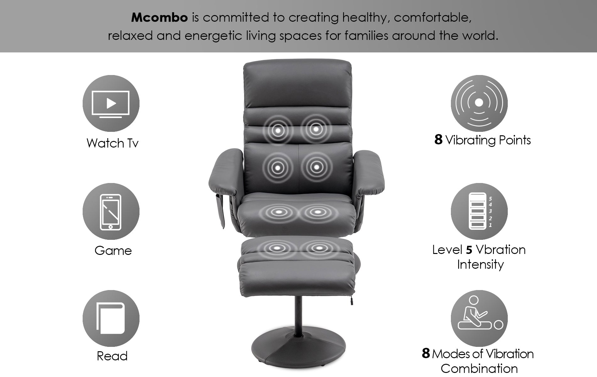 - 4 massage positions of back, lumbar, thighs and legs, with 5 modes and 8 nodes