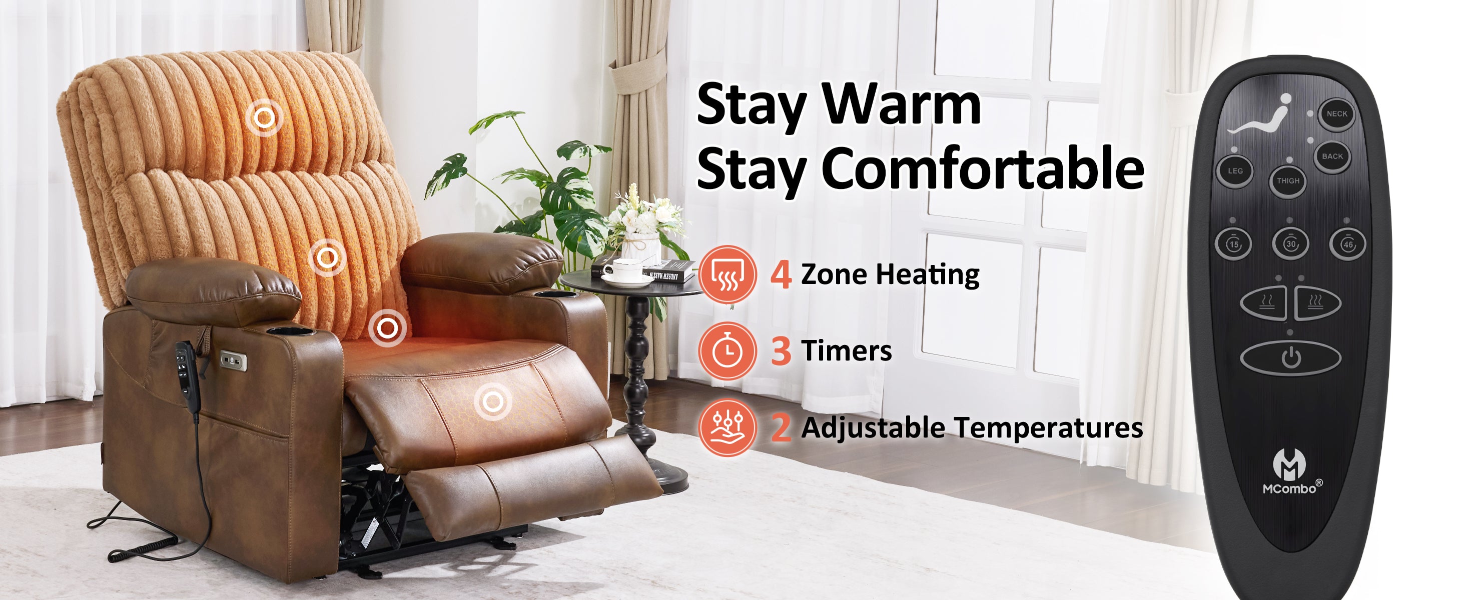 - Full-Body Heating:4-Zone(Neck,Back,Seat,Leg) heat to relieve tension and ease discomfort,Warm the whole body. 2 adjustable temperatures(Low 40°-45° and high 60°-65°) and 3 timer settings(15/30/45 minute) . Let you tailor the experience to your personal needs.