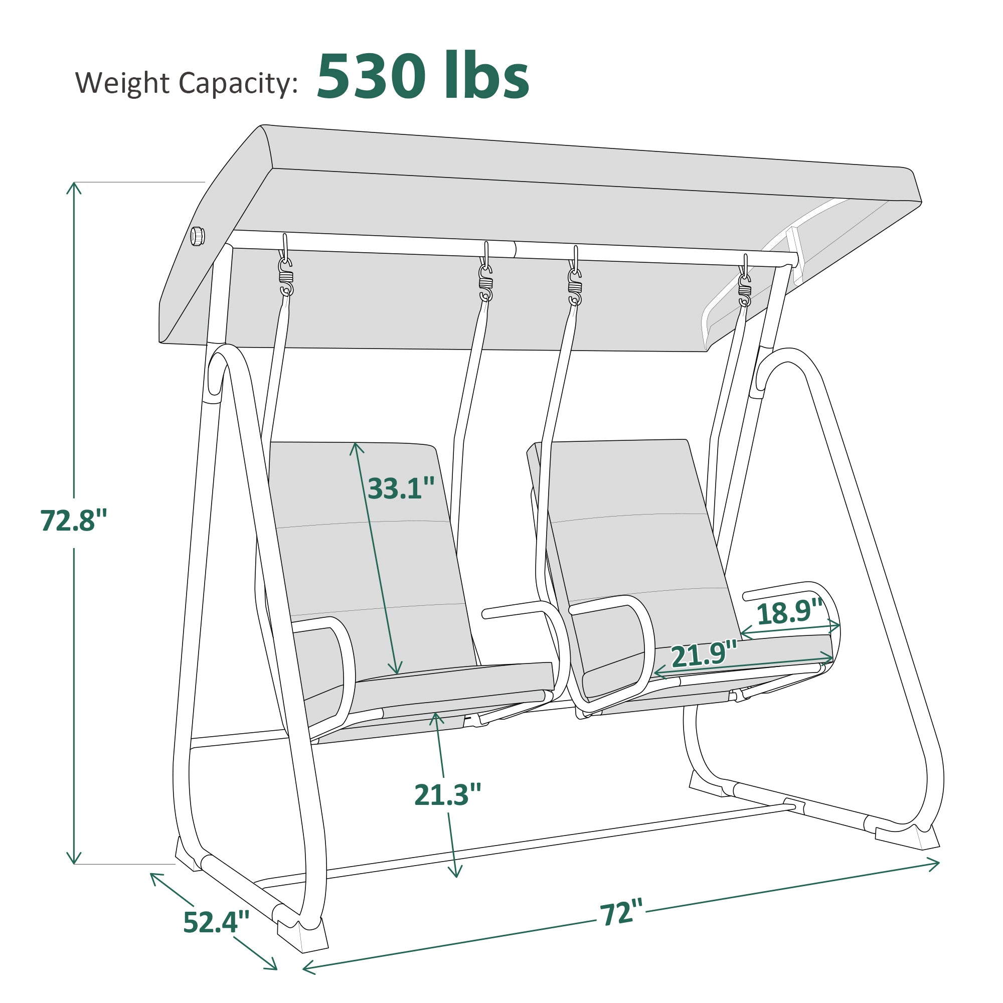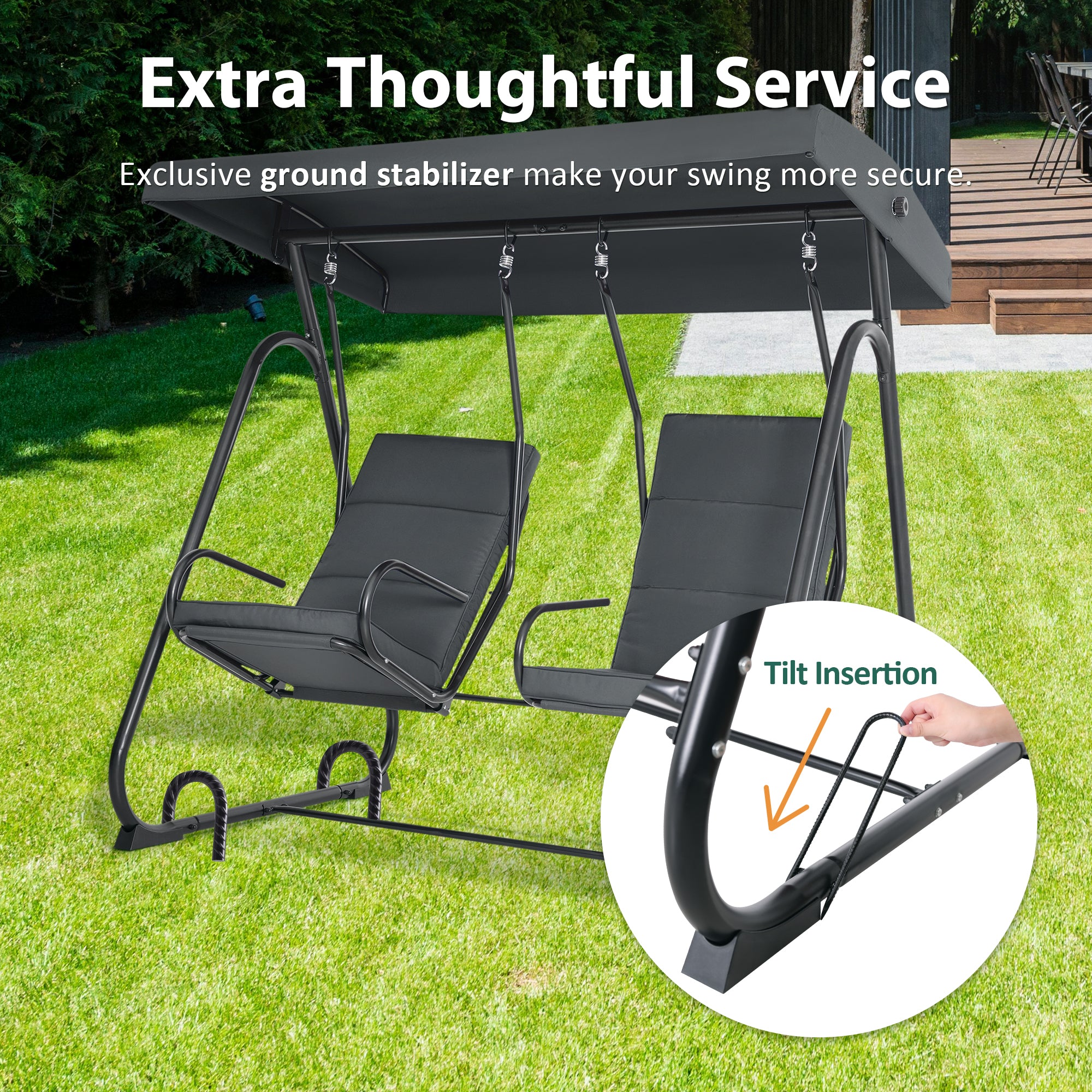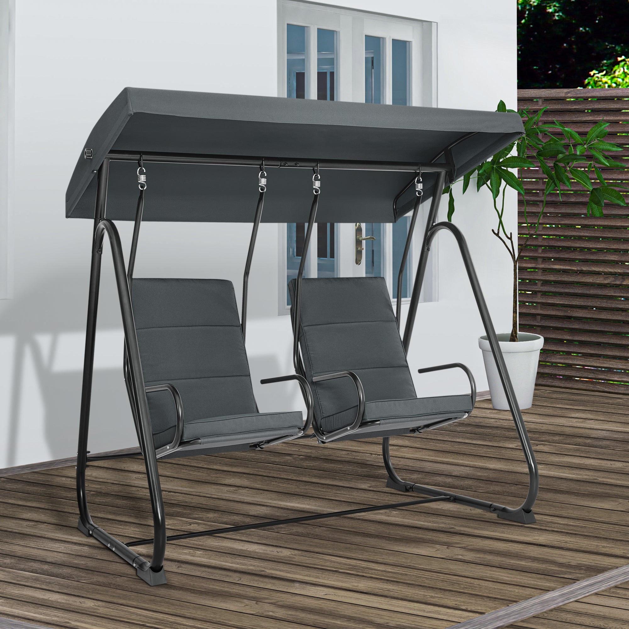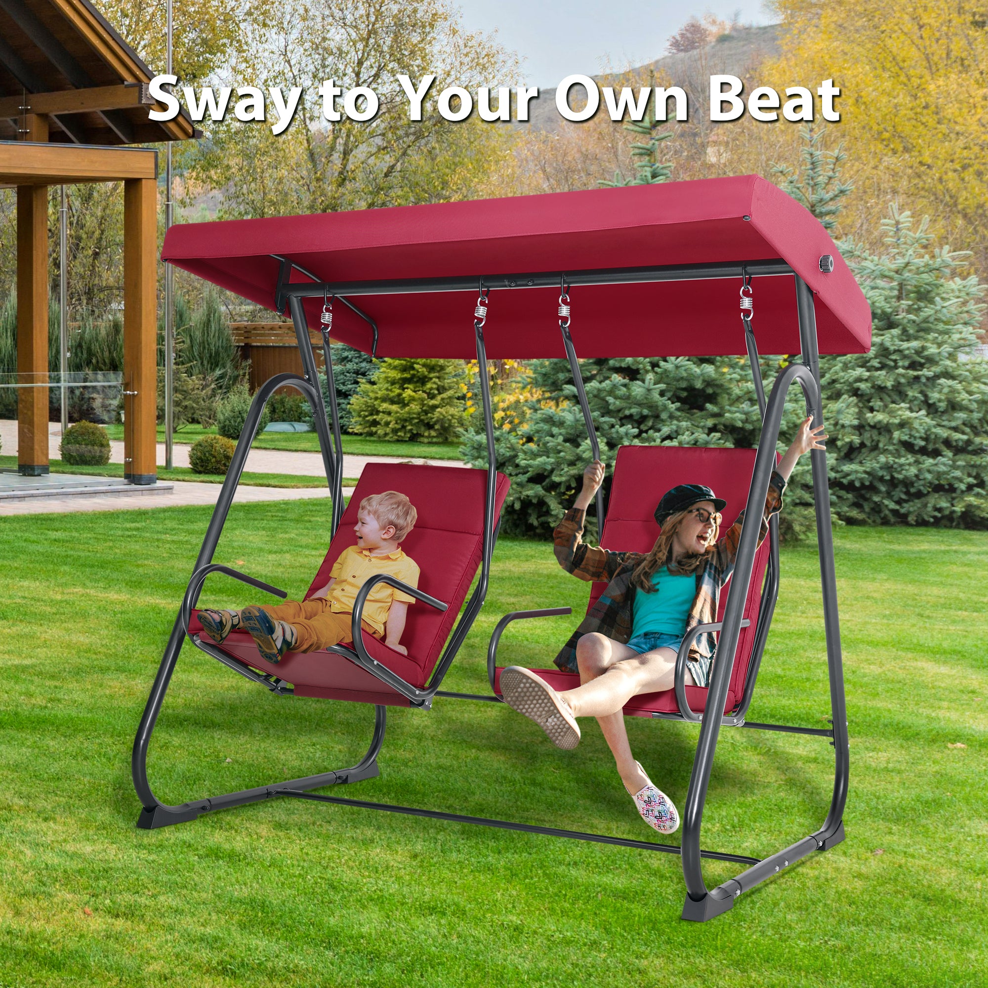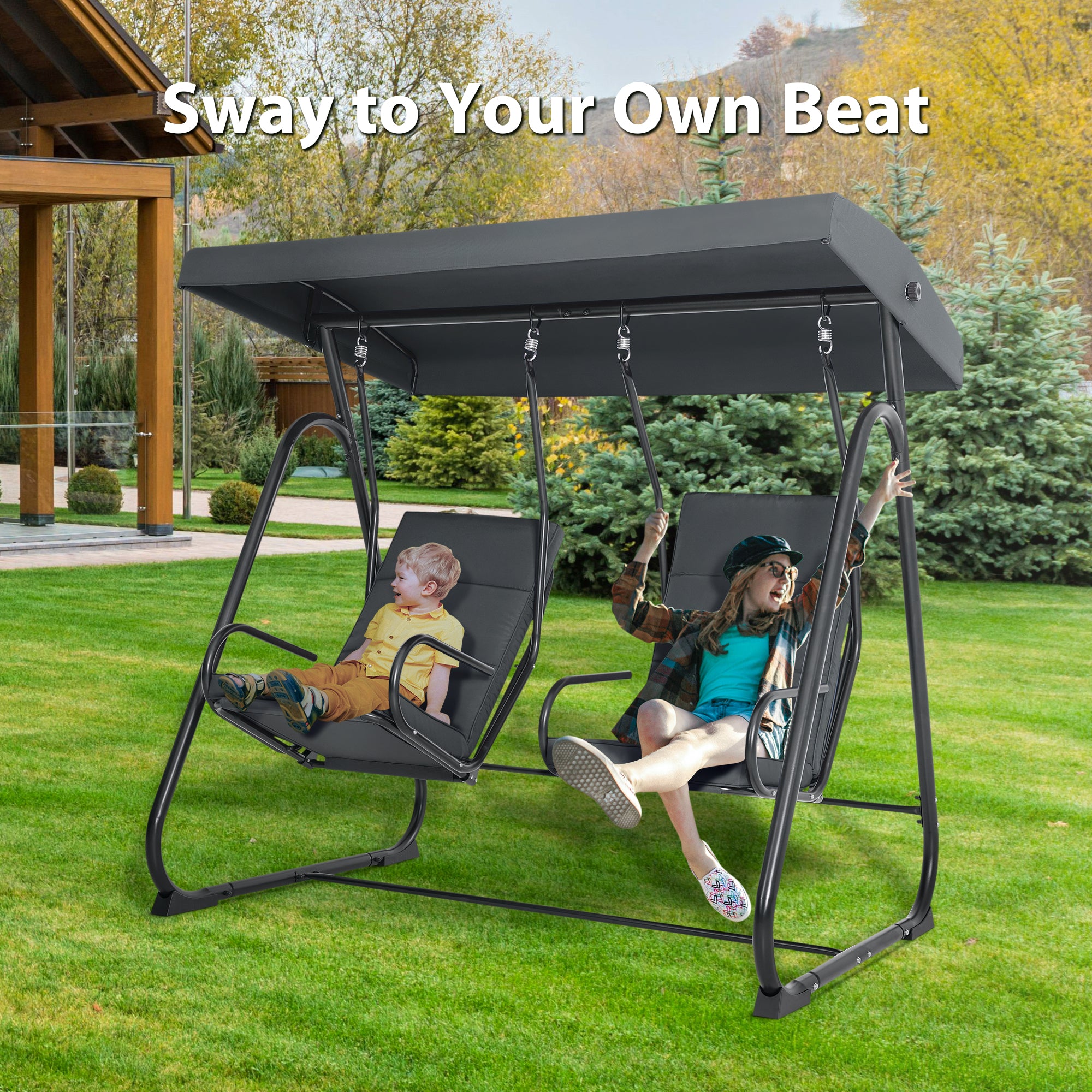- [Independent 2 Person Swing] - This independent 2 person patio swing is like a performance of two dancers, where you can each control the rhythm of the swing, swing in harmony, or dance to your own beat, just like dancing a unique “swing waltz”.