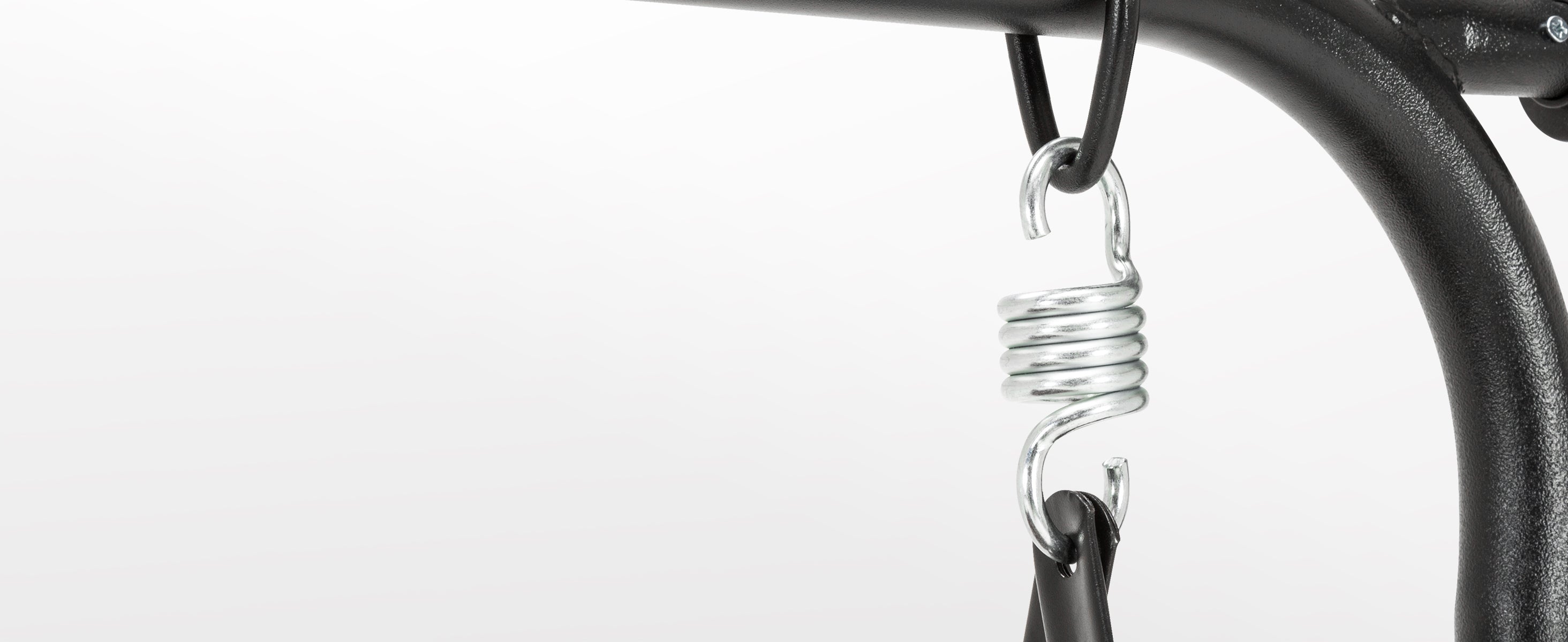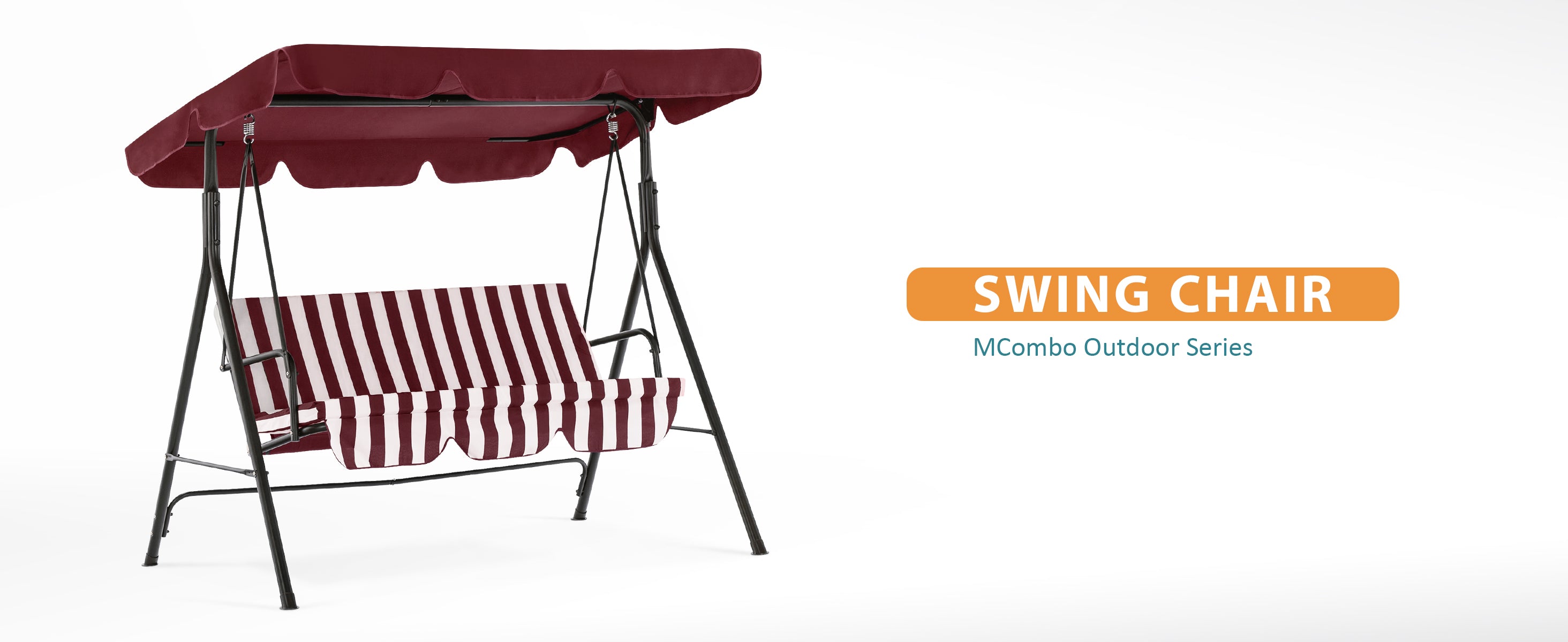 - 【Stable and Durable Structure】Mcombo patio swing has a sturdy triangular frame, made of a sturdy steel frame, which can ensure a strong load-bearing capacity of up to 580 pounds. The upgraded foot and spring hook provide you with stability and safety. The swing can swing smoothly. 4 plastic non-slip mats, safer to use in rainy days, and prevent scratches on the floor.