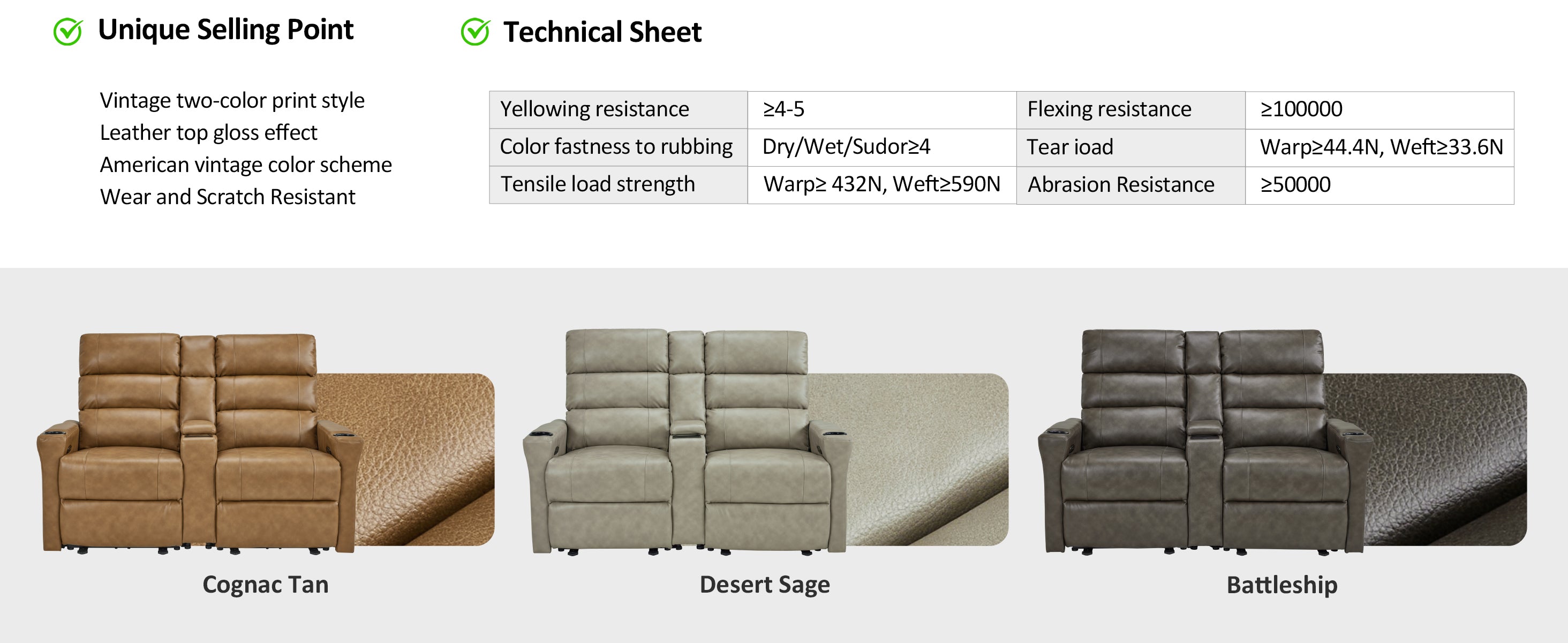 - Americano Faux Leather for RVs: This faux leather masterfully blends a unique vintage aesthetic with exceptional durability. Its are backed by superior resistance to wear, scratches, and abrasion, ensuring the style lasts.