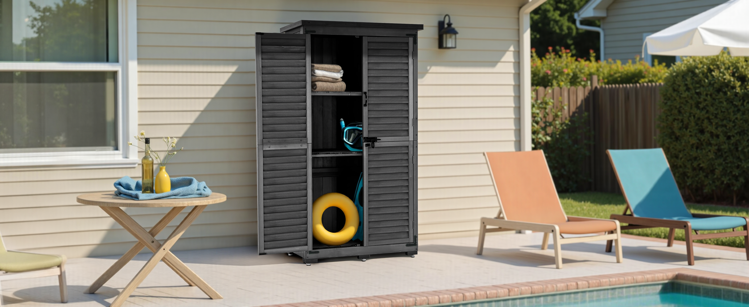 2 Removable Shelves: The shelves of the outdoor storage cabinet can be easily taken out, and 4 different storage spaces are constructed to store your various garden tools, feed, pool chemicals and equipments, etc.
