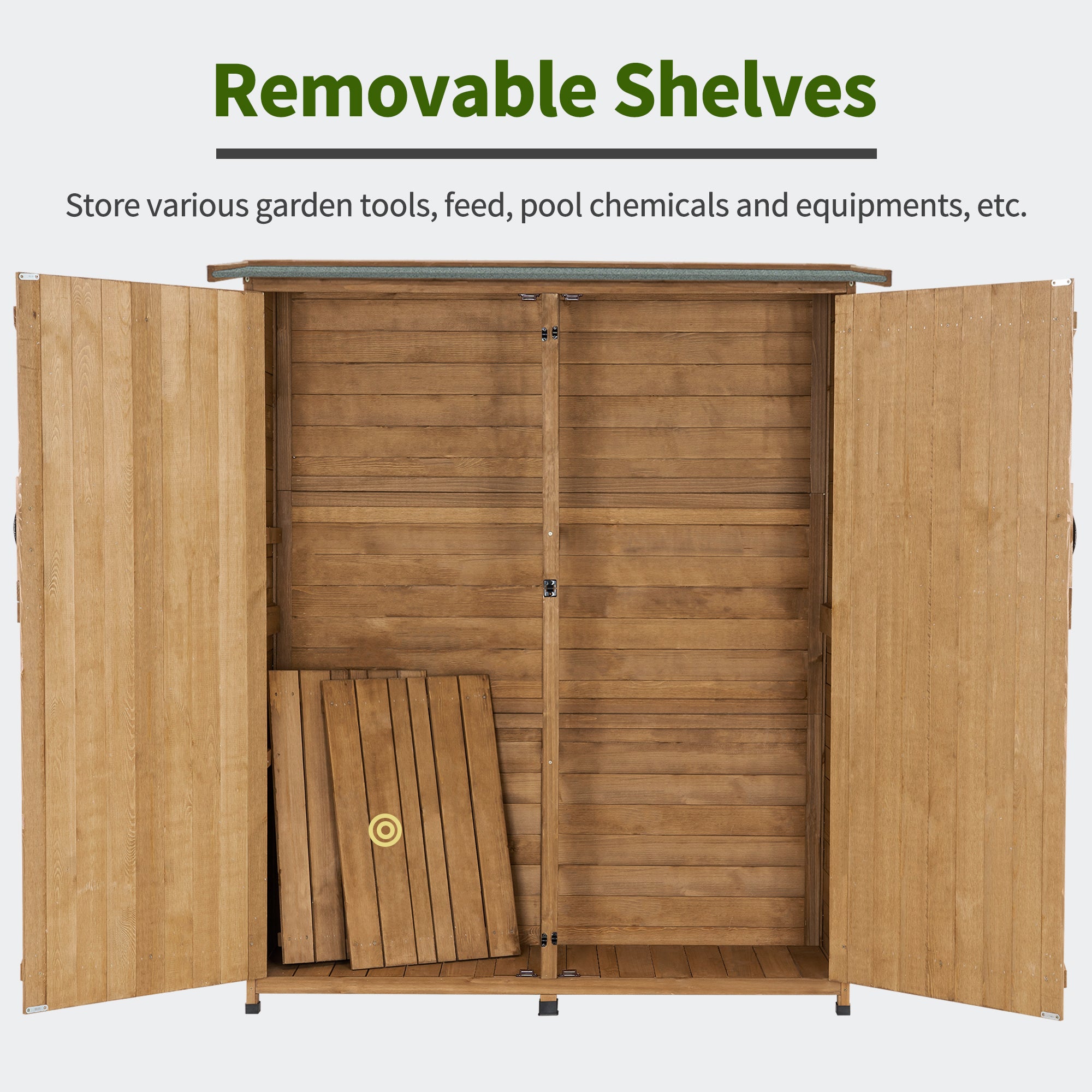 Large Wood Shed: Hide the messy objects, pool equipment&chemicals and most garden tools, etc. The wood shed's size is the perfect addition to your garden, patio, deck, porch.(Dimension: 55.1"x19.7"x63.8")