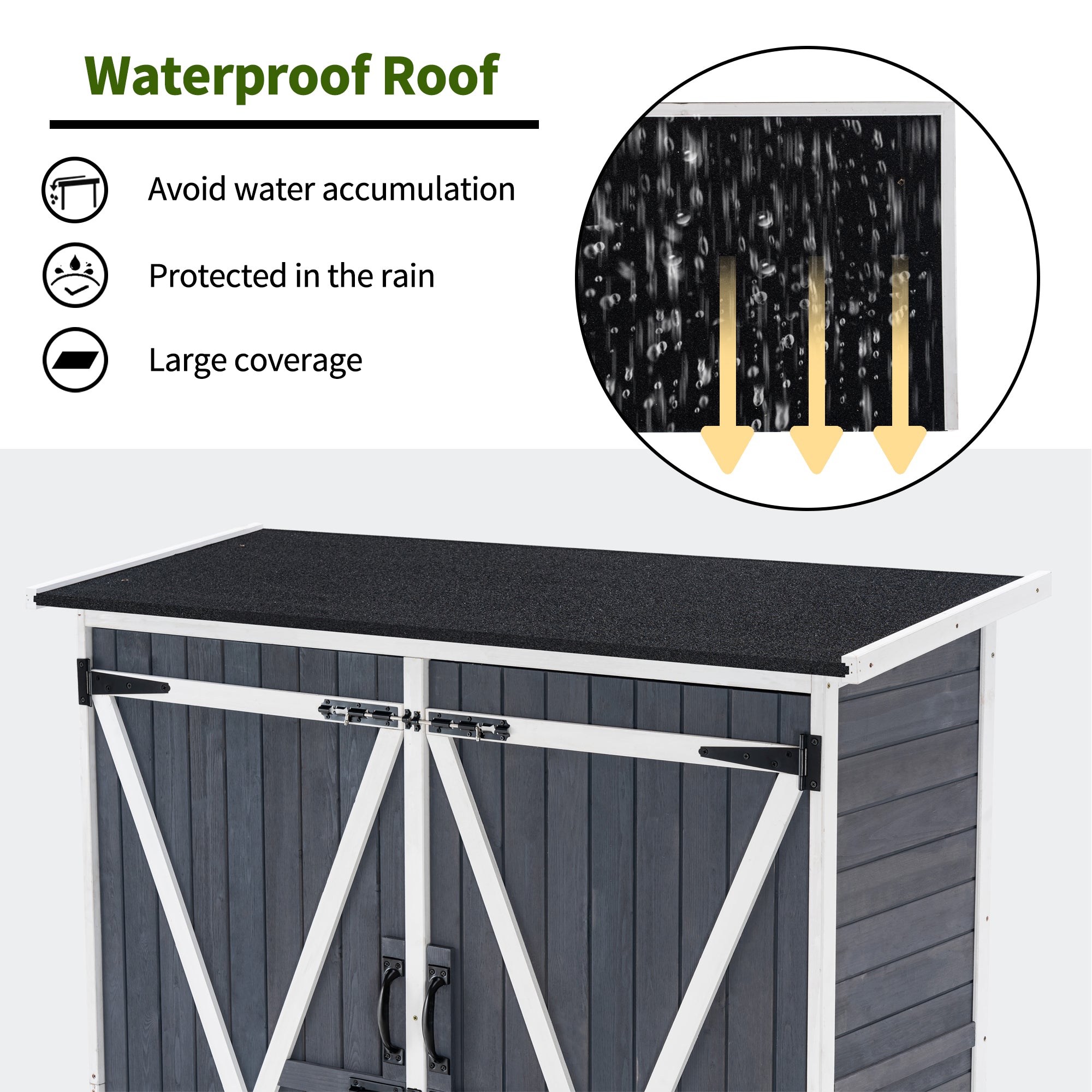 Waterproof Roof: The sloping asphalt roof is not only waterproof but also avoids water accumulation, making the garden tool storage shed longer service life outdoors.