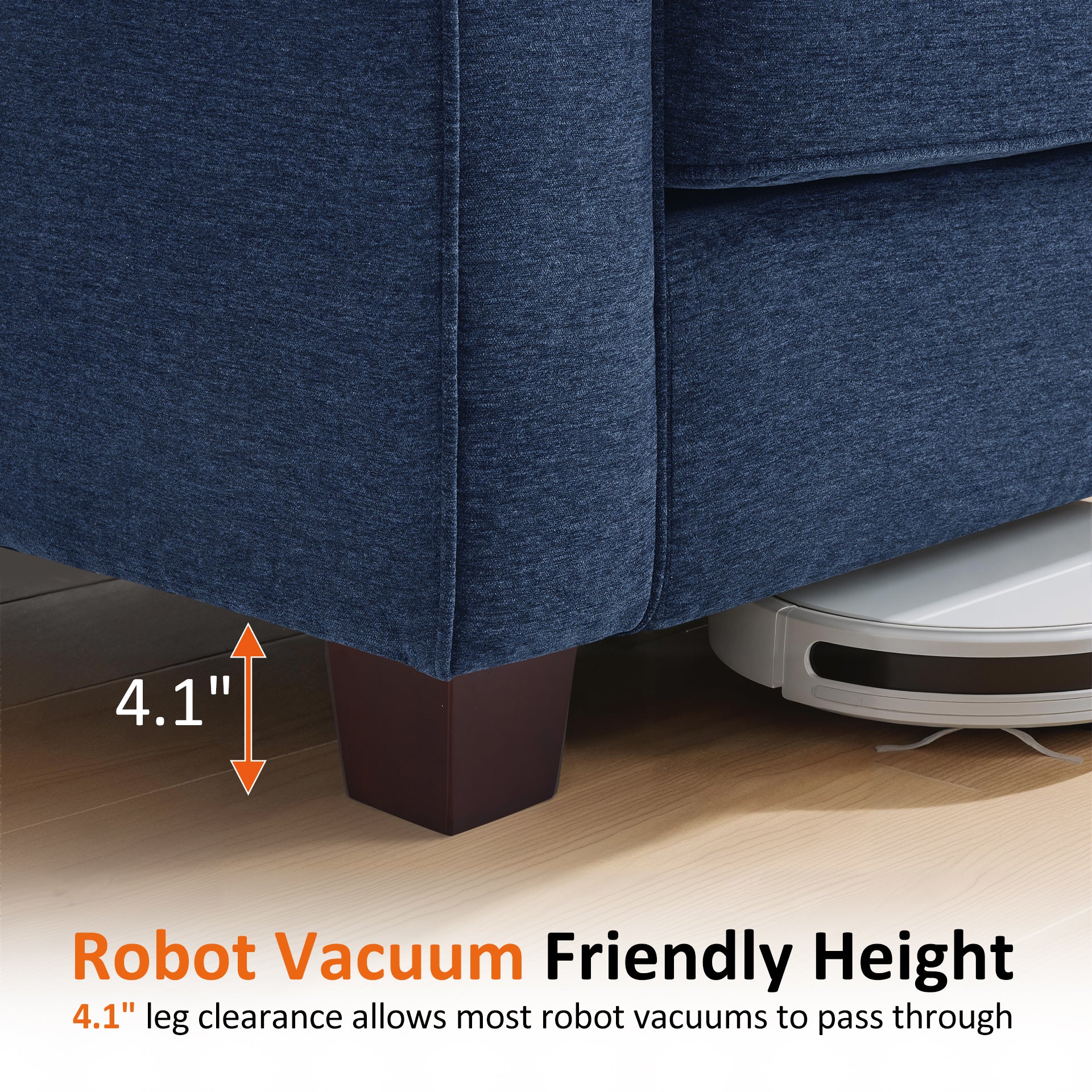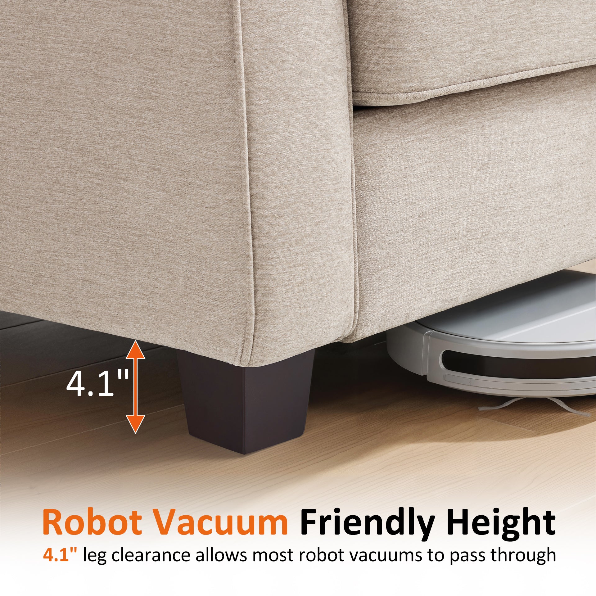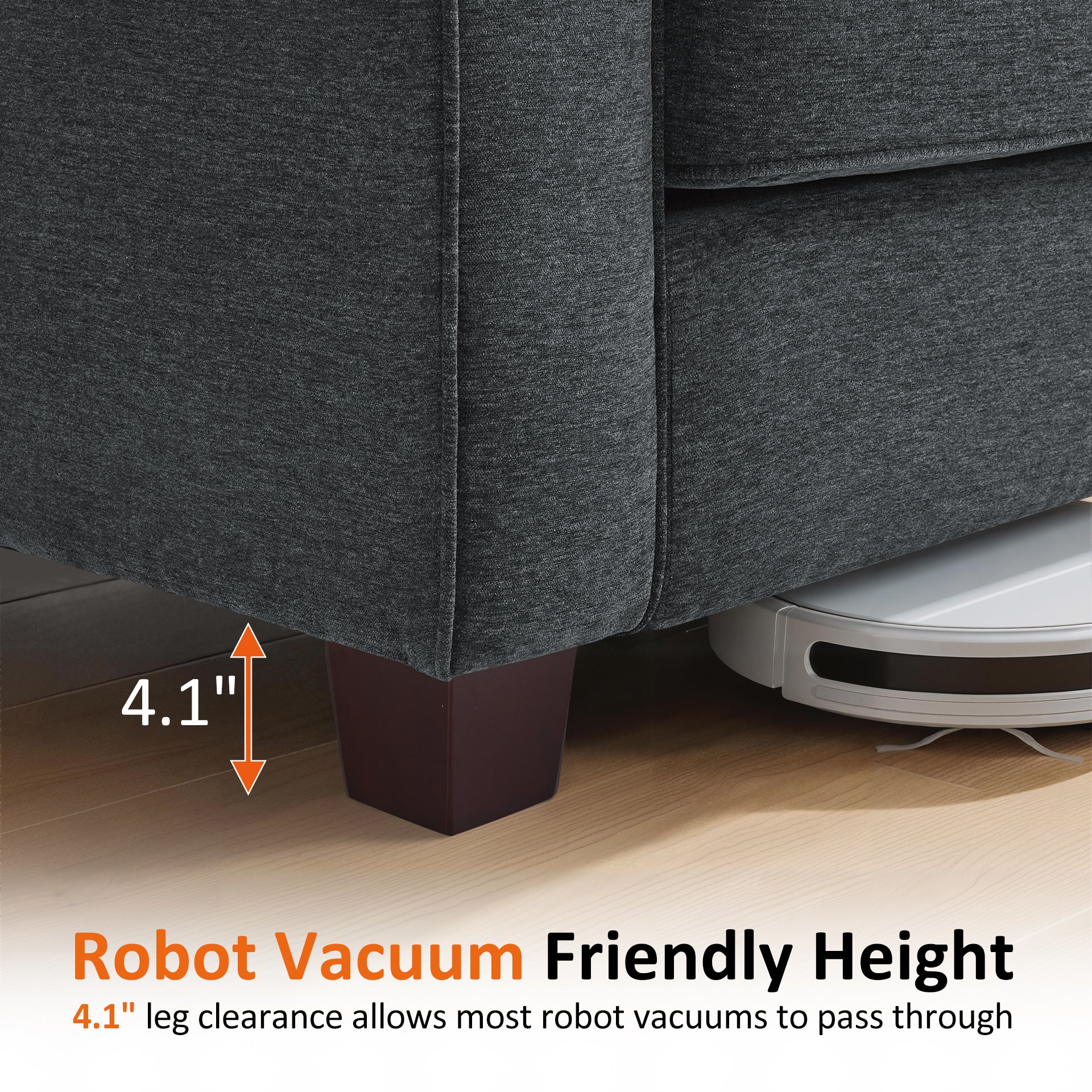 - Sturdy Construction: Each seat supports up to 350 lbs (700 lbs total). The 4.1" solid wood legs allow most robot vacuums to pass underneath, while an additional center support leg enhances overall stability and weight distribution