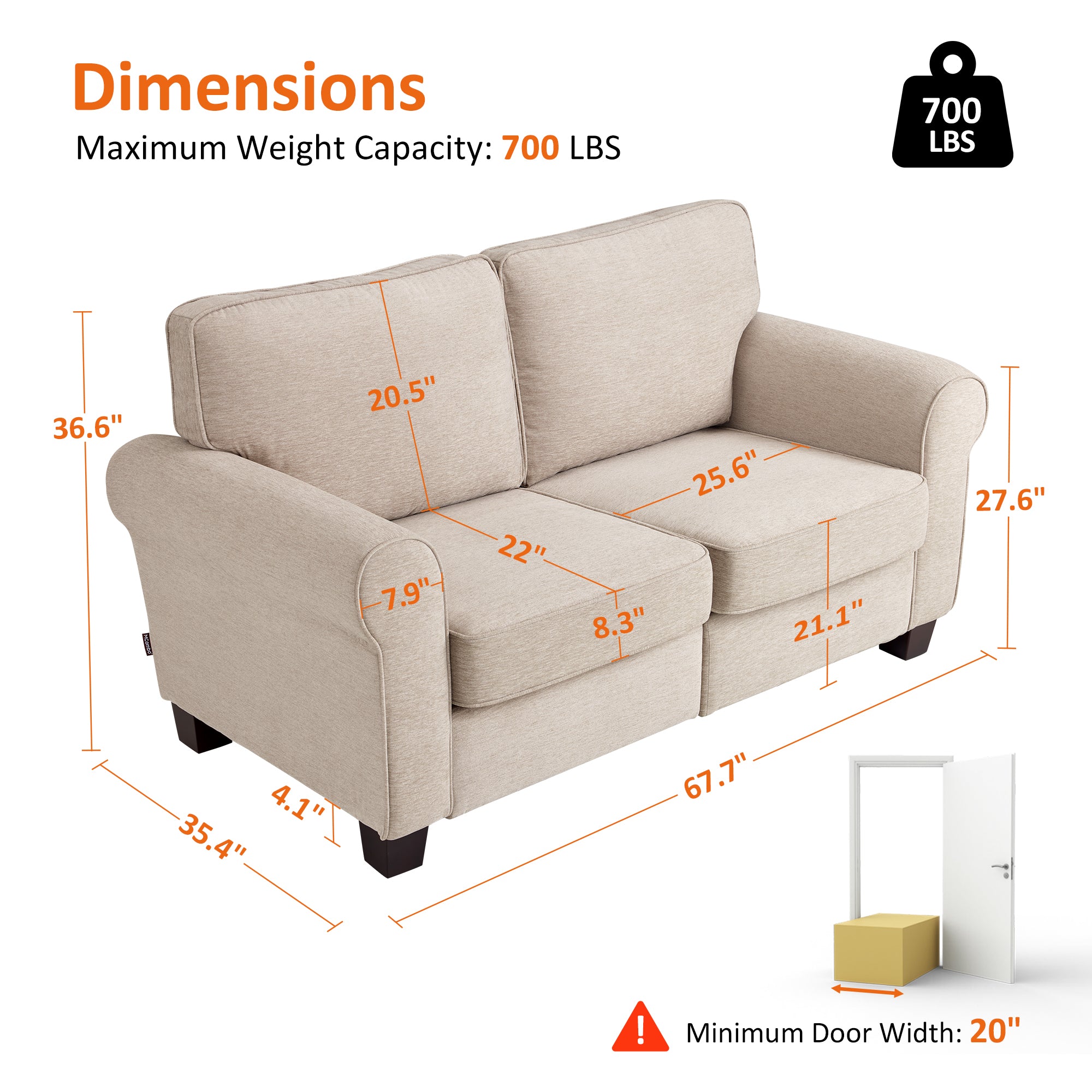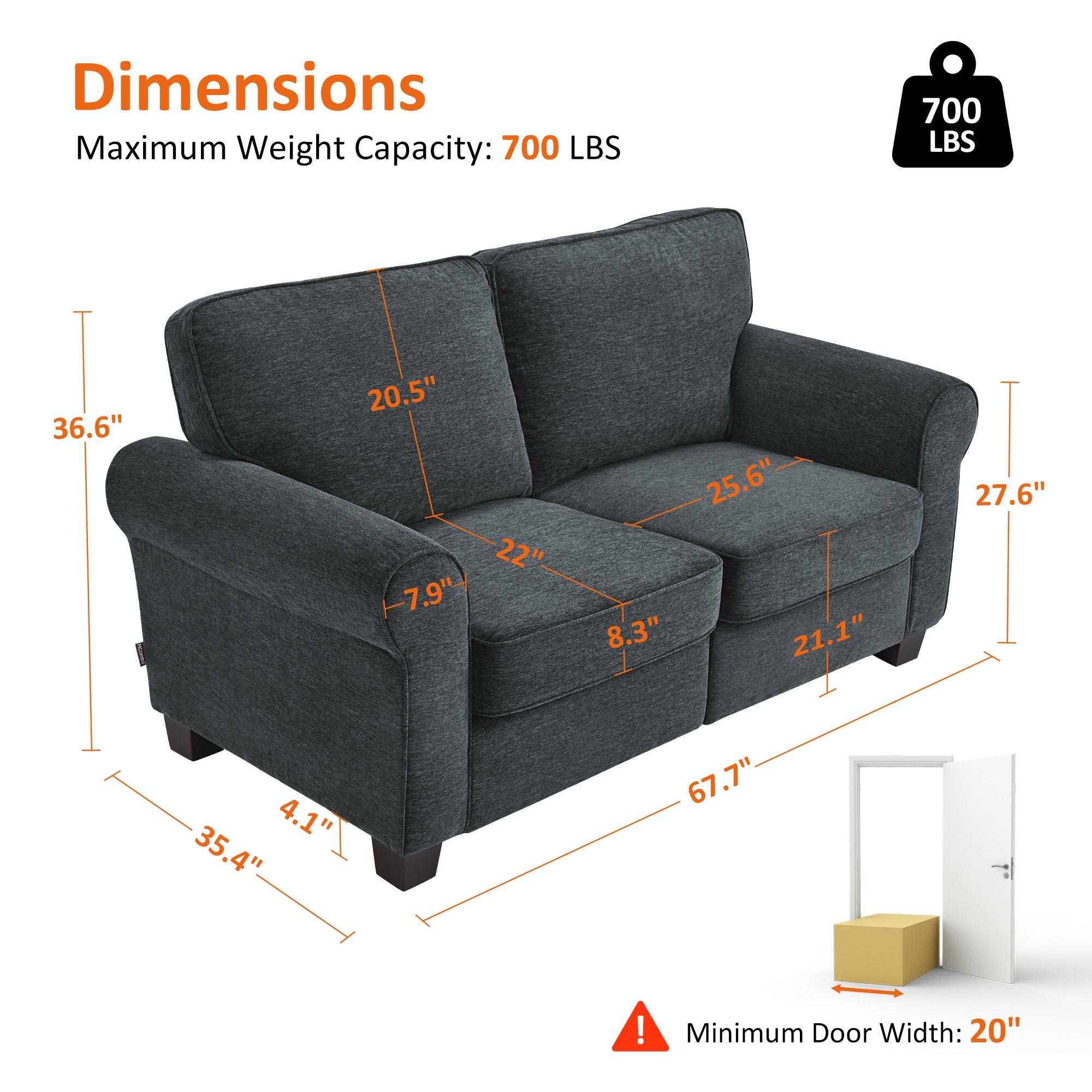 - Compact Loveseat for Small Spaces: With an overall size of 67.7"W x 35.4"D x 36.6"H, this loveseat is well suited for small apartments, living rooms, bedrooms, and offices. It offers comfortable seating without overwhelming the room, making it an ideal small couch for small spaces