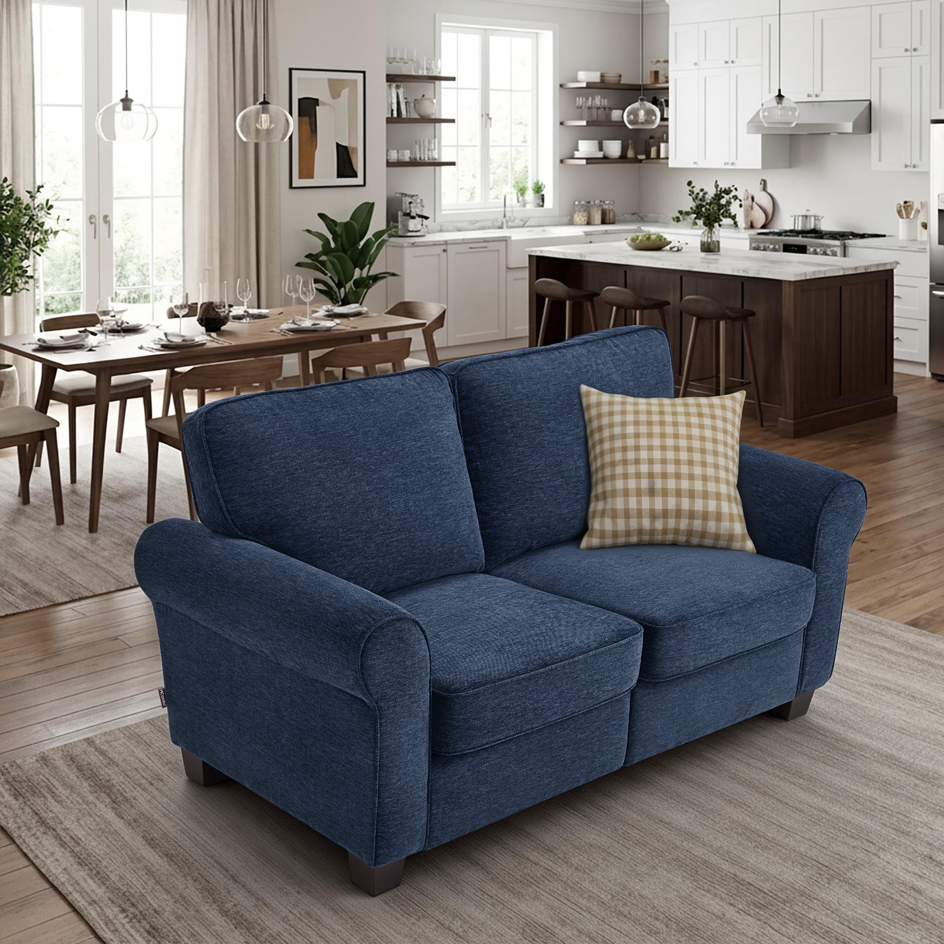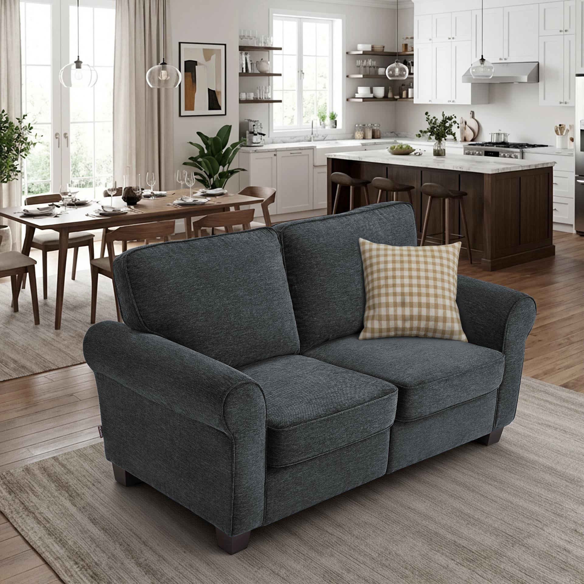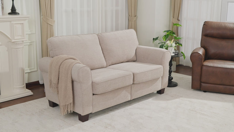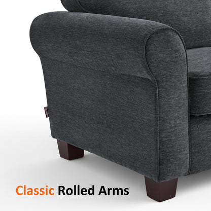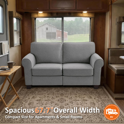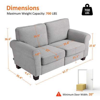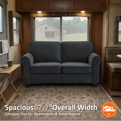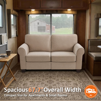 MCombo 67.7" Loveseat Sofa, 2-Seater Small Couch for Small Spaces, Classic Rolled Arm Upholstered Sofa with Solid Wood Legs for Living Room, Removable Cover, Chenille Fabric VE730