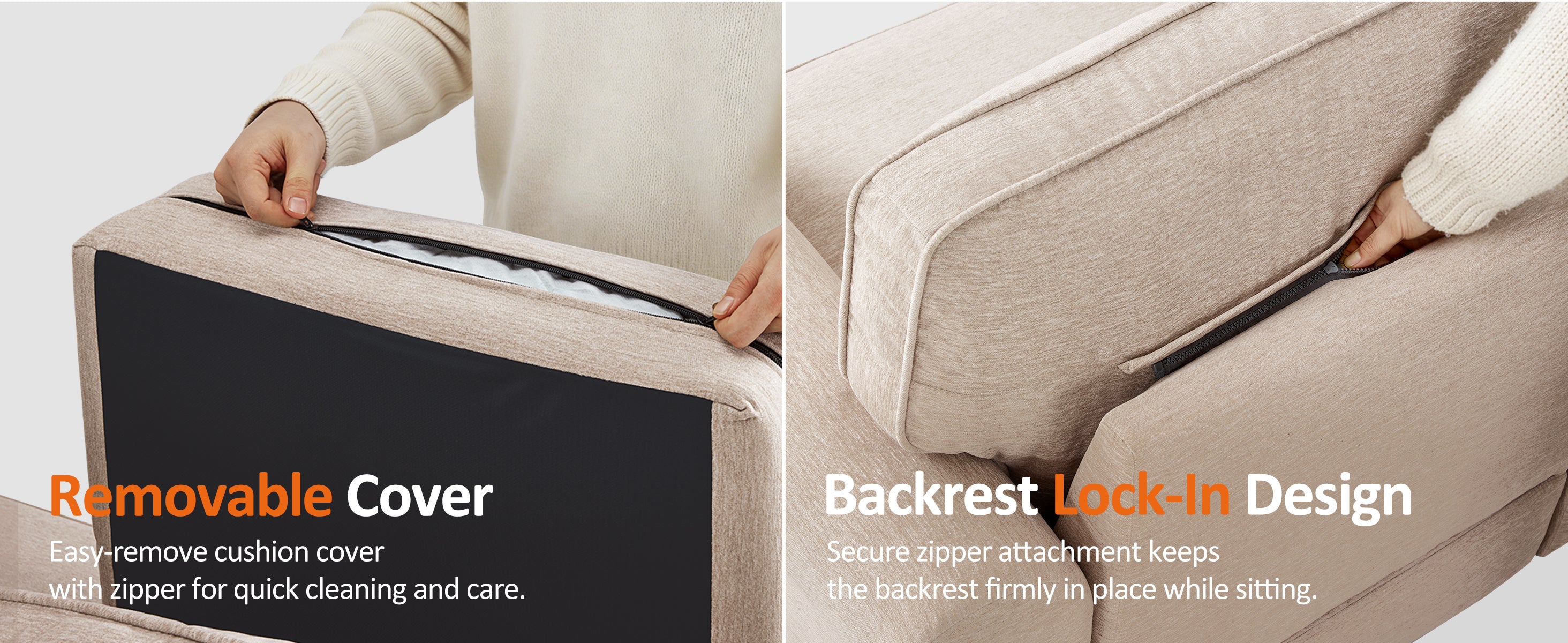 - Thoughtful Details: Cushion covers are removable for easy care and are recommended to be spot cleaned with a damp cloth or professionally dry cleaned. The back cushions are zip-secured to the back panel, helping keep them neatly in place