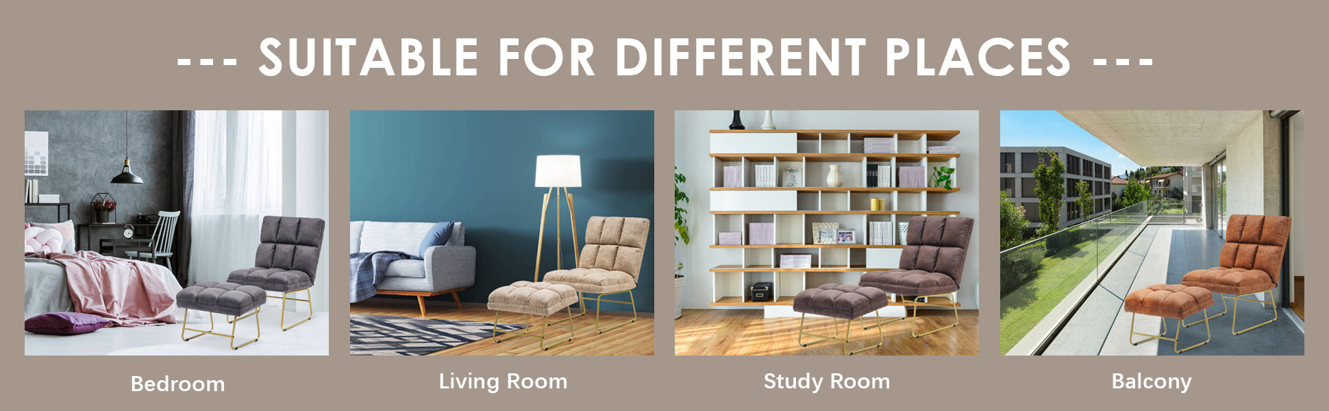- [Ottoman Providing Double Comfort] This Accent Chair comes with an additional ottoman that is stable to hold your legs and could be placed on the chair when not in use. What’s more, it designed in a unique appearance that the tilted surface could fit legs better and give more cozy support for you.