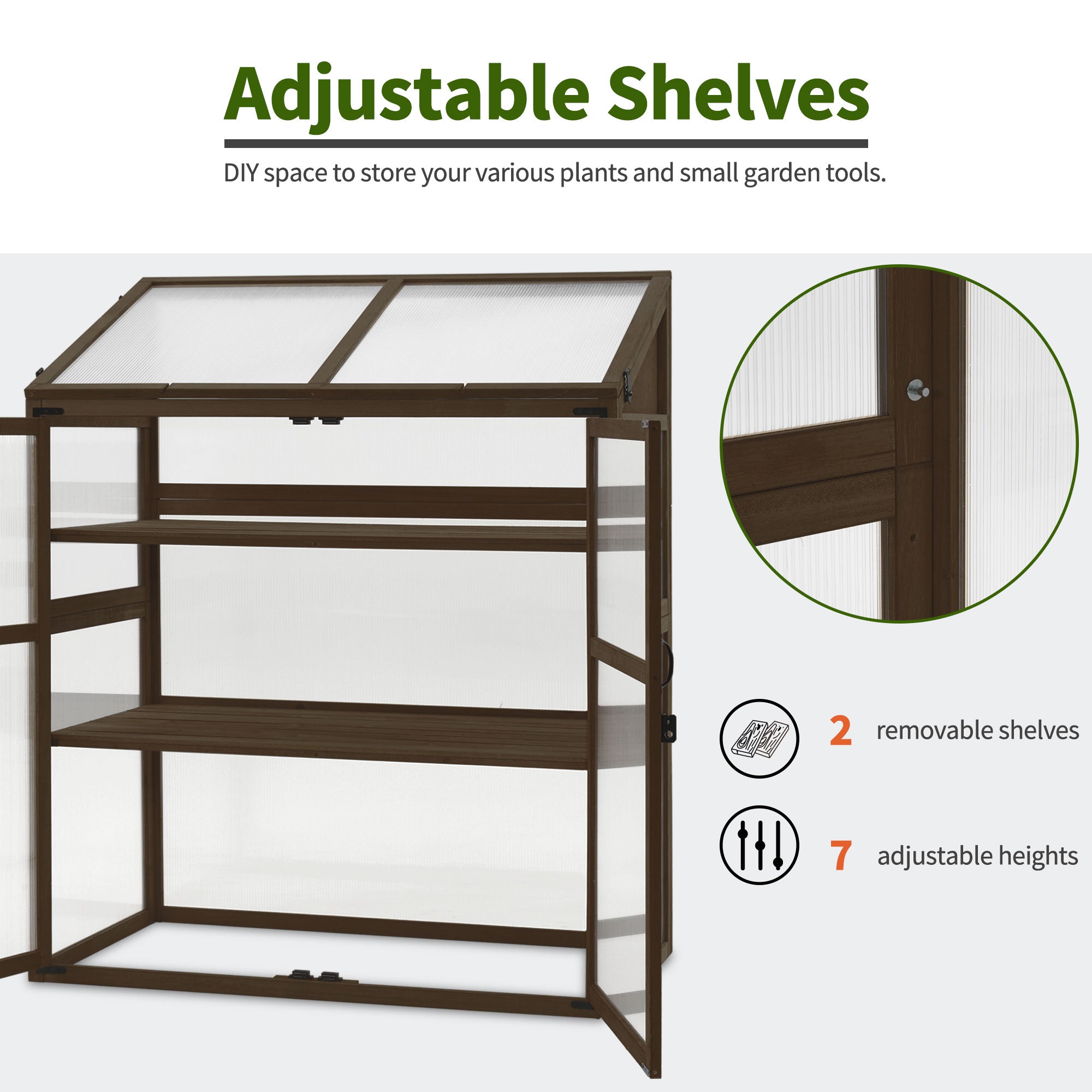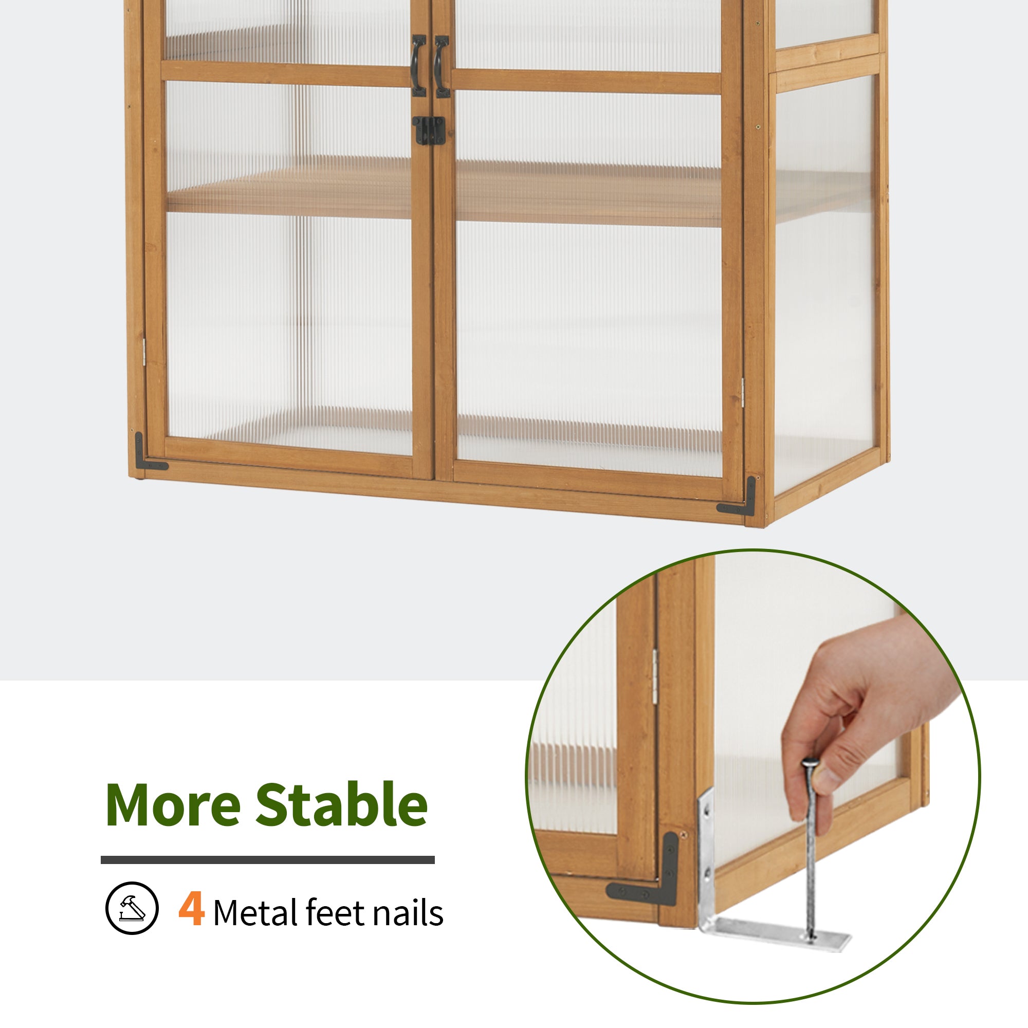 - Fir Wood: The wooden greenhouse is made of high-quality pure fir wood, and the exterior has been polished to express a rustic style. Medium brown blends easily with other décor and natural settings.