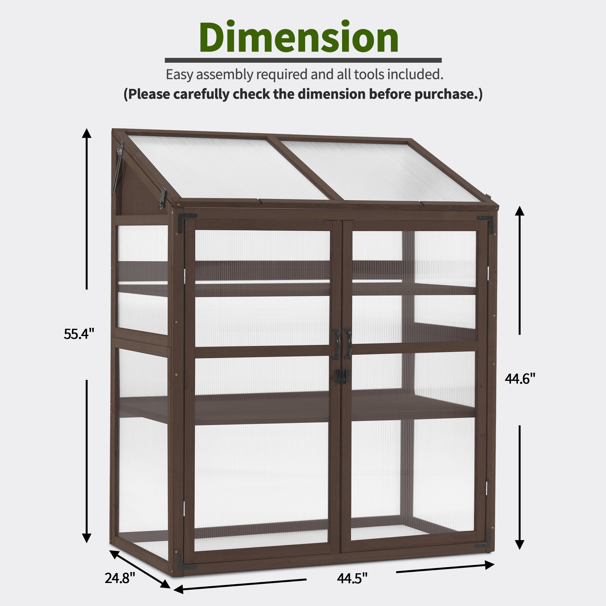 - Large Cold Frame: This greenhouse has a large size to provide enough space to organize your plants and small planting tools. (Overall Dimension: 44.5" x 24.8" x 55.4")