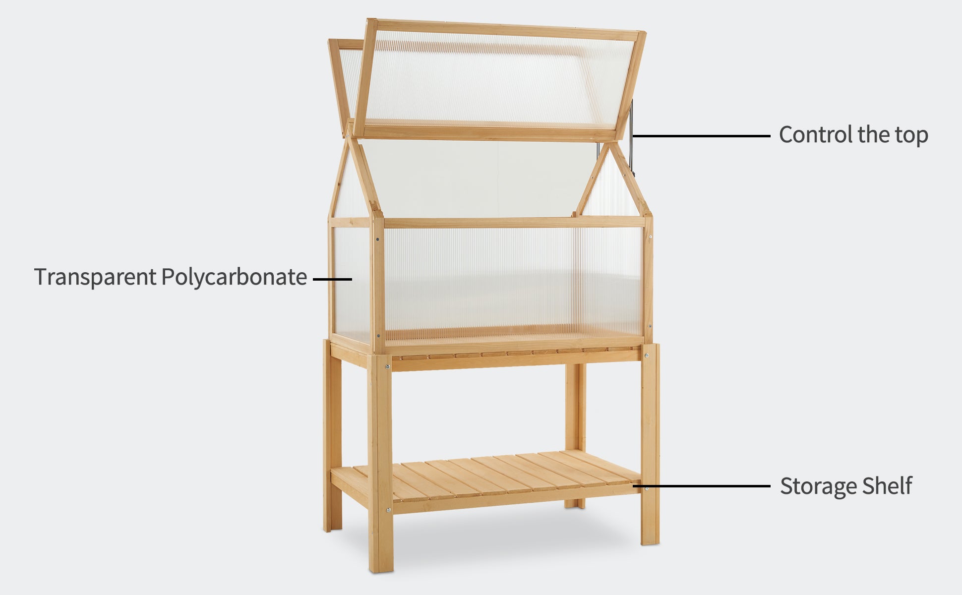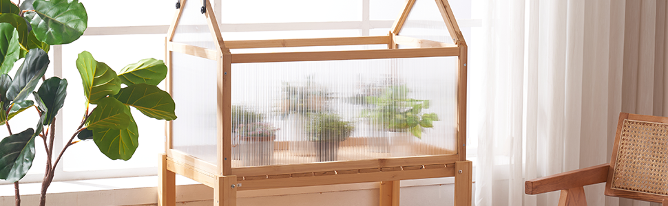 - Fir Wood: The garden cold frame is made of high-quality pure fir wood, and the exterior has been polished to express a rustic style. Natural color blends easily with other décor and natural settings