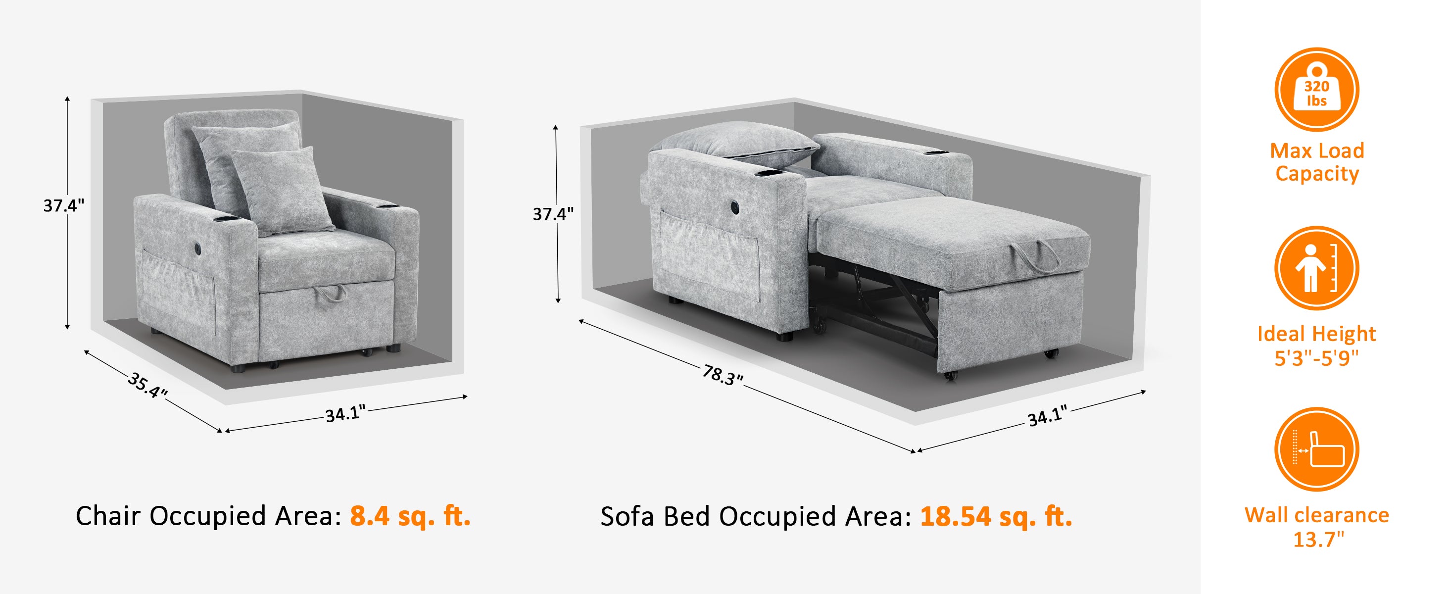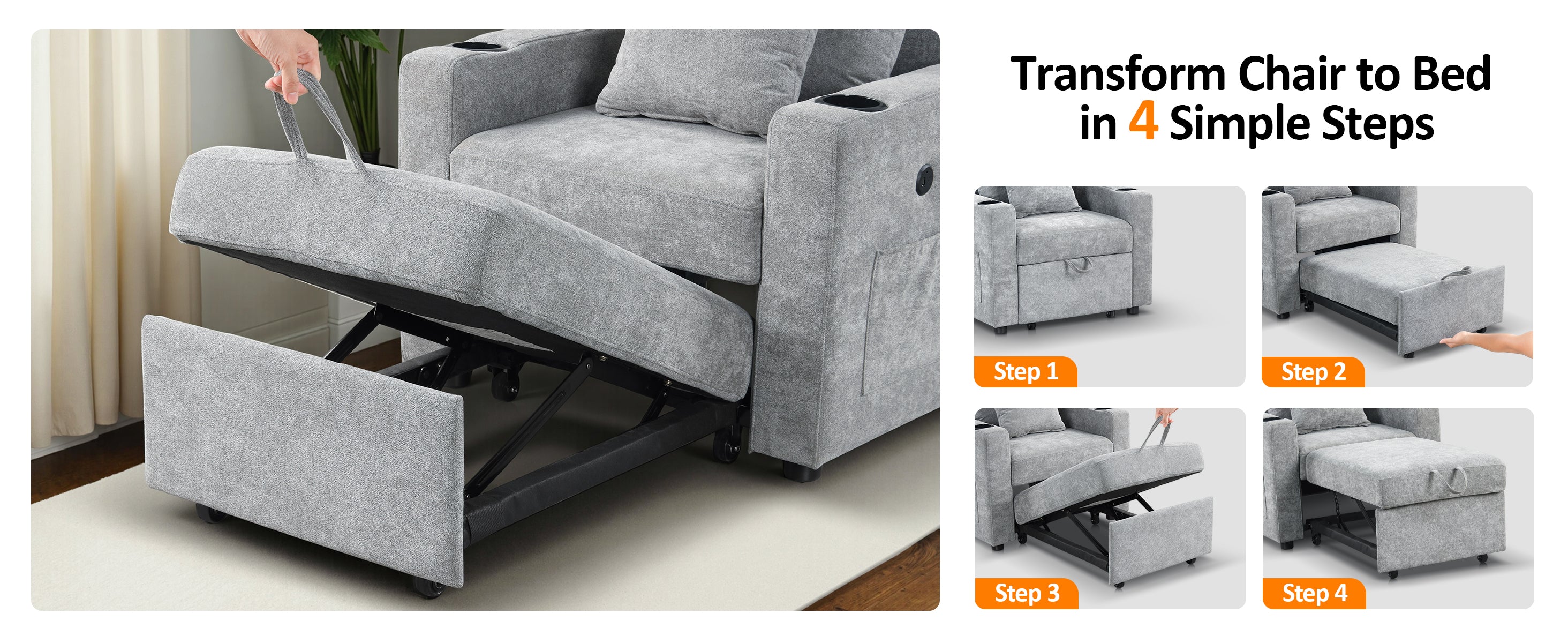 3-in-1 Versatility for Any Space: Use it as a chair, lounger, or a single sleeper bed. The space-saving design maximizes comfort and functionality. Perfect for small apartments, guest rooms, or dorms. Easily converts in seconds to meet your daily or overnight needs