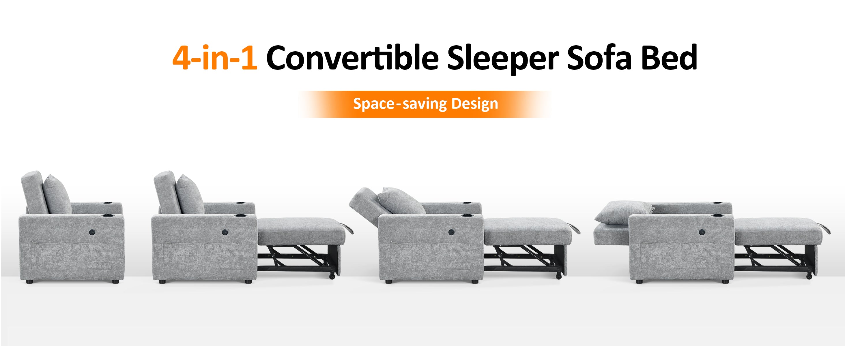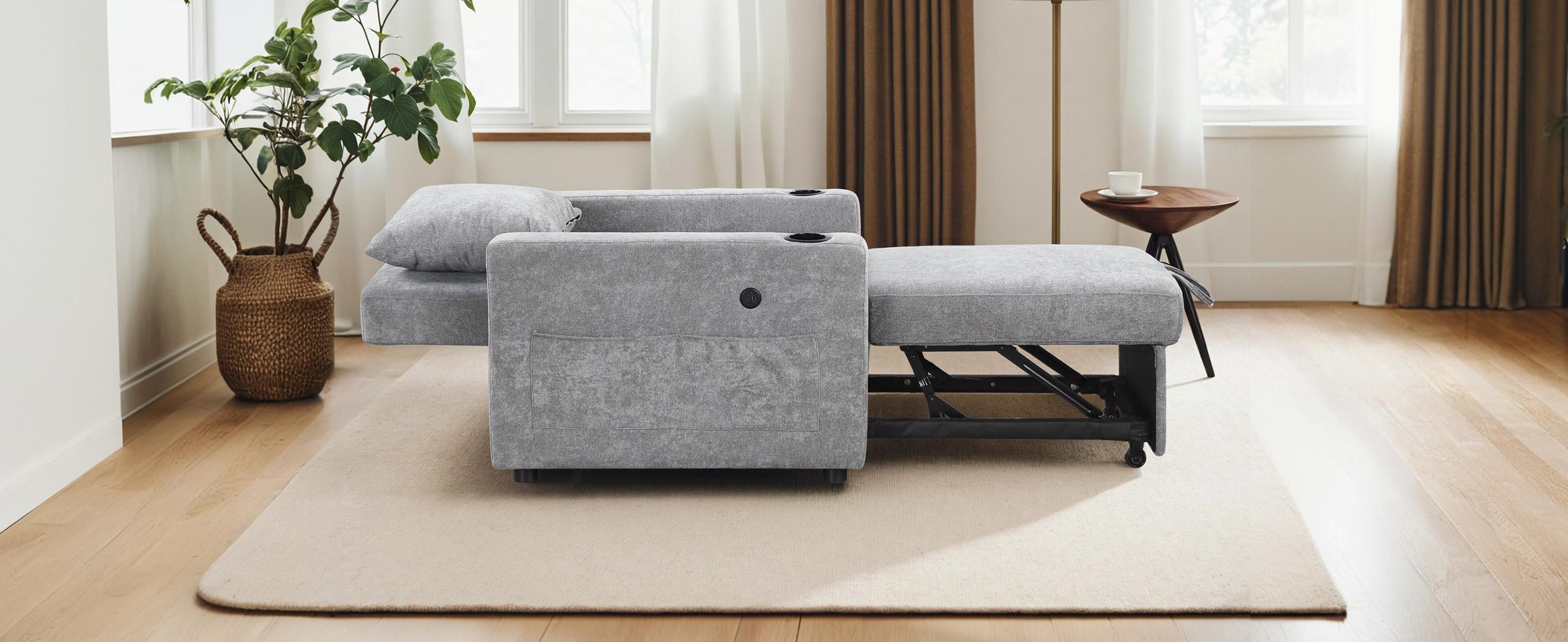 MCombo Convertible Sleeper Chair Bed, 3-in-1 Folding Sofa Chair with Adjustable Backrest, Pull-Out Bed with USB Port, Cup Holders, Linen Fabric, for Small Spaces Living Room Guest Room Office VN6001
