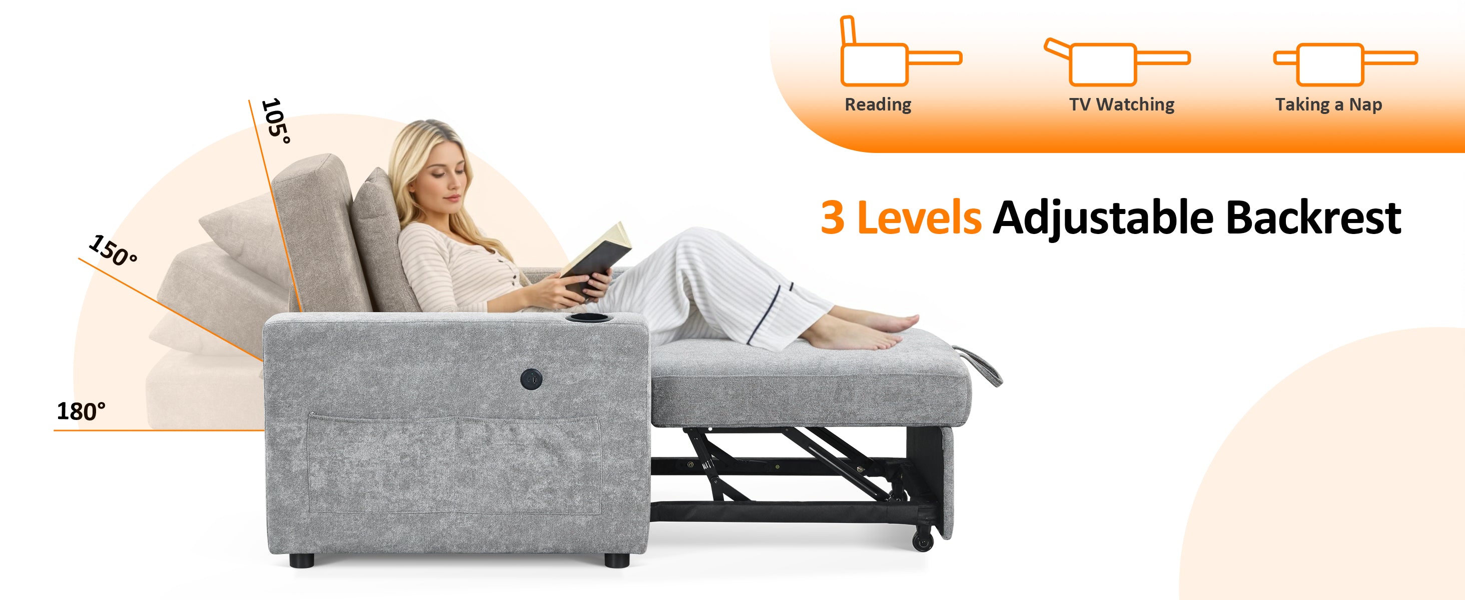 Adjustable Backrest for Personalized Comfort: Find your ideal lounging angle with a 3-level adjustable backrest. Customize your comfort with 110°, 140°, and 180° recline positions for reading, watching TV, or sleeping