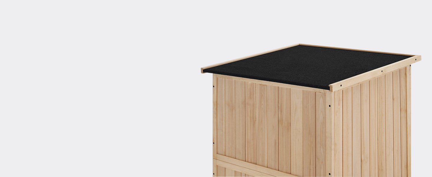 - Waterproof Roof: The lean to roof is covered with asphalt, it's not only waterproof but also void water accumulation, making the outside storage shed upright longer service life outdoors.