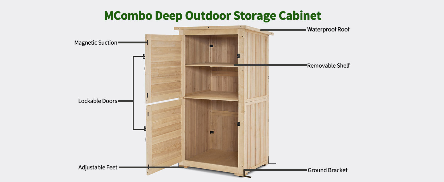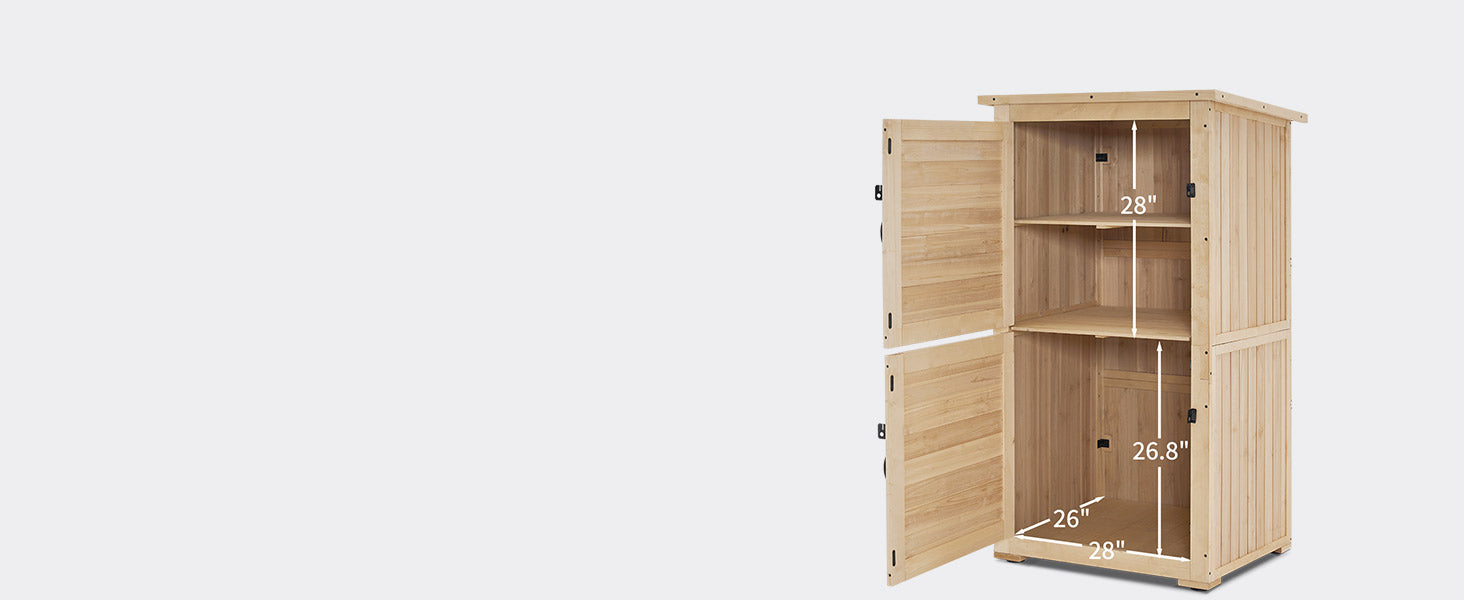 - Fir Solid Wood: The vertical outdoor storage cabinet is made of high-quality pure fir wood, and the exterior has been polished to express a rustic style. Natural Color blends easily with other décor and natural settings.