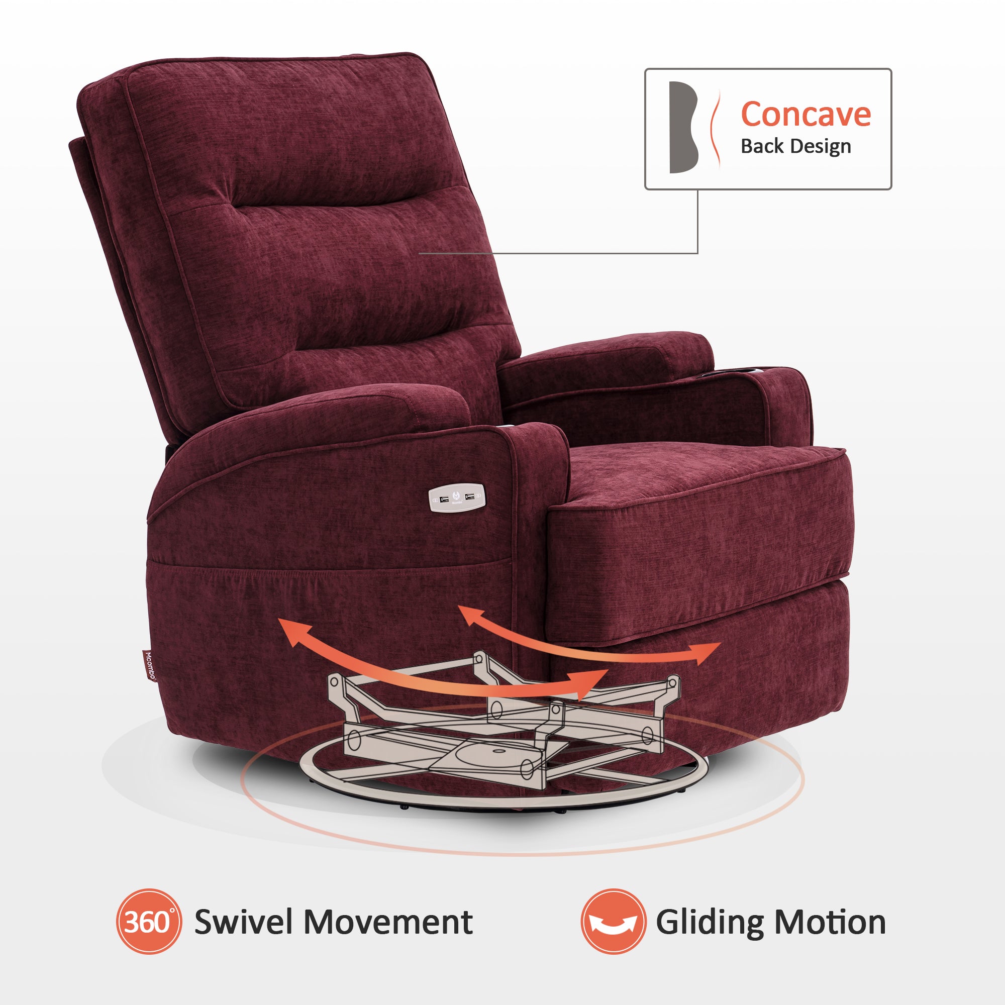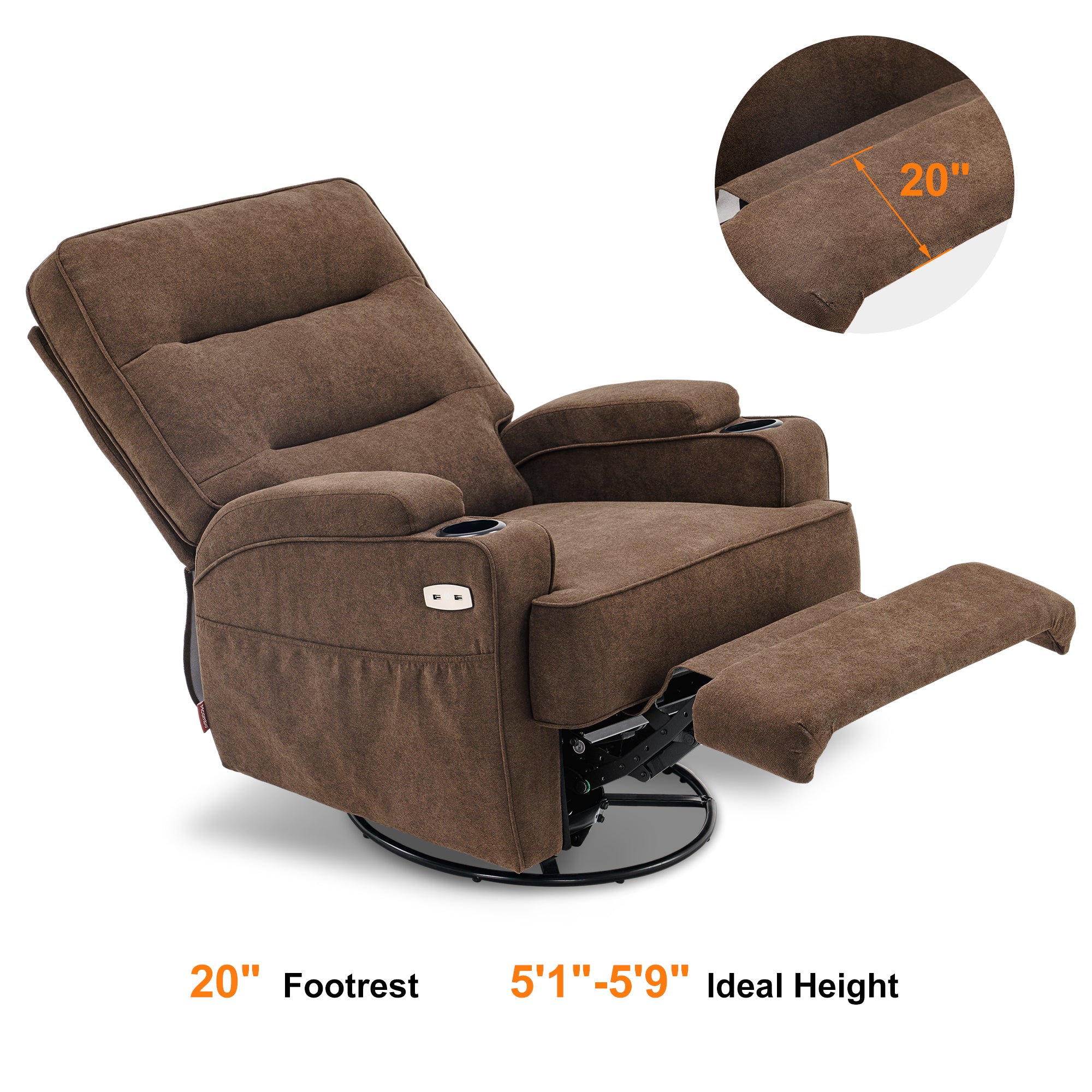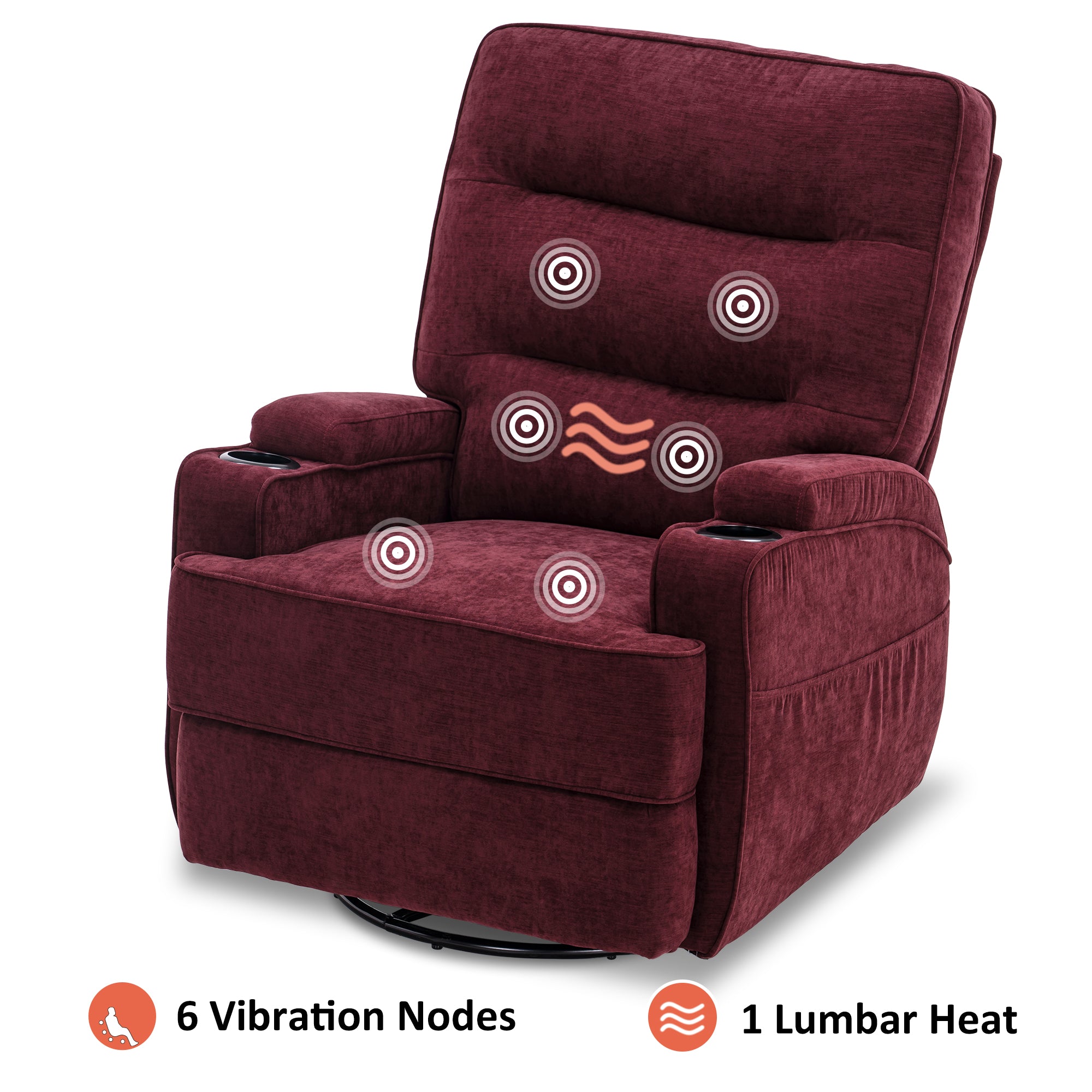 Power Recliner Chair with Massage and Heat, Swivel Glider Rocker, Fabric 7752