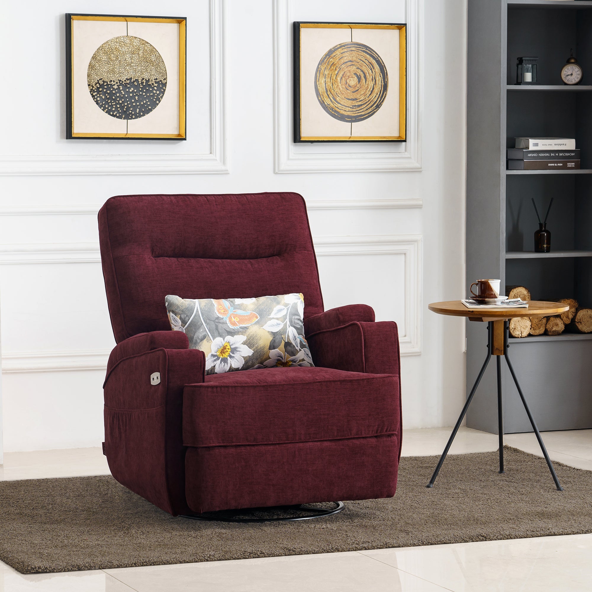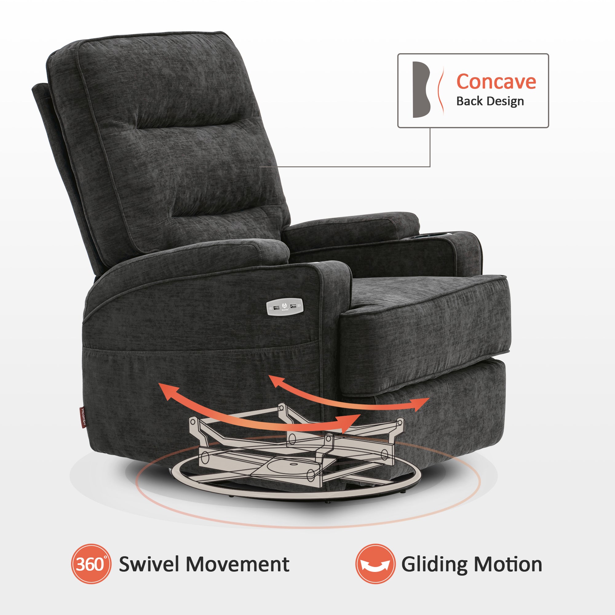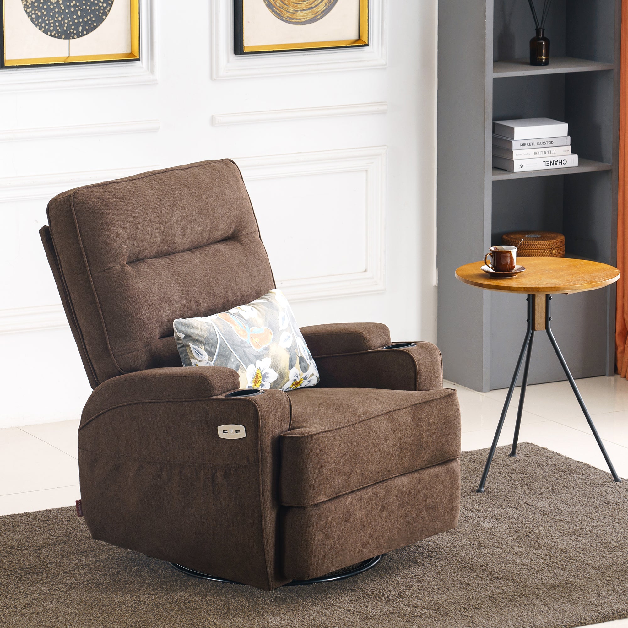 Power Recliner Chair with Massage and Heat, Swivel Glider Rocker, Fabric 7752