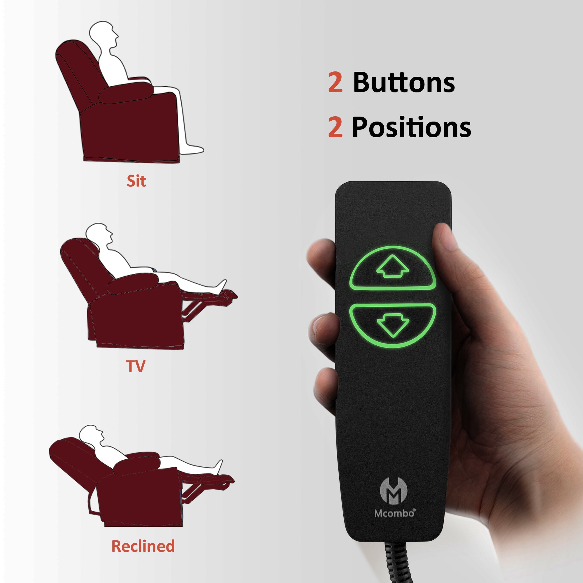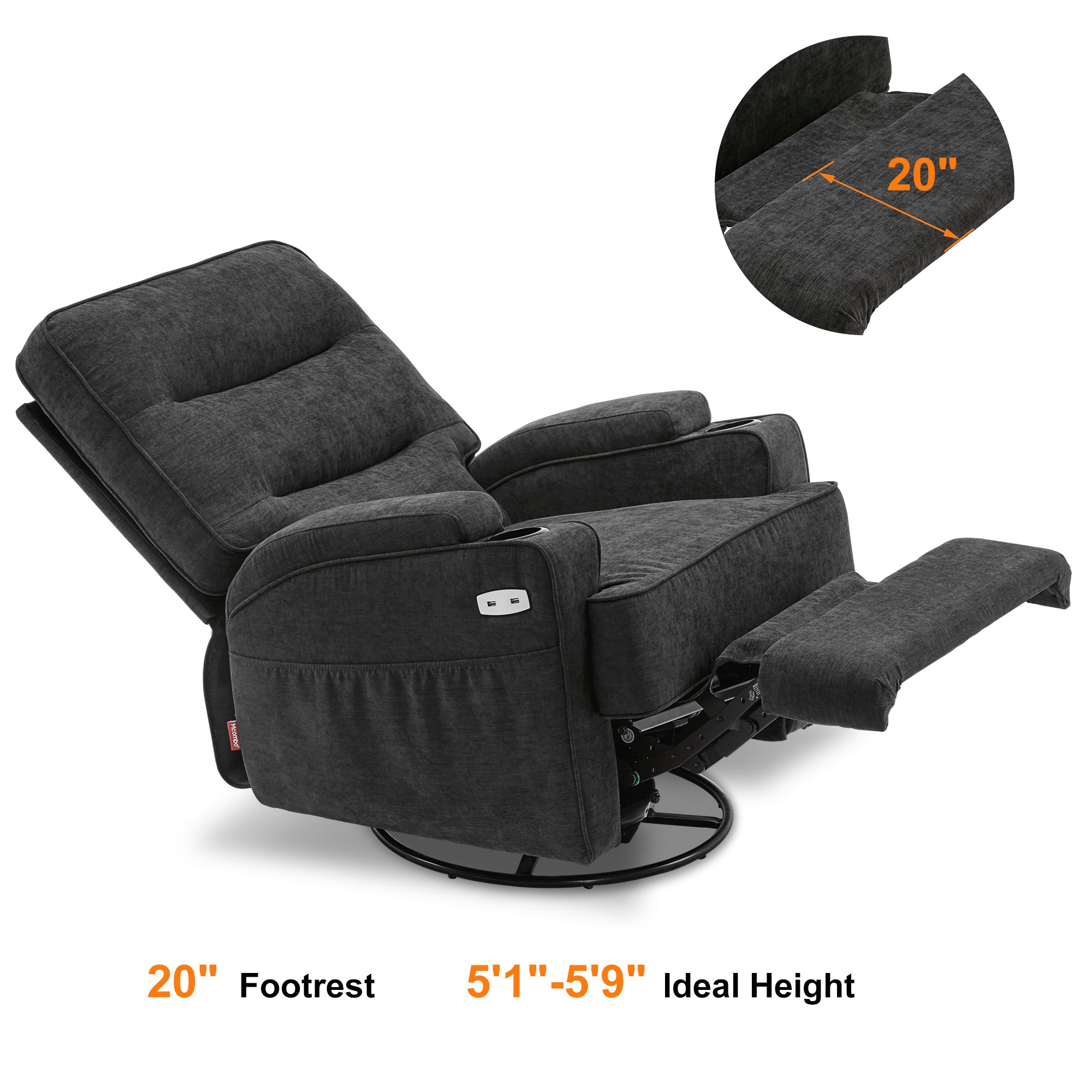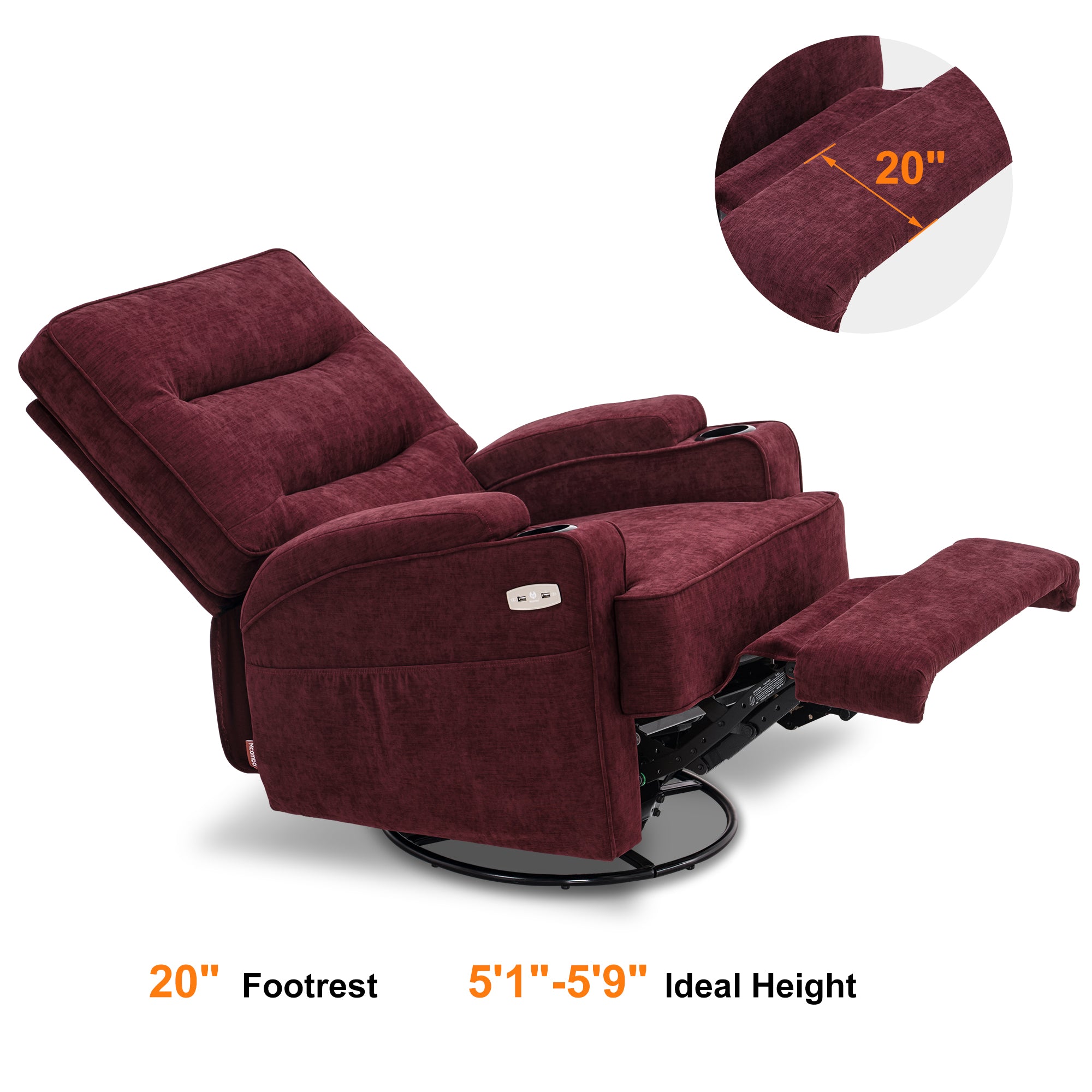 - Adjust recliner backrest and footrest to find relaxation position