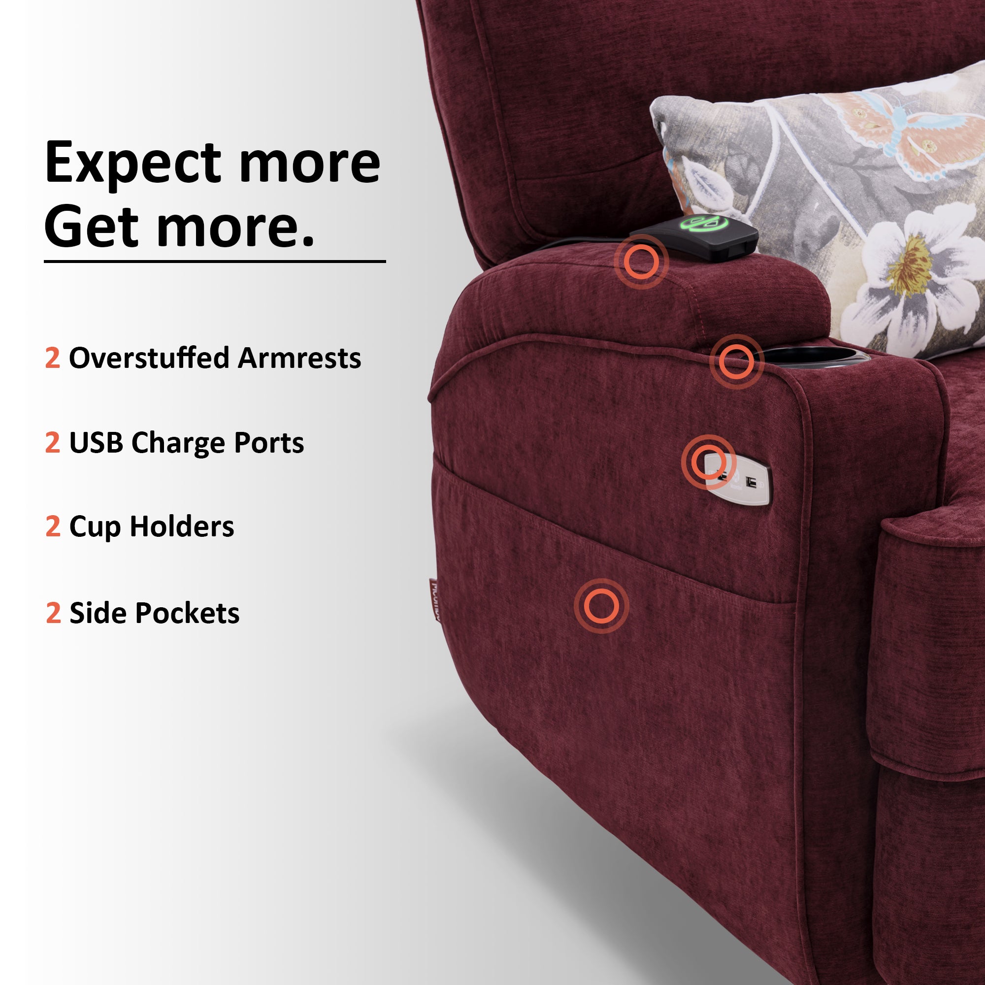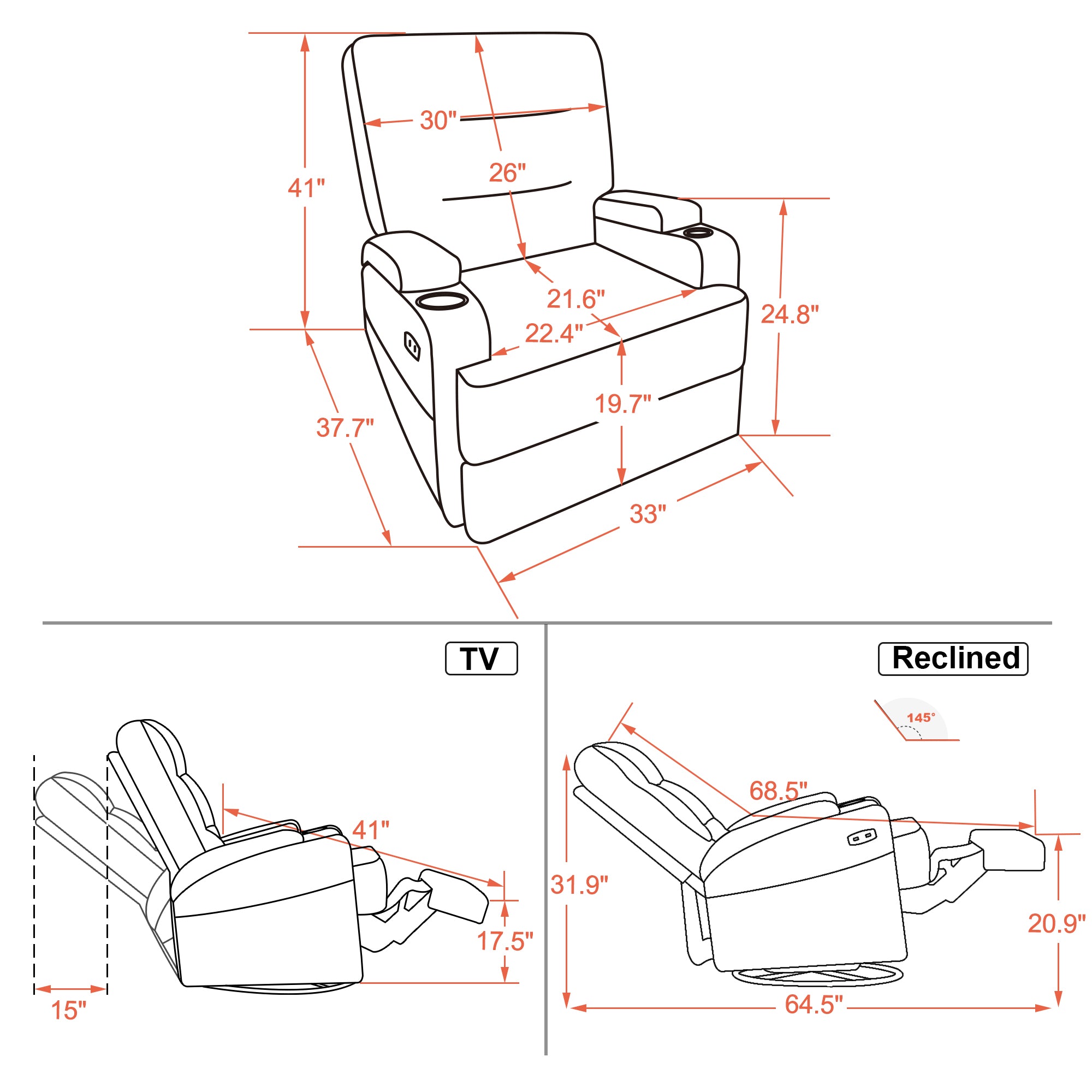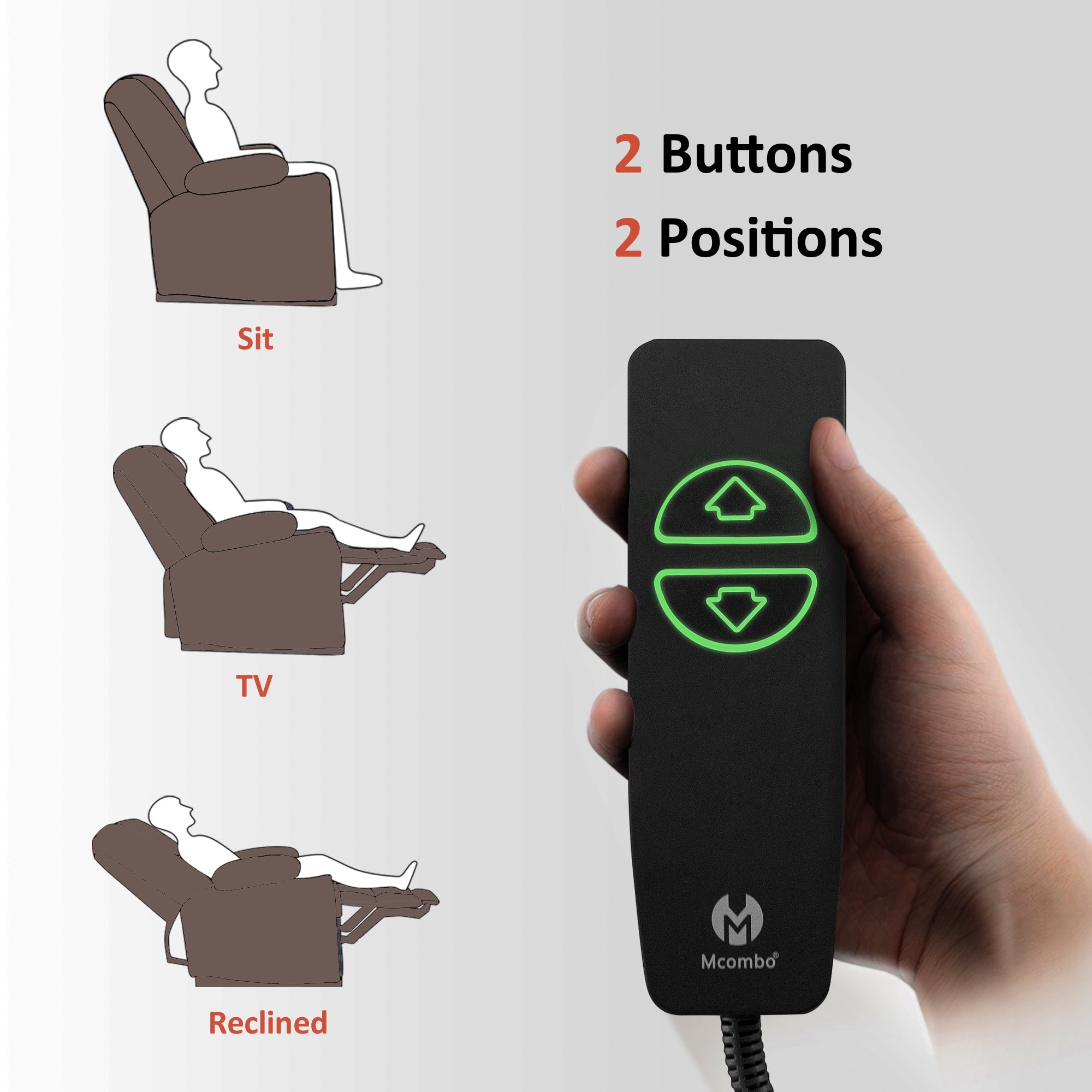 - Adjust recliner backrest and footrest to find relaxation position