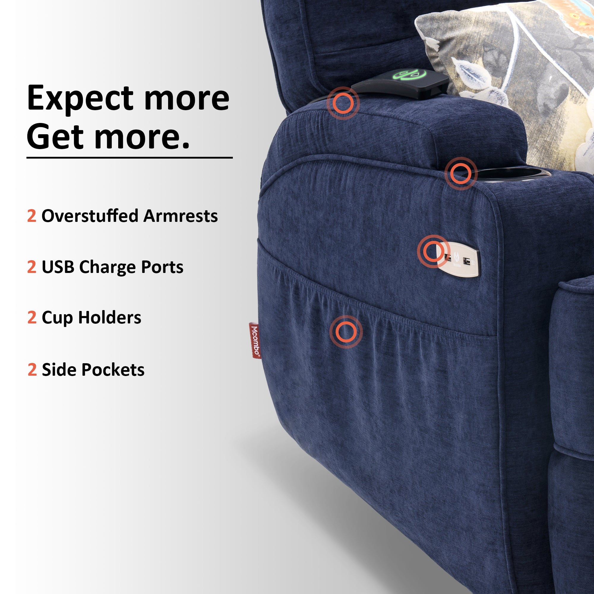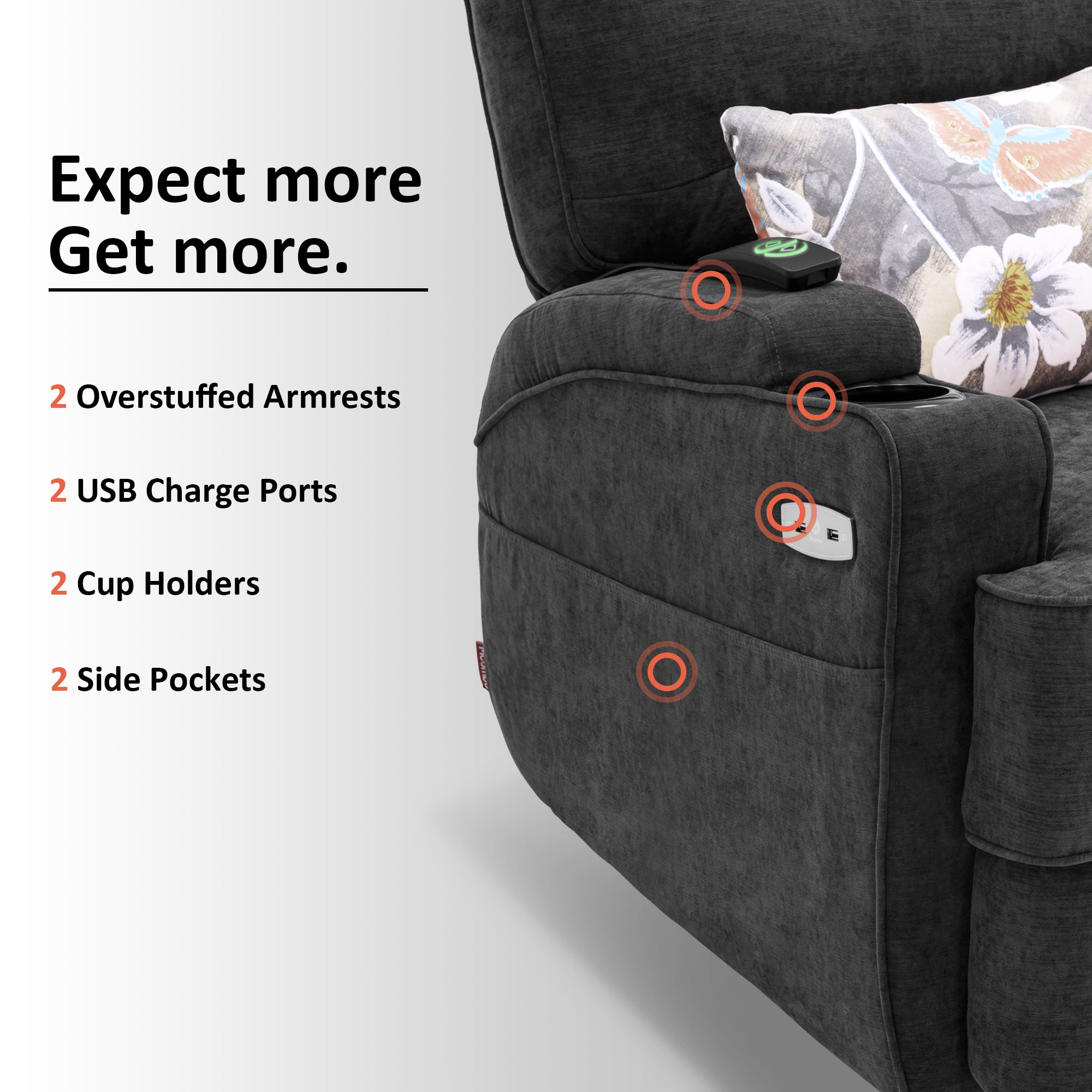 - Massage with 6 vibration points and lumbar heating