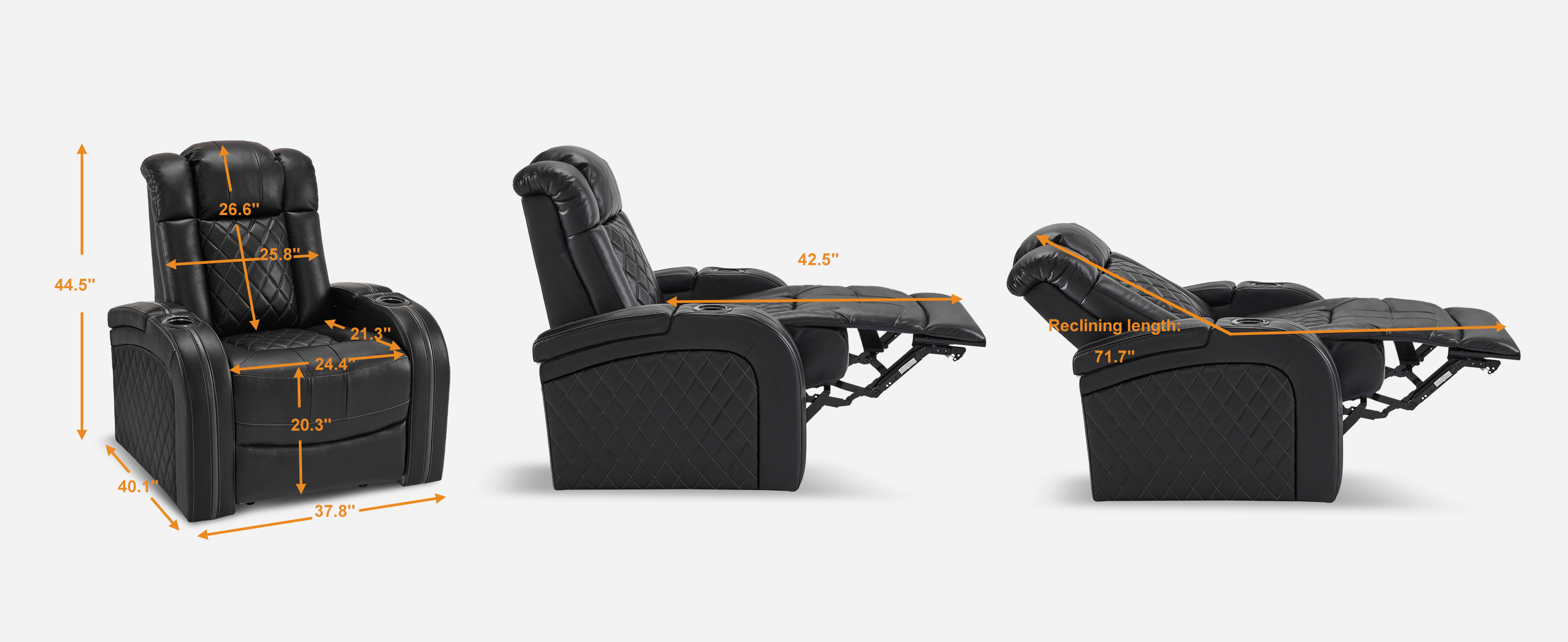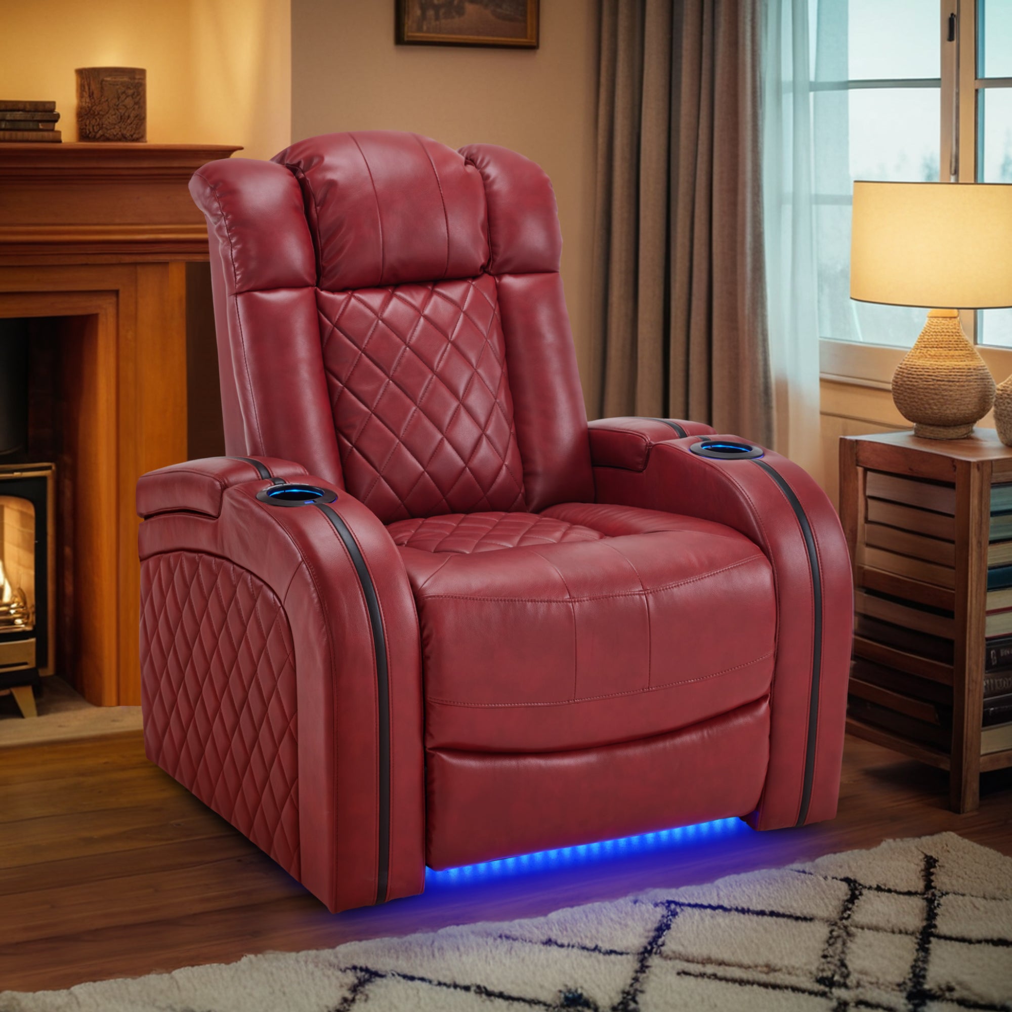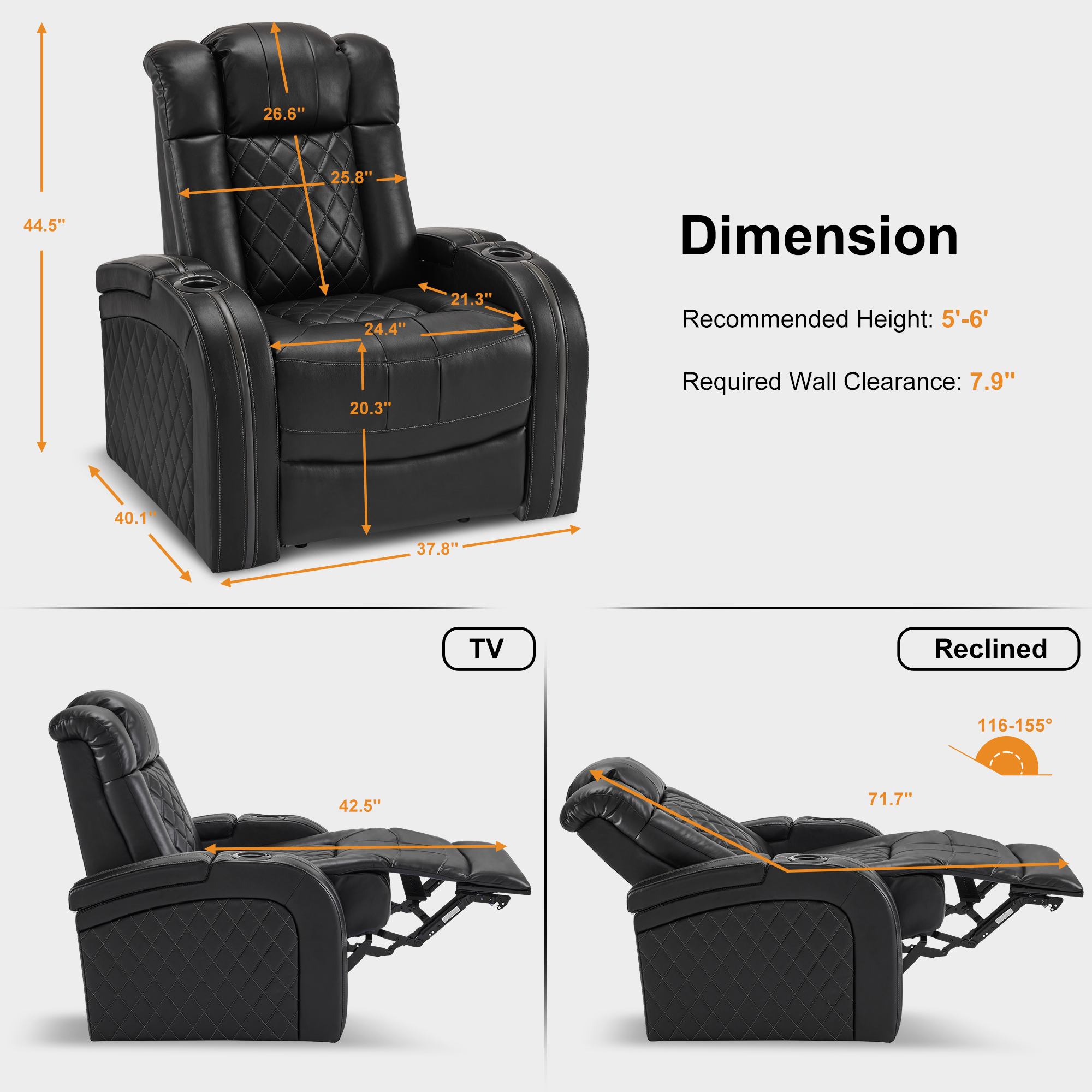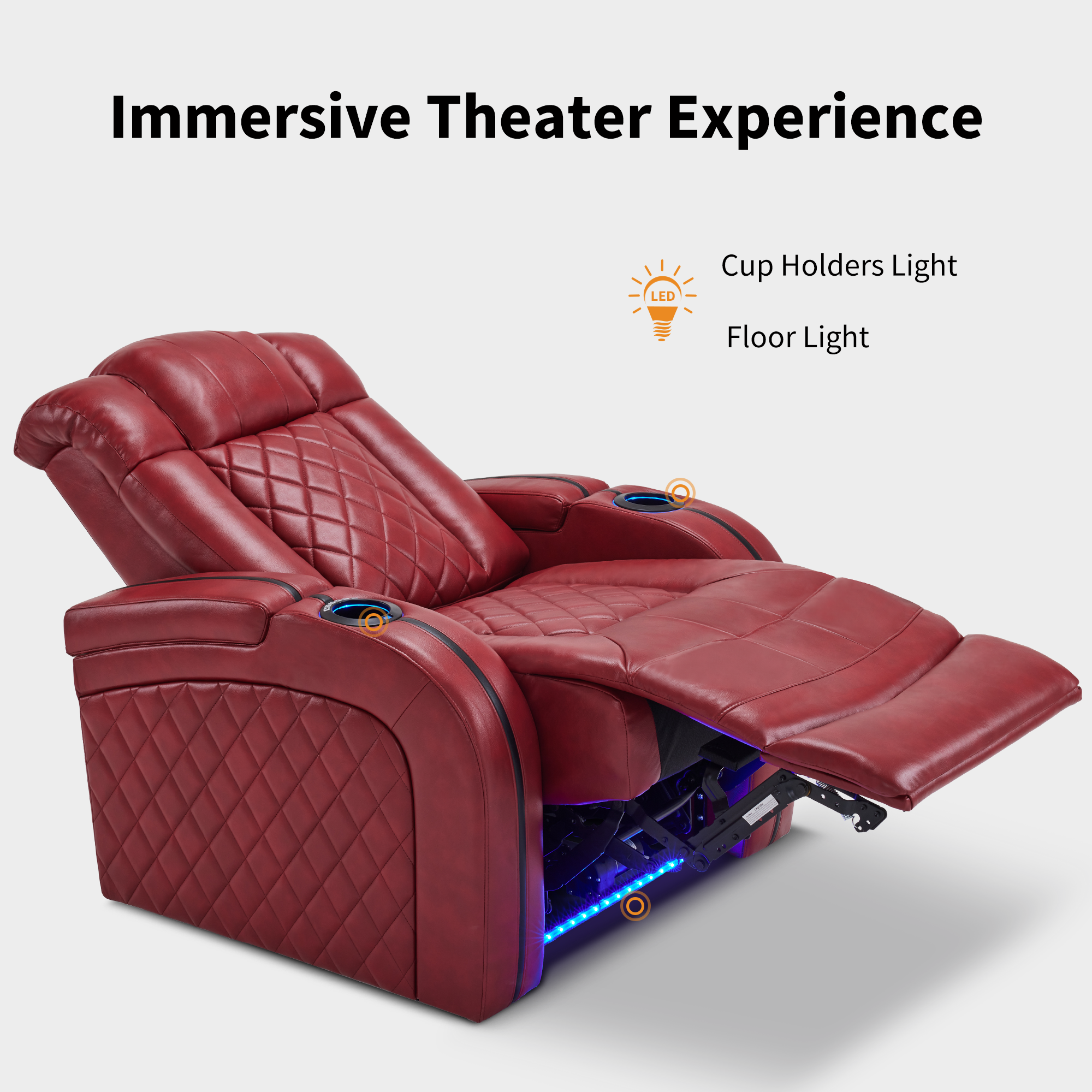 Power Recliner Chair, Home Theater Seating, Faux Leather HTS411