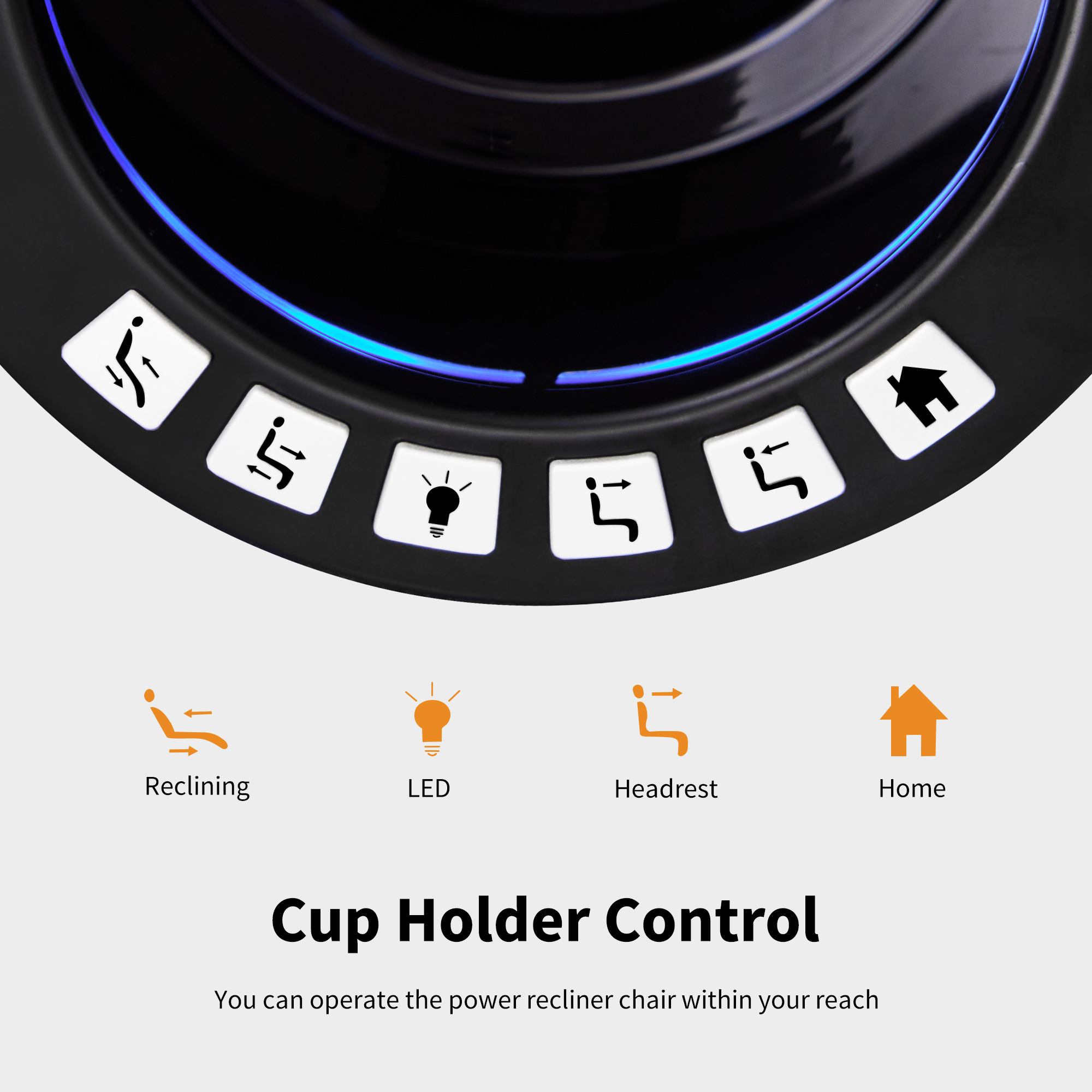 All control buttons are designed on the right cup holder. You can operate the electric recliner sofa within your reach